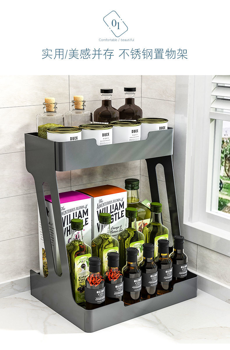 标题:双层置物架厨房调料桌面多功能调味品收纳架不锈钢调味料架子家用