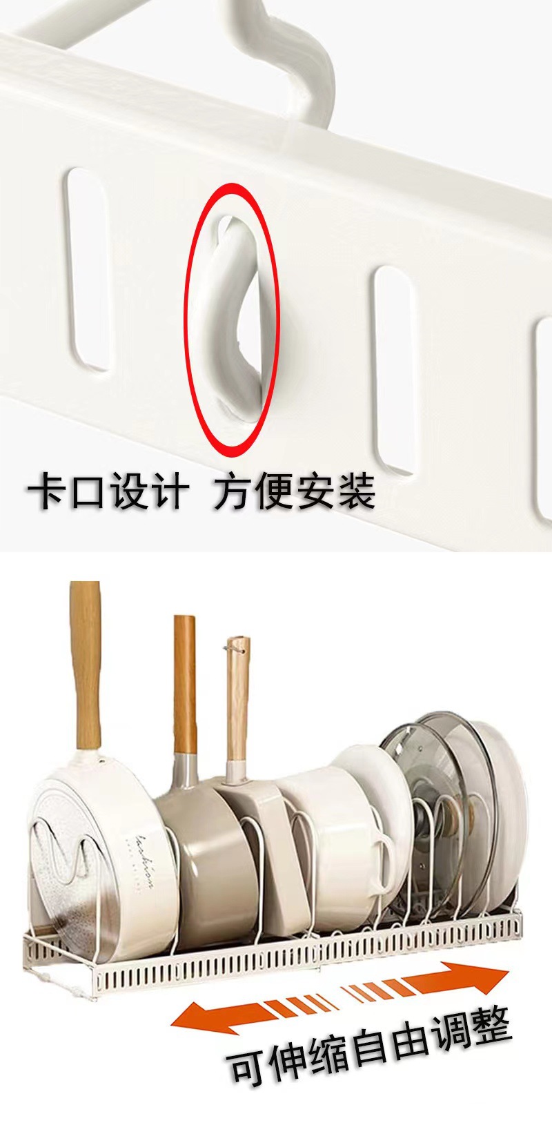 标题:烤盘锅盖伸缩置物架厨房免打孔可调节多层砧板菜碟收纳架