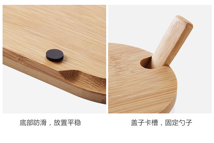 标题:盐糖调味瓶带勺带拖佐料圆形储物罐日式玻璃竹木盖调料罐组合套装