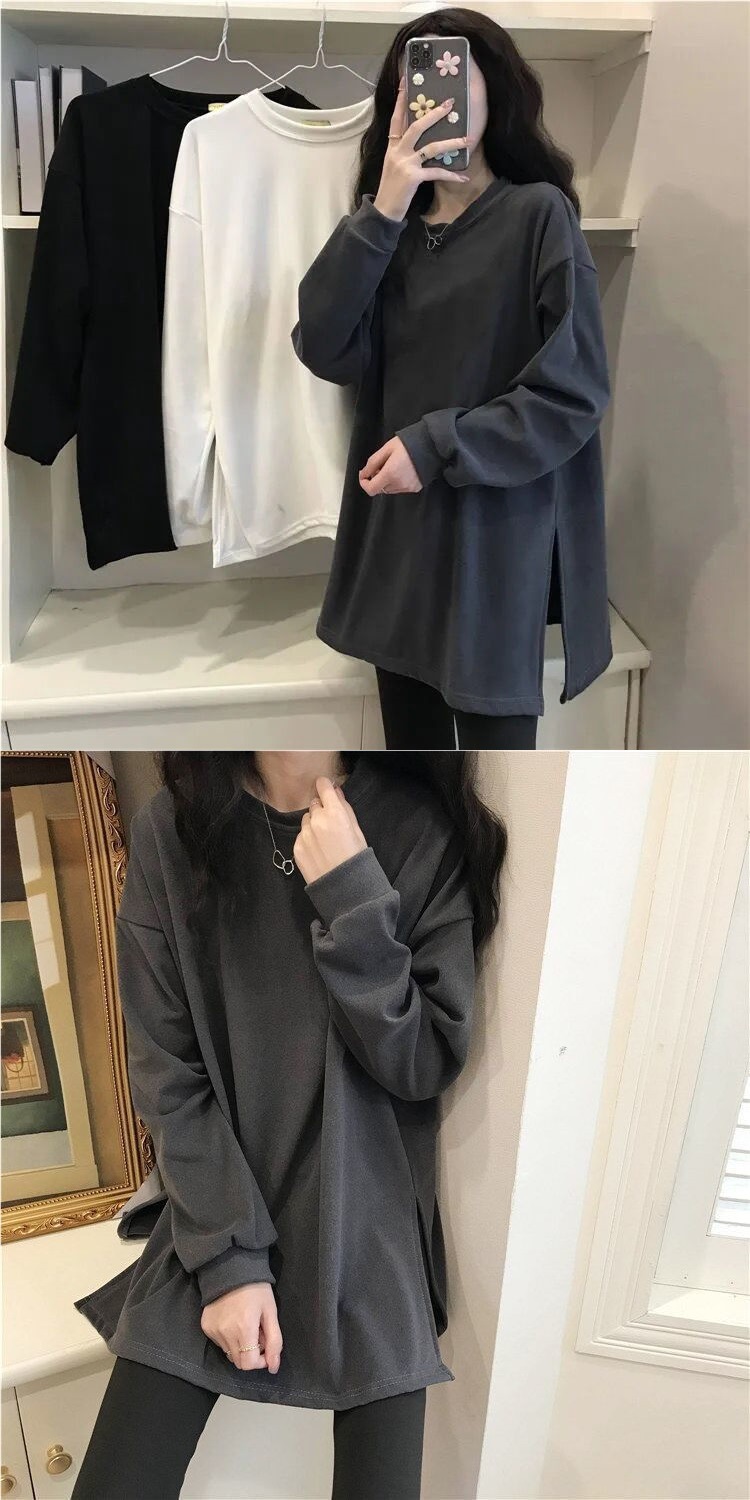 标题:ロンT 2025 秋冬新作インナーウォームボトムシャツスプリットトップス
