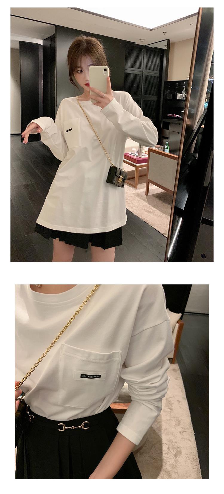 标题:ロンT 長袖Tシャツ女性2025新しいオープンミドルレングスボトムシャツトップス