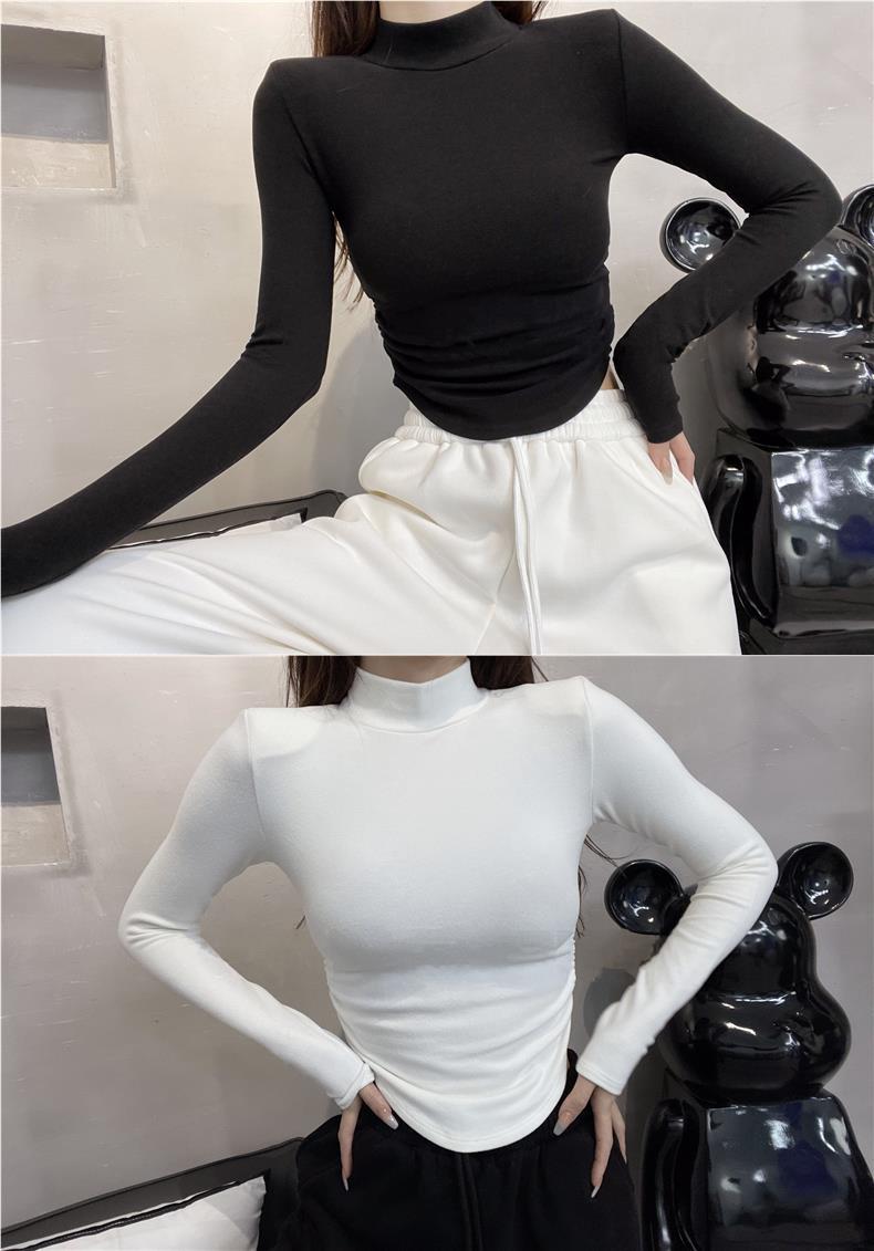 标题:ロンT 2025 秋冬モデルハーフハイネック長袖Tシャツの下にドイツ製ベルベットのダブルサイドボトムシャツ