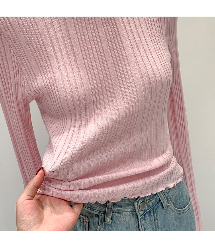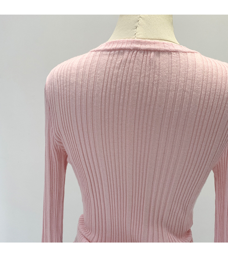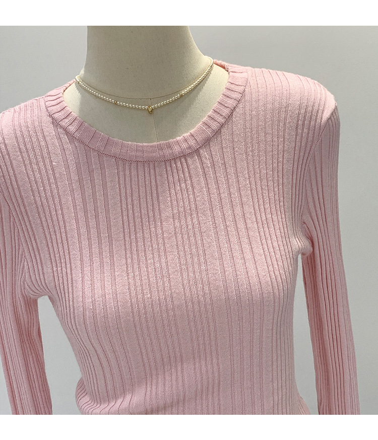 标题:ロンT 長袖ピンクインナーボトムニットセーター女性秋冬2025新作トップス