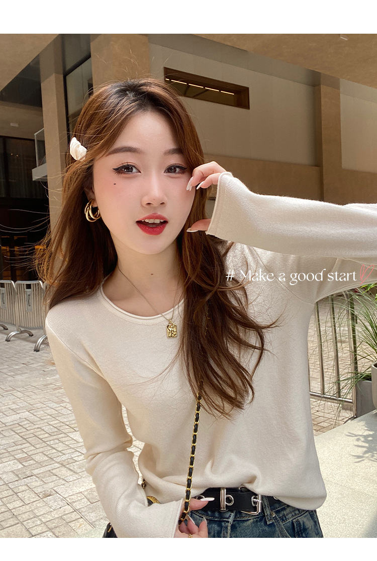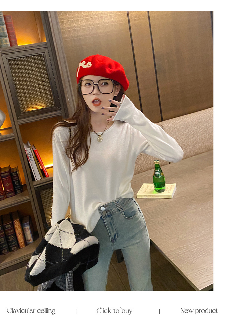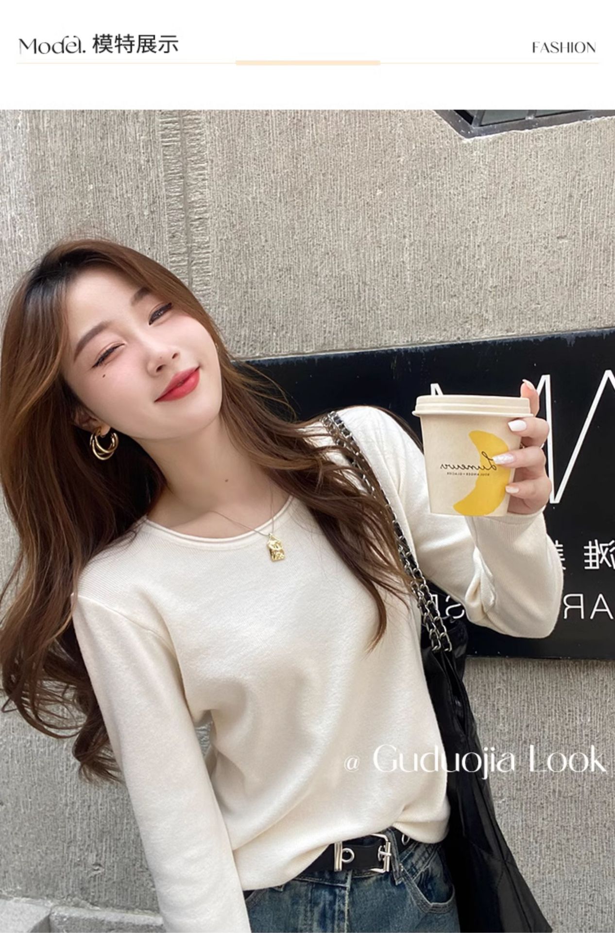 标题:ロンT 白ボトムシャツ レディース インナー 2025 新作 長袖 ラウンドネック トップス
