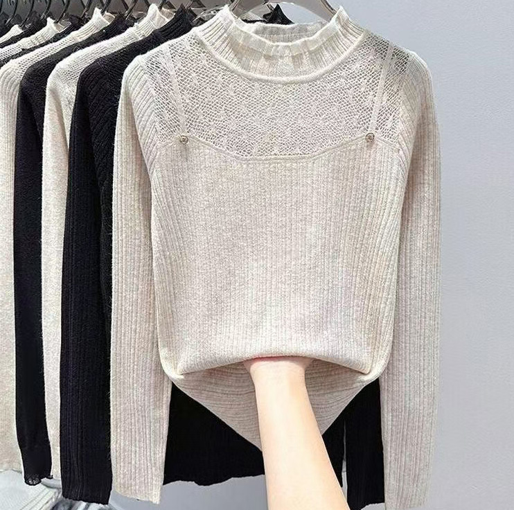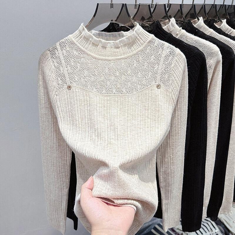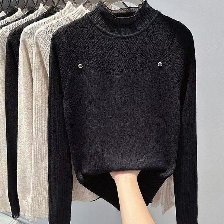 标题:インナー 2024秋冬新作レディースボトムスシャツハーフハイネックレースインナーニットレディース