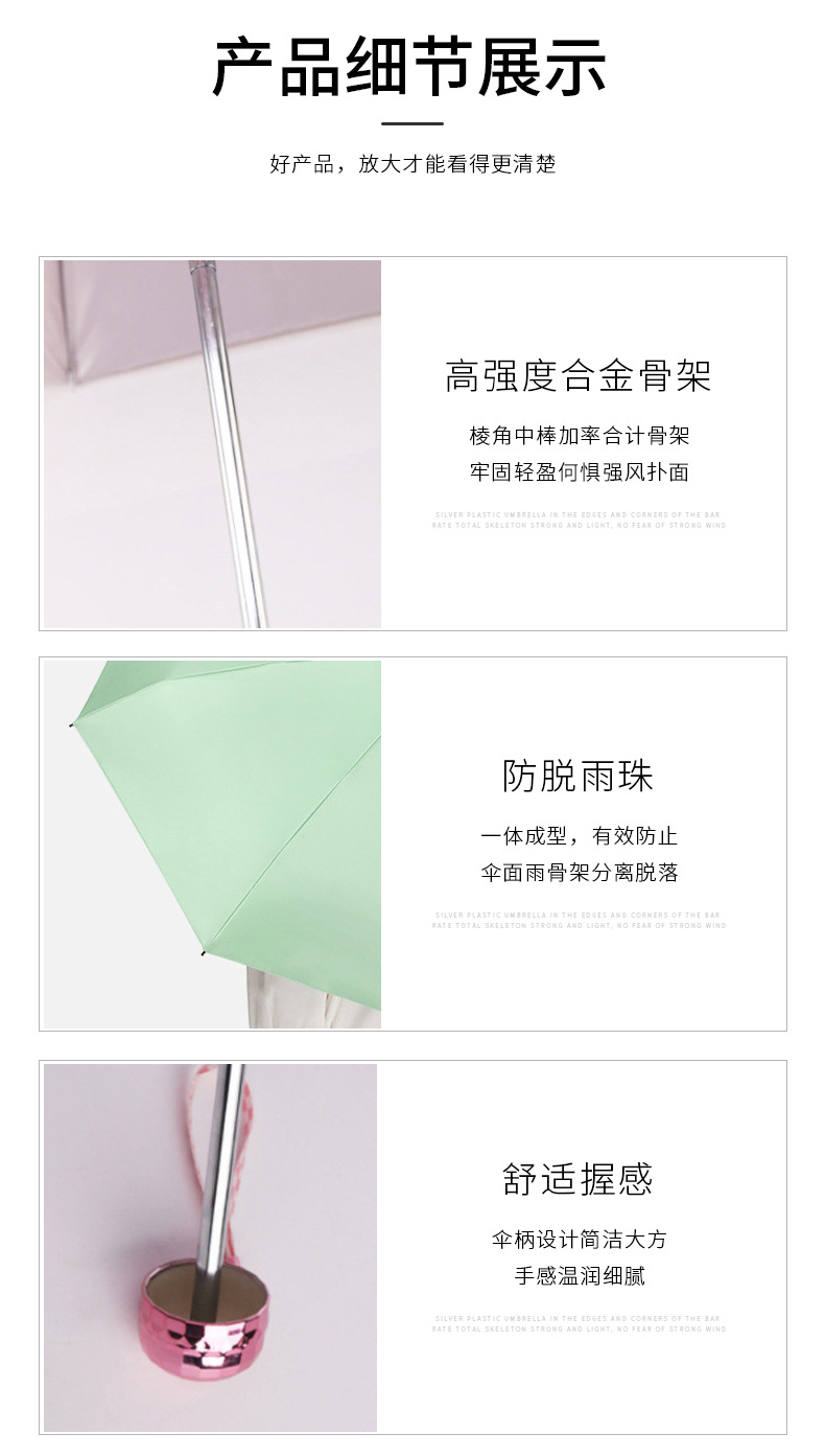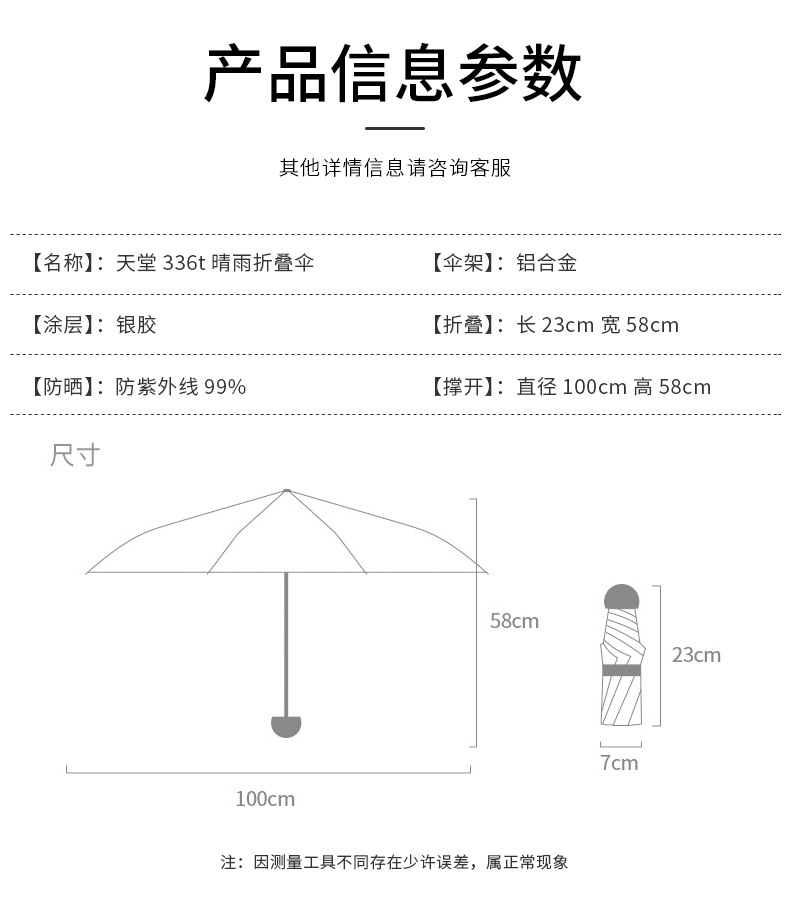 标题:正品天堂伞336T银胶晴雨两用折叠伞广告雨伞批发纯色雨伞印刷LOGO