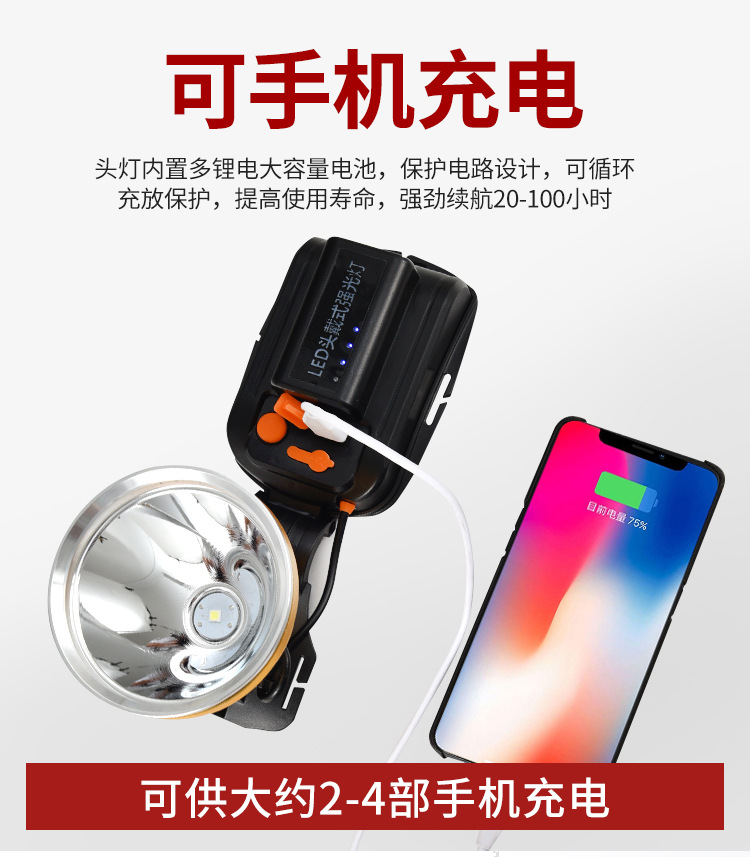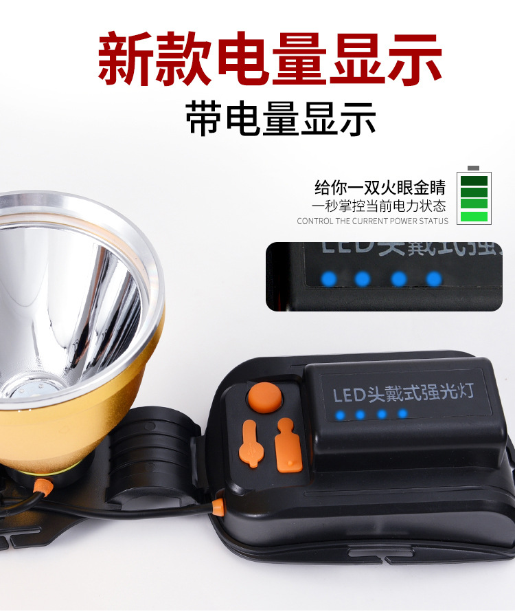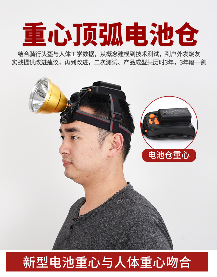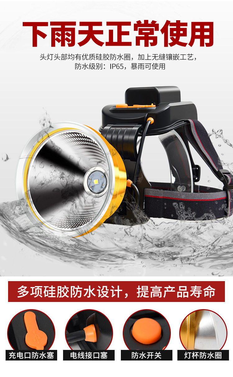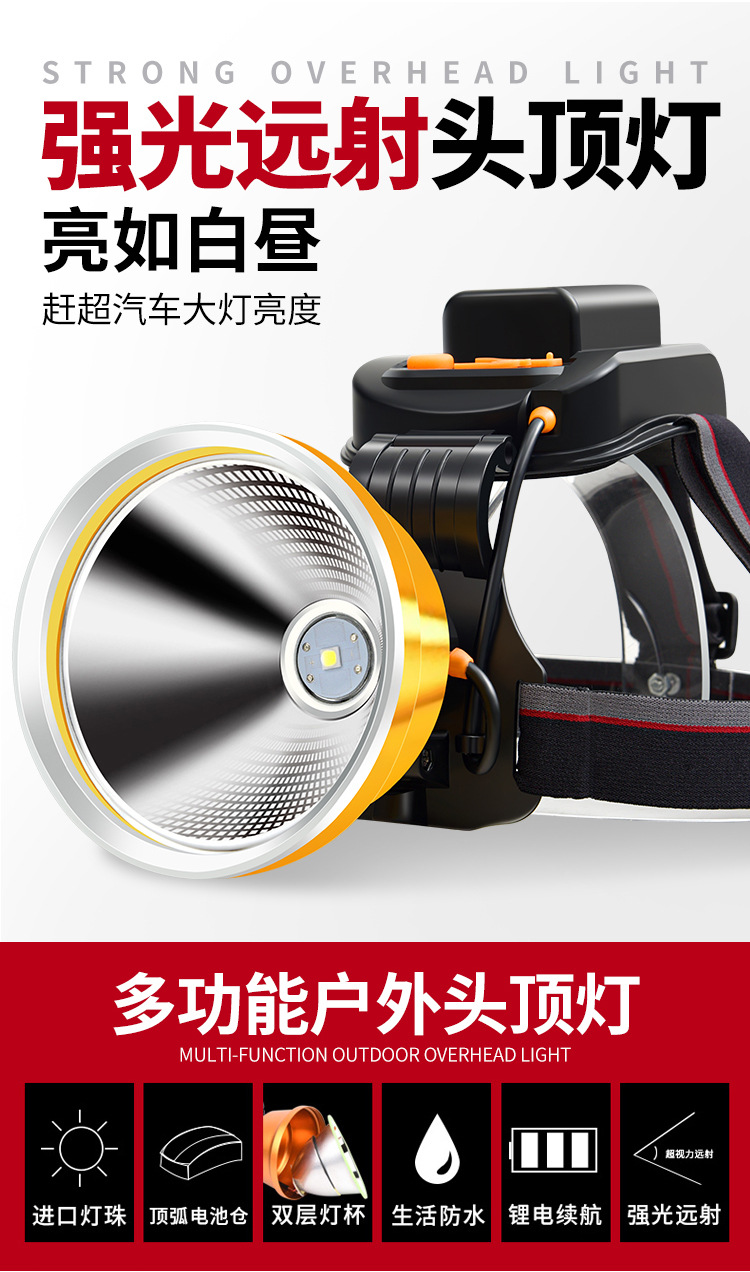 标题:猎途六锂电头灯强光可充电LED照明头戴式手电筒超亮远射矿灯新款