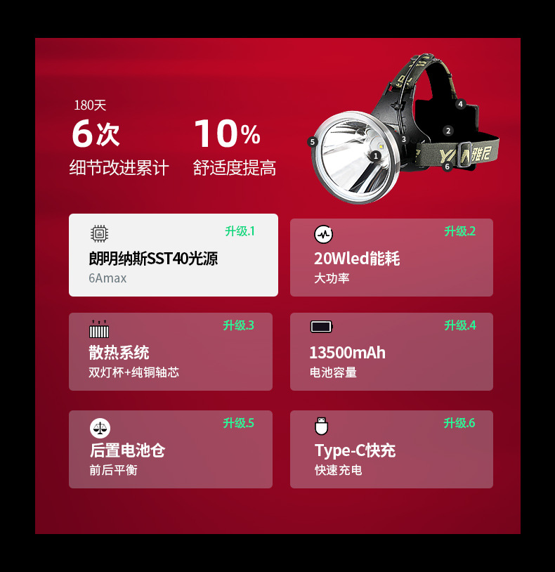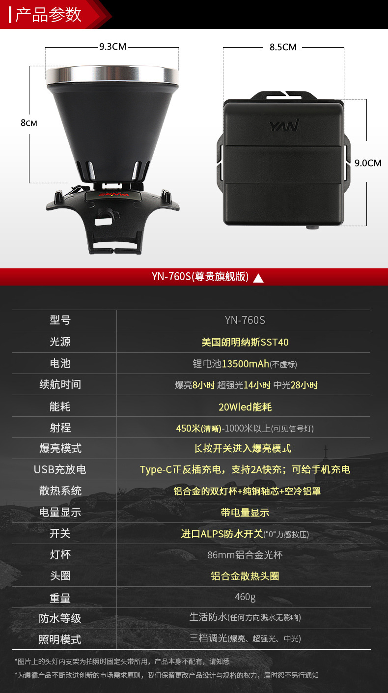 标题:雅尼760S头灯强光充电式超亮远射头戴式手电筒超长续航led矿灯