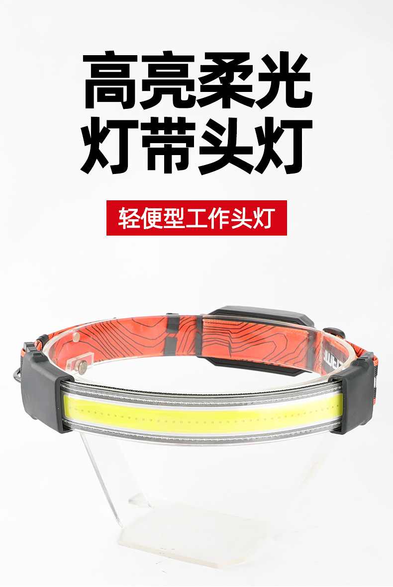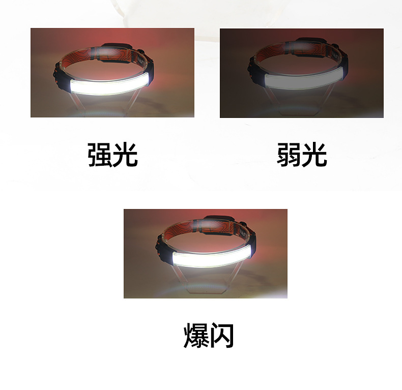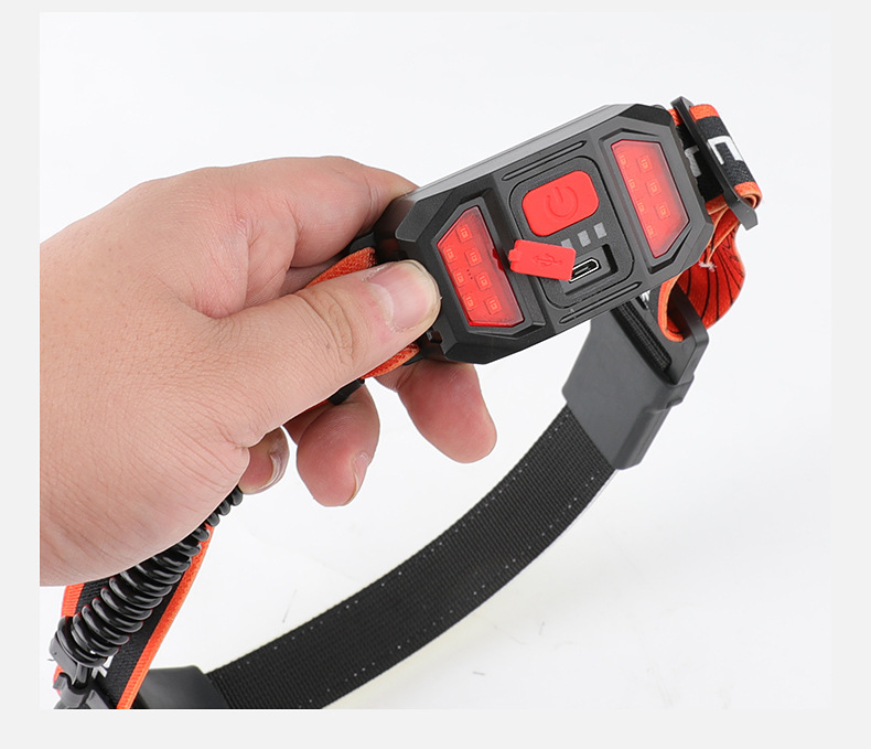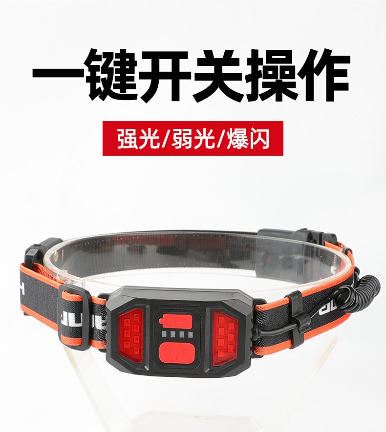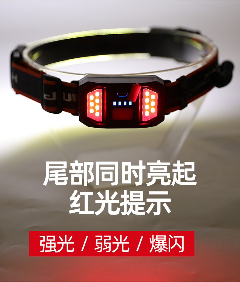 标题:跨境新款COB头灯USB充电户外骑行探照灯尾部红光警示电显跑步矿灯