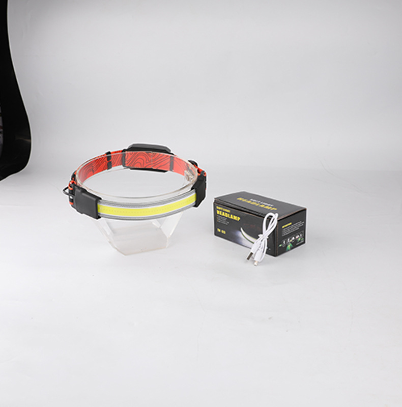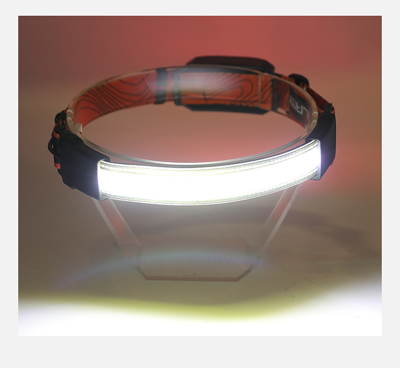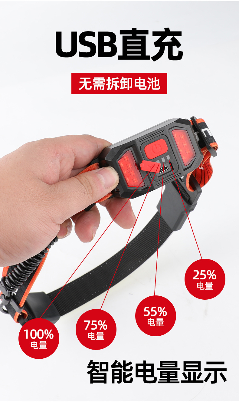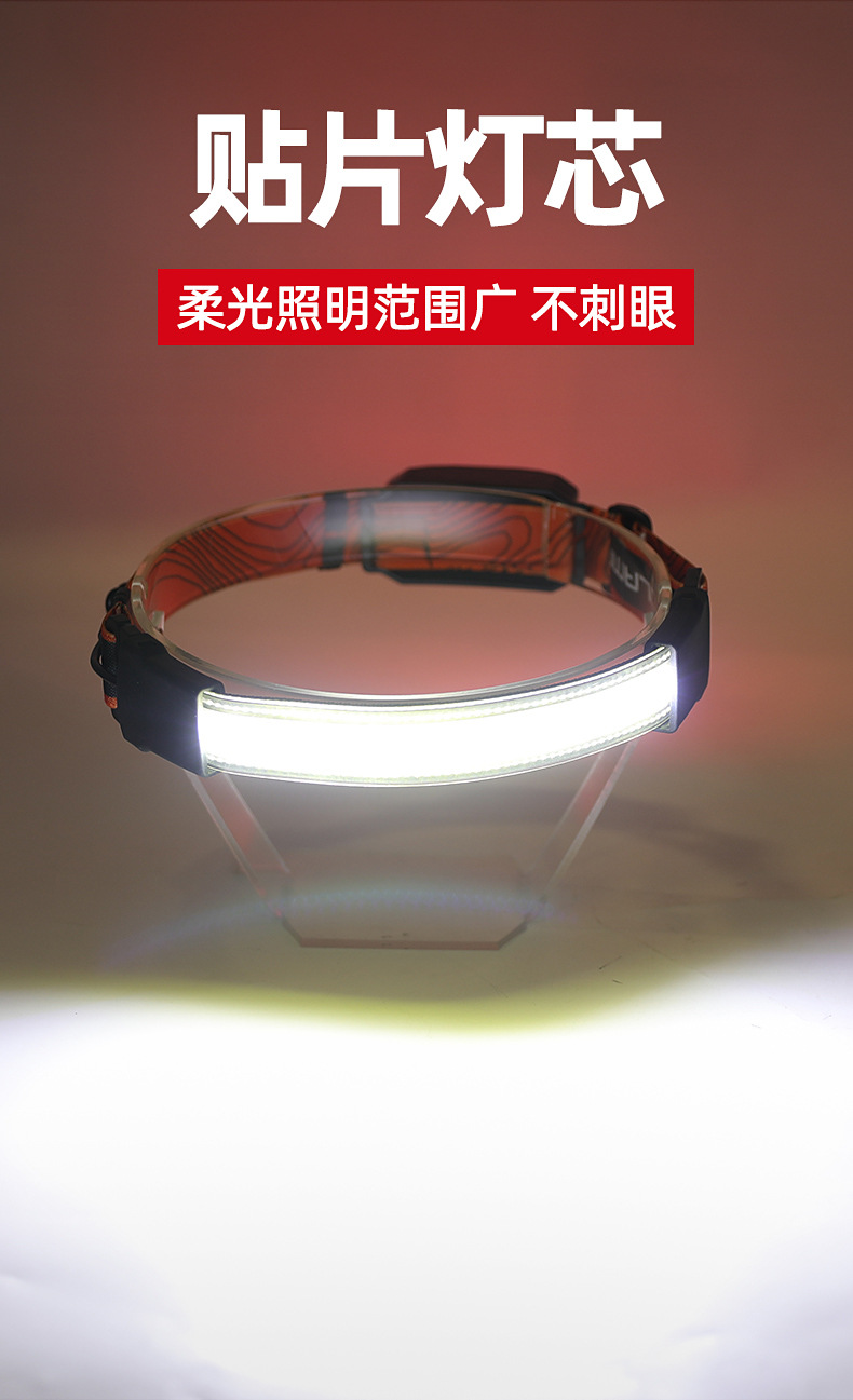 标题:跨境新款COB头灯USB充电户外骑行探照灯尾部红光警示电显跑步矿灯