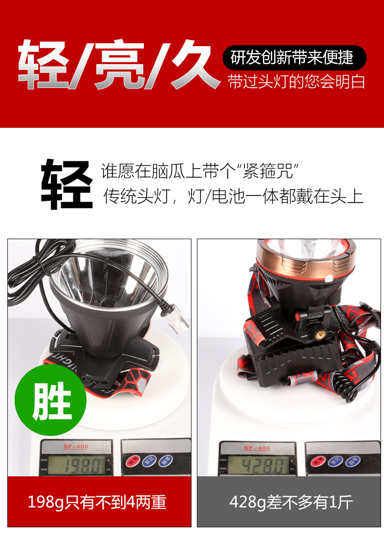 标题:锐豹头灯强光充电超亮头戴式户外远射LED灯超长续航夜钓矿灯