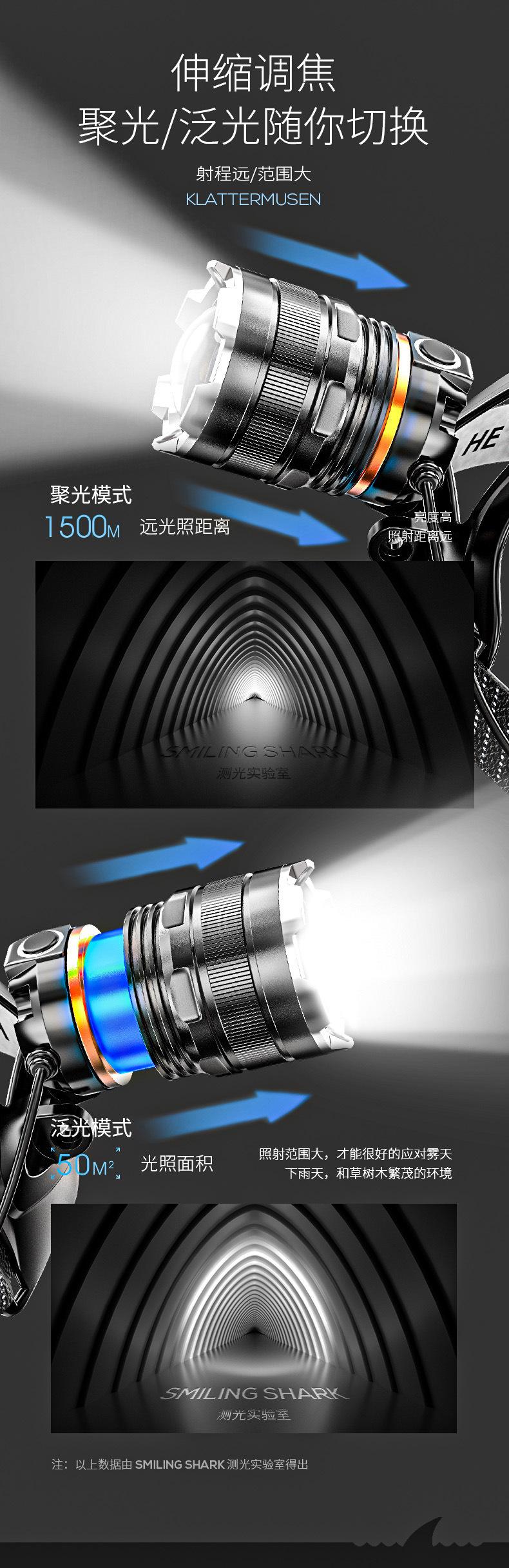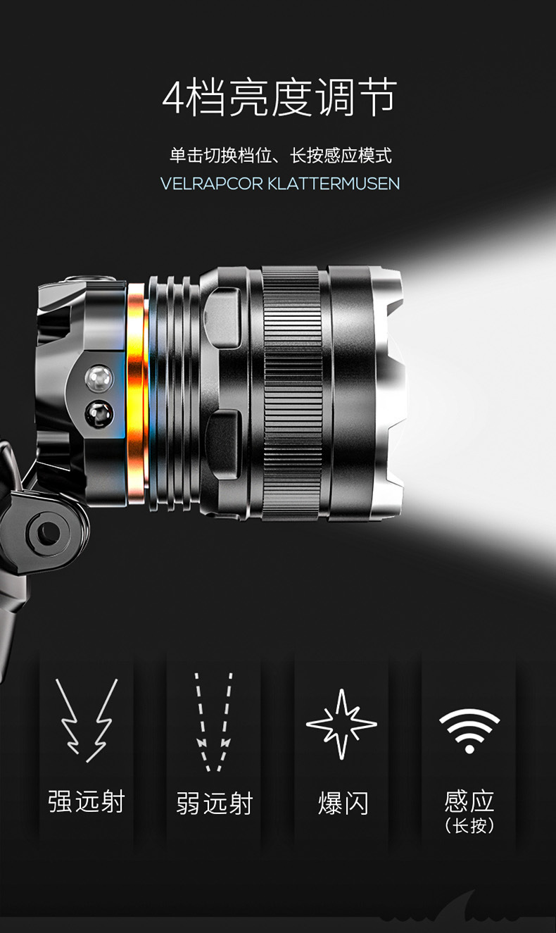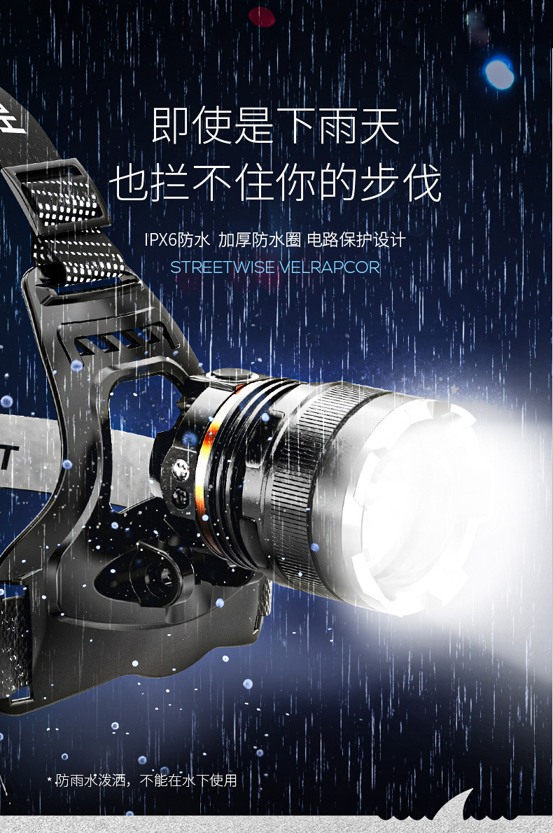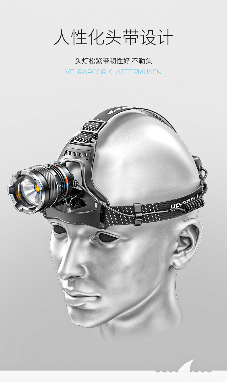 标题:P50户外头灯 强光充电头戴式手电筒跨境专供夜钓持久续航户外照明