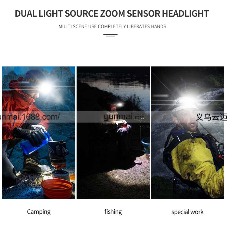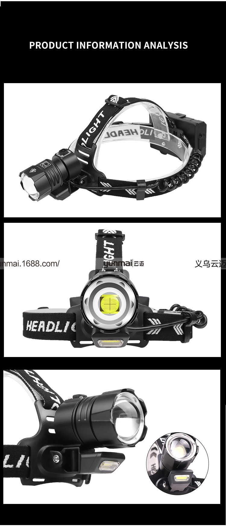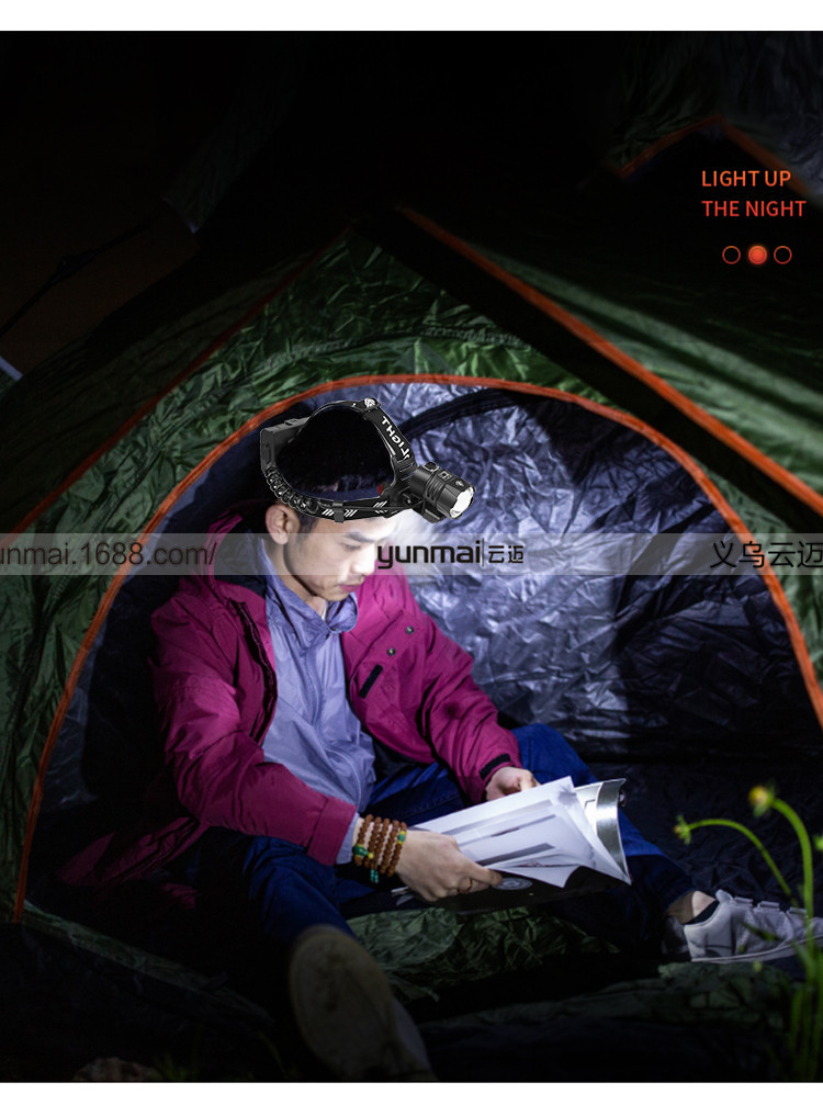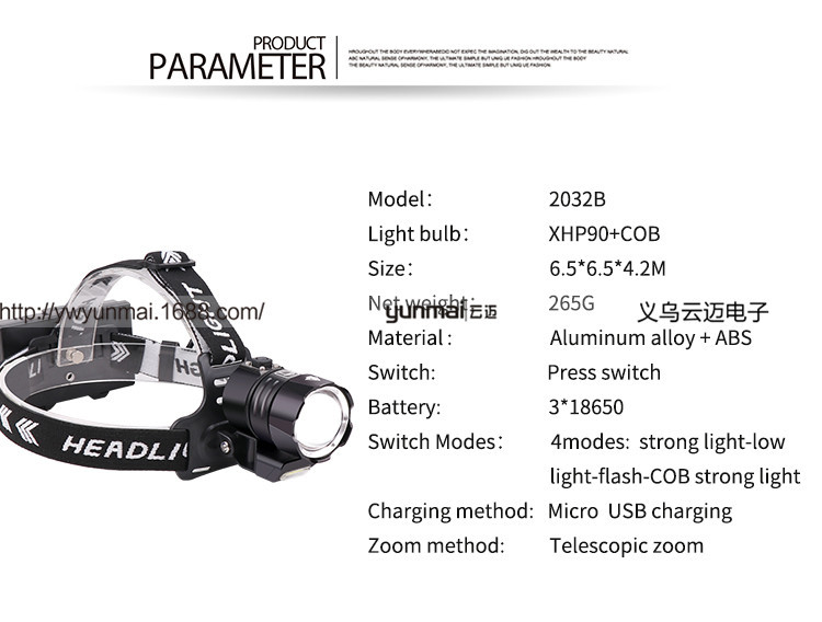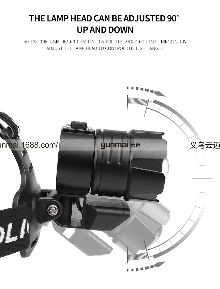 标题:跨境新款XHP90强光头灯 XHP90+COB斜45°户外钓鱼头灯USB强光头灯