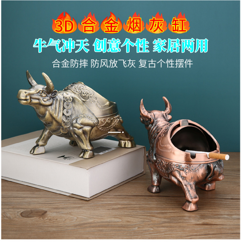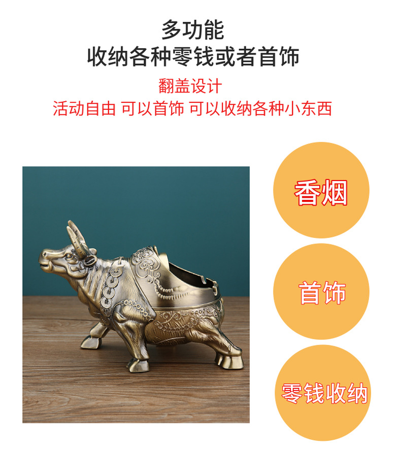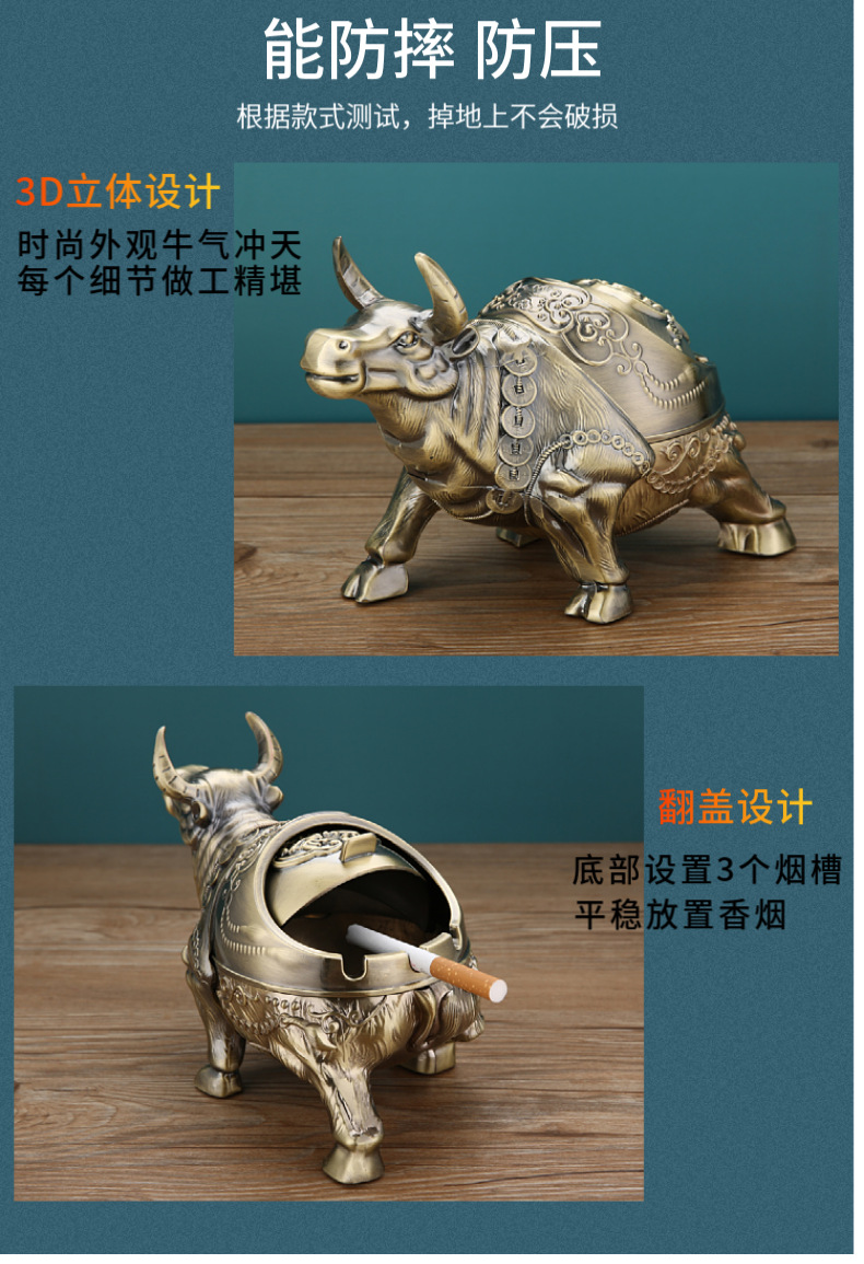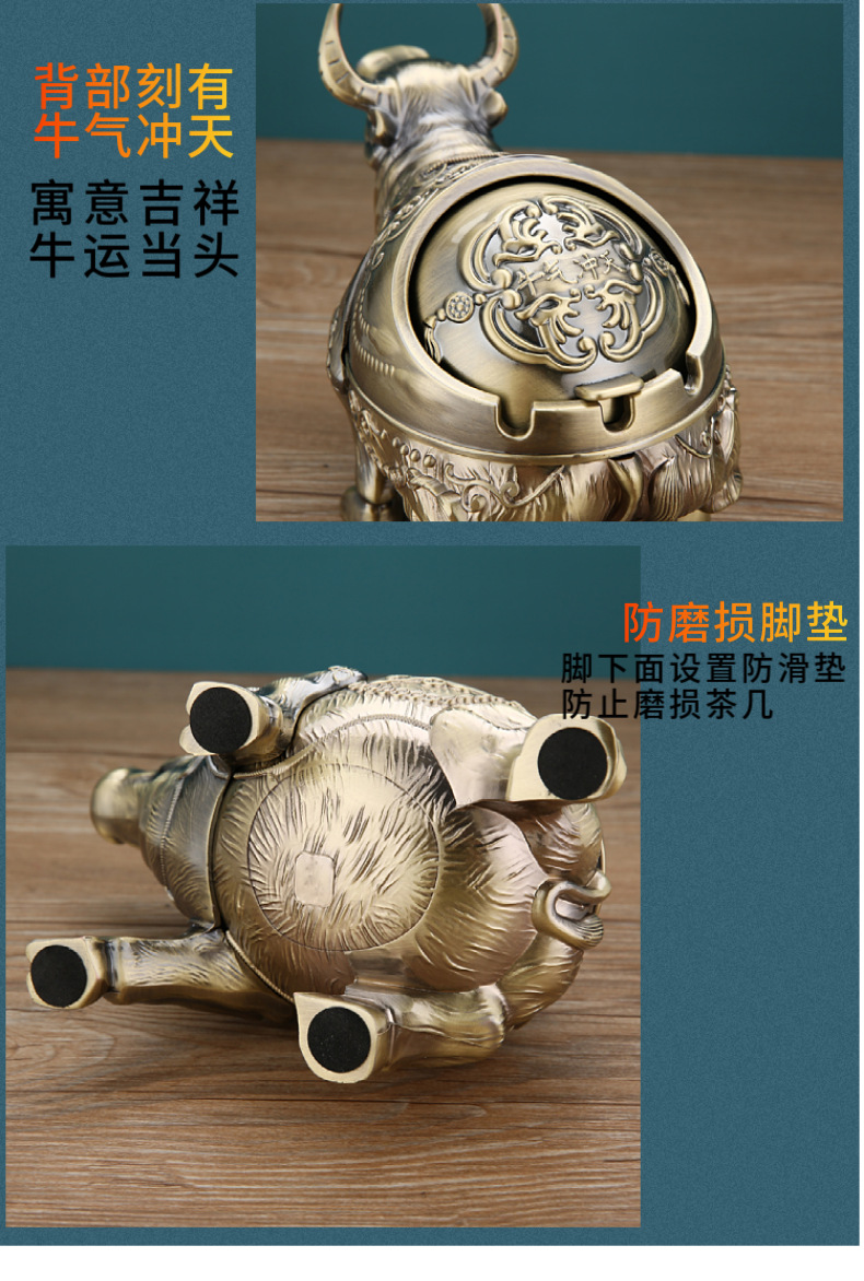 标题:创意灰缸客厅不易摔烟灰缸牛生肖复古灰缸中式大气使用会所潮流
