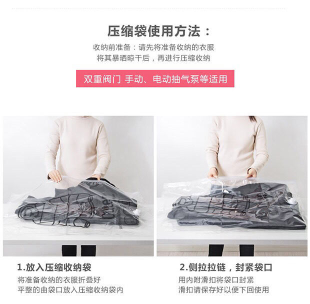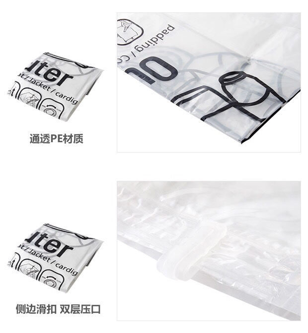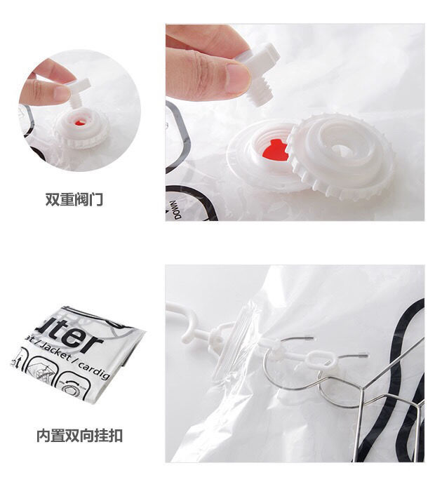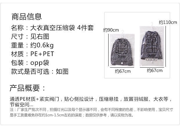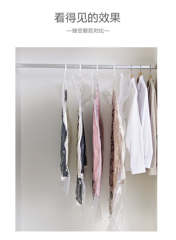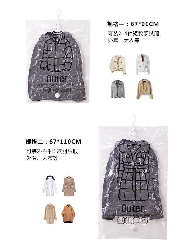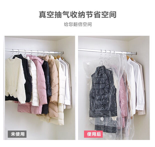 标题:真空压缩袋挂式透明羽绒服4个装抽空气大号衣服衣物整理收纳袋