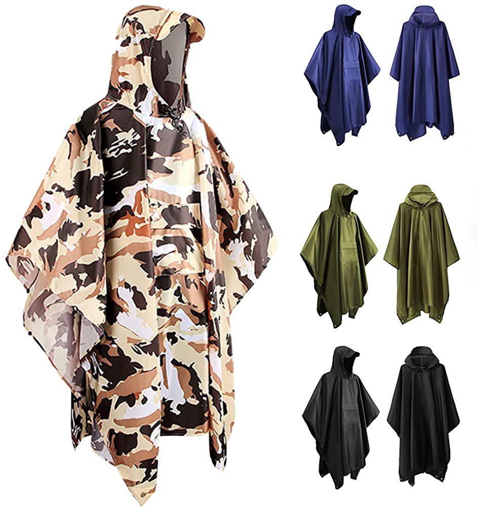 标题:跨境三合一天幕多功能雨衣 户外登山背包雨衣 地席防潮垫迷彩雨披