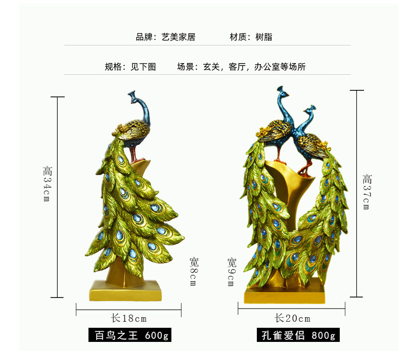 标题:欧式情侣孔雀创意家居树脂工艺品摆件现代客厅装饰品结婚礼品摆件