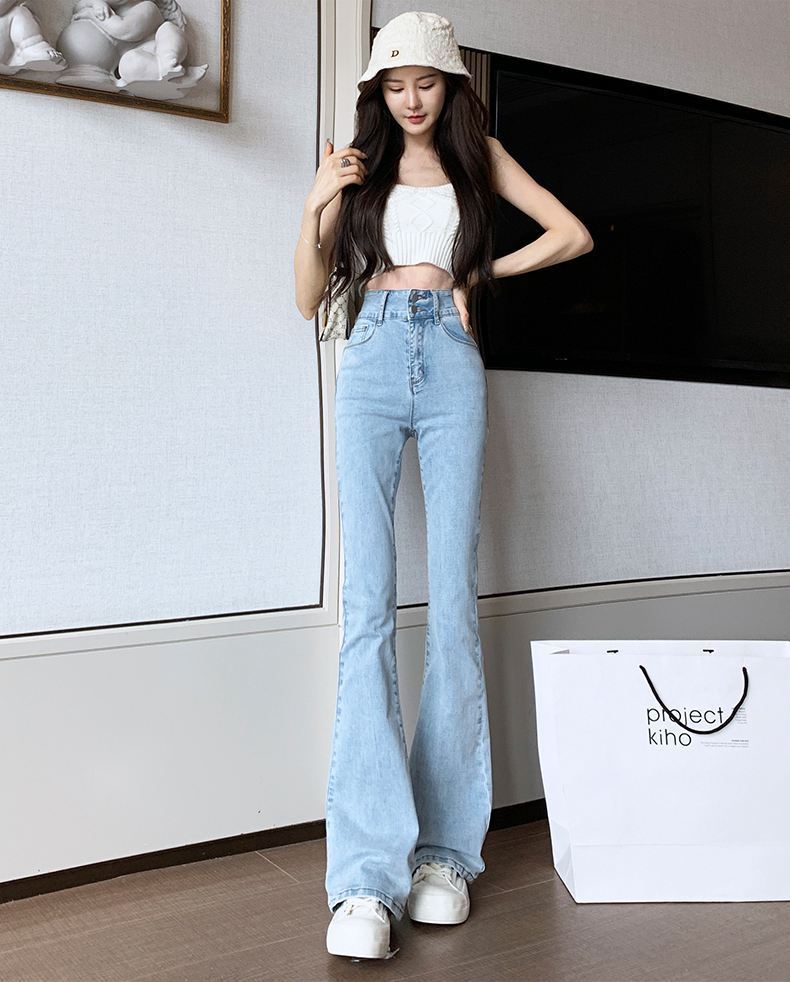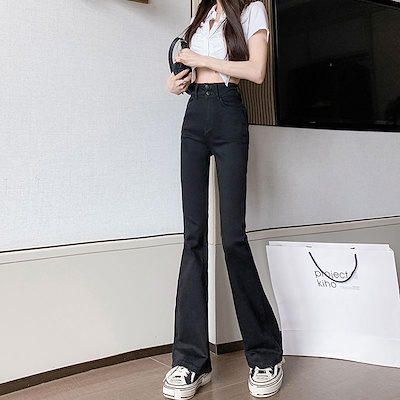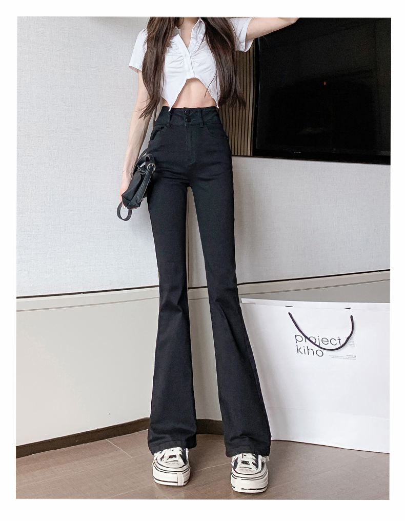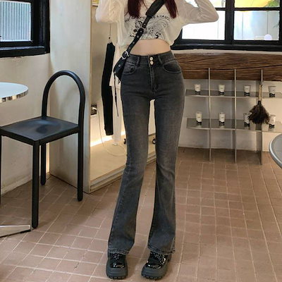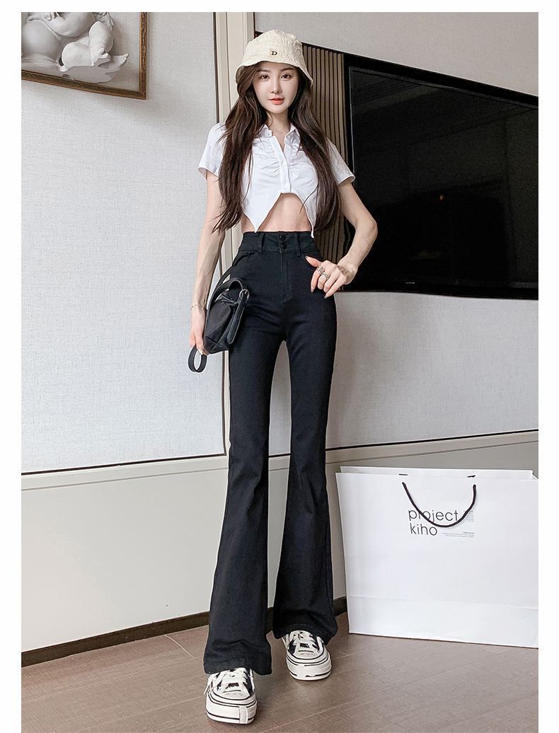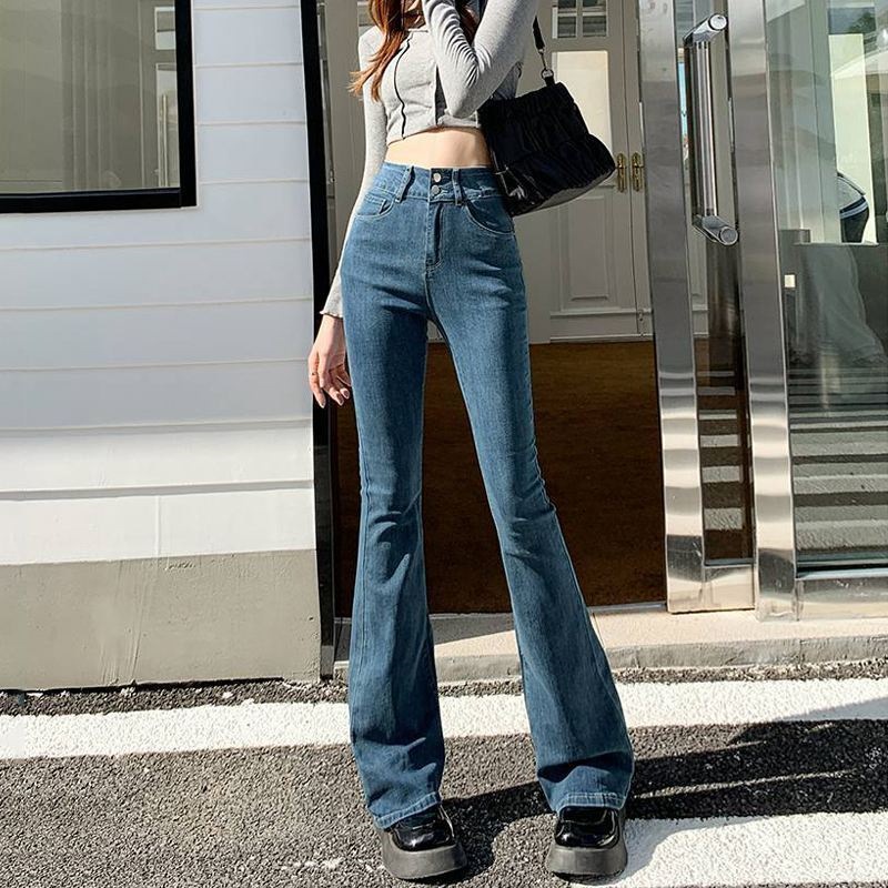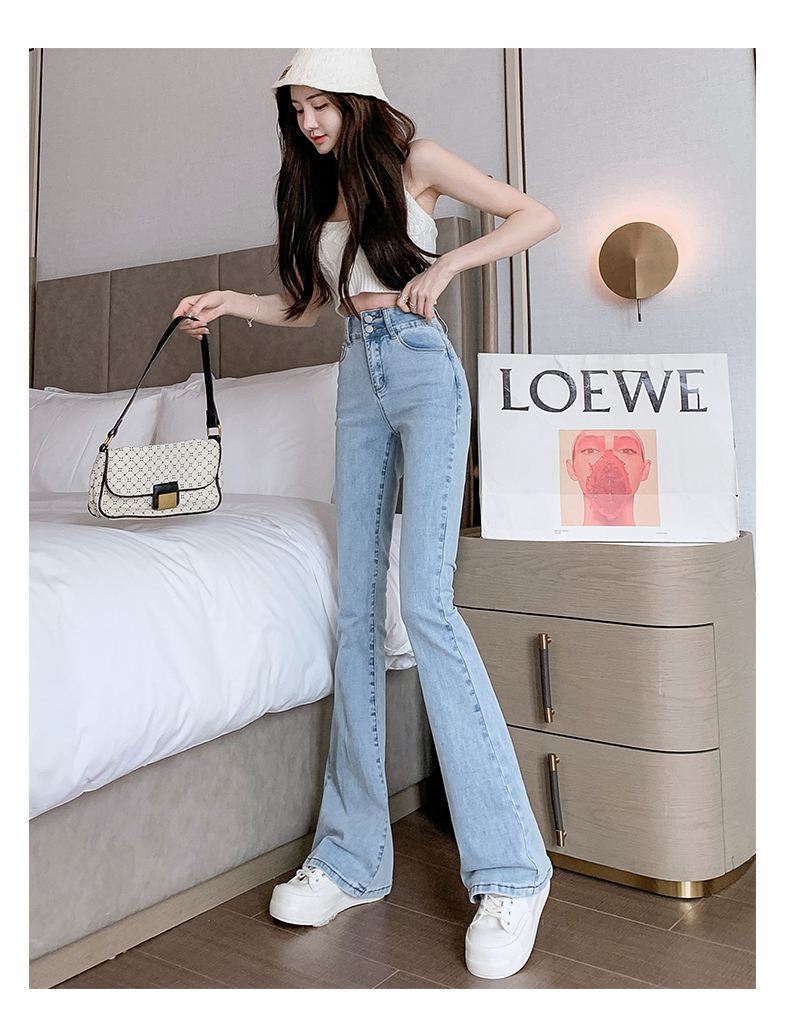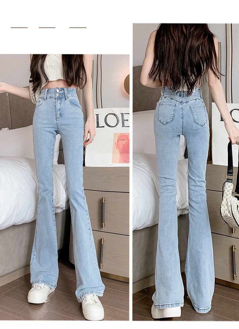 标题:脚長効果!スキニーデニムパンツ ハイウエストジーンズ女性2025春と夏の新しいスキニーフレアパンツ