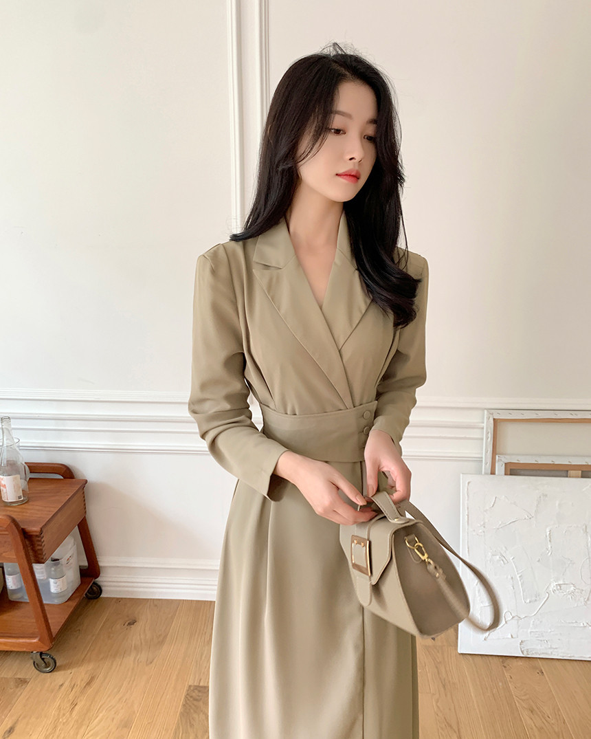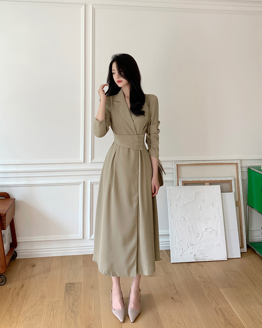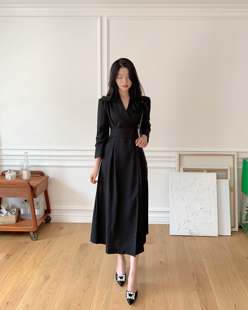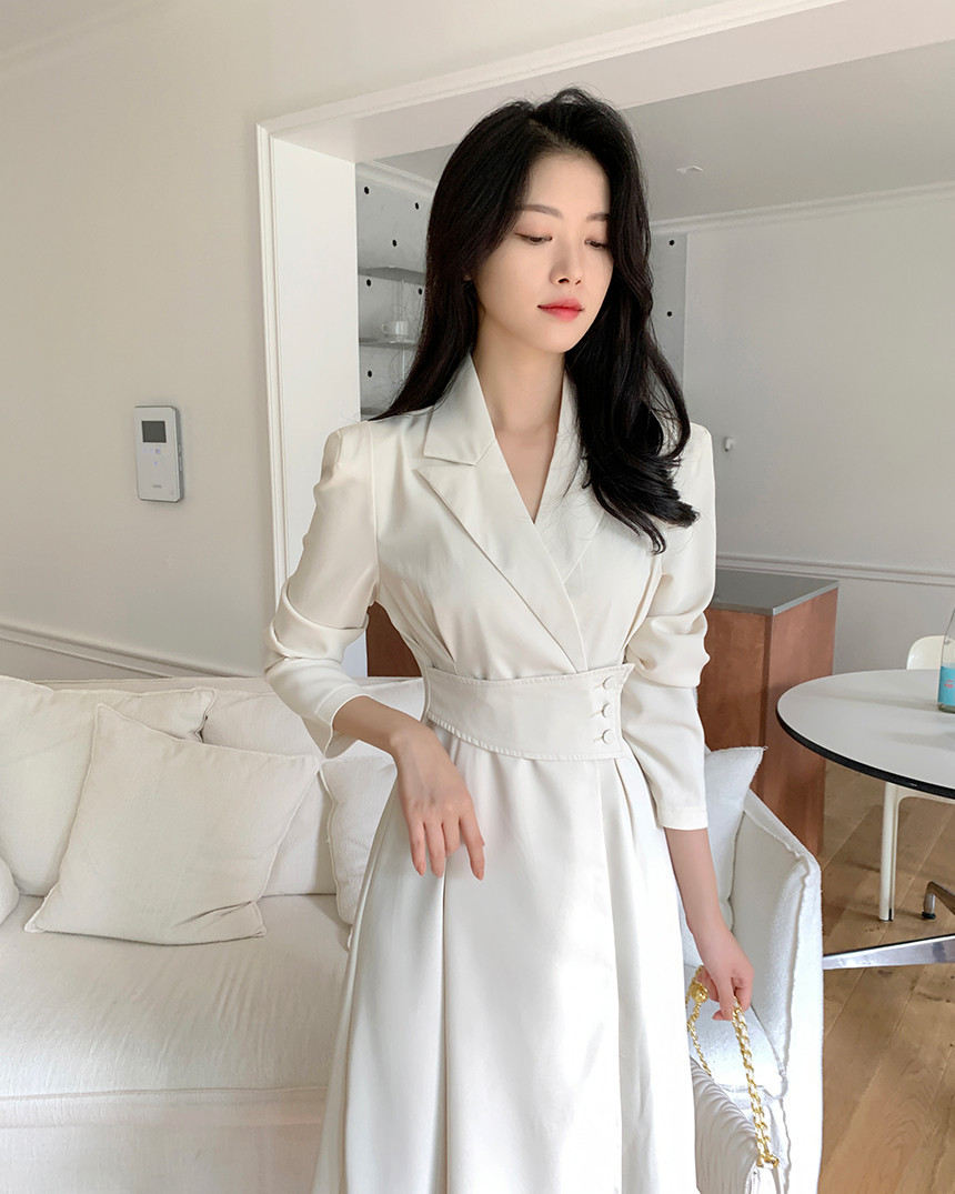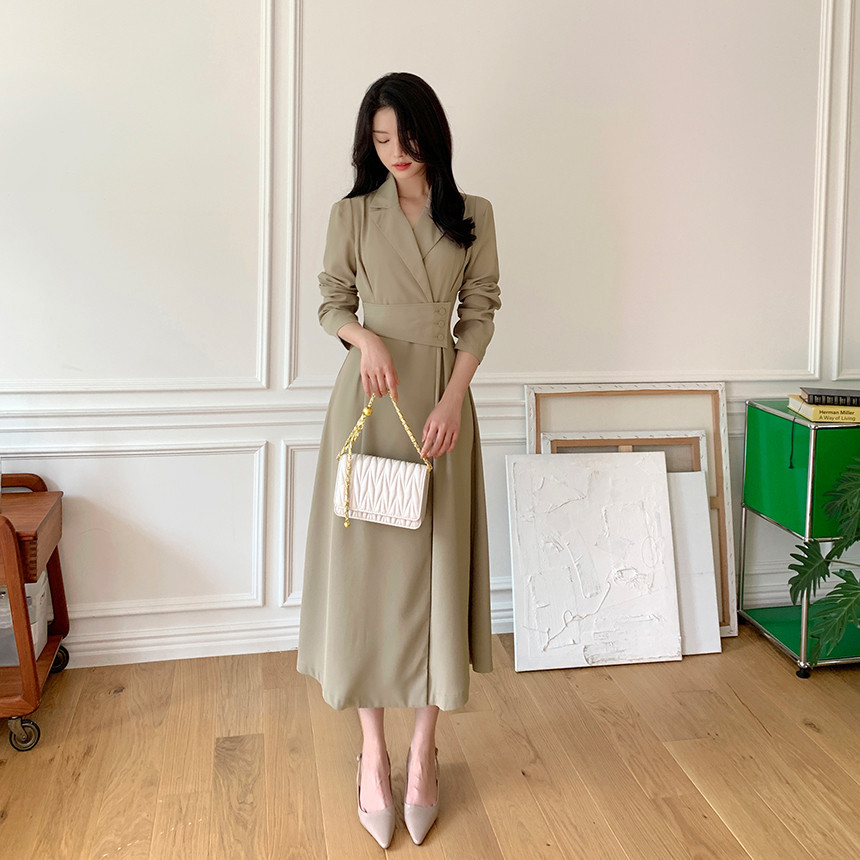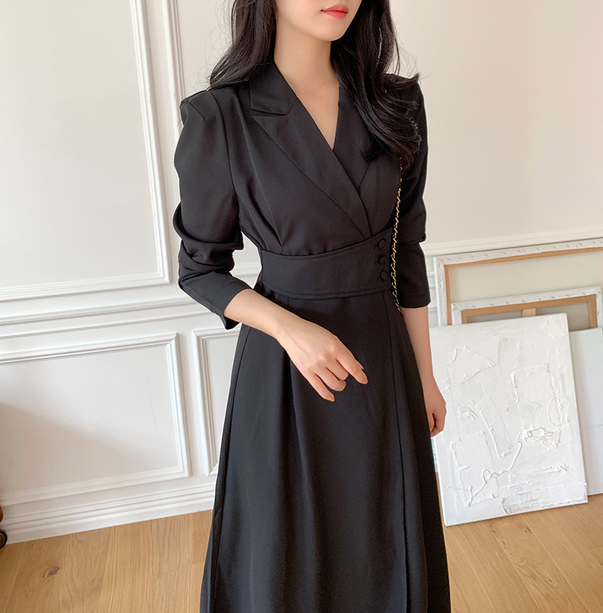 标题:韓国chic秋 ドレス ワンピース スエレガント 上品 通勤 OL レディース スーツ ワンピース 体型カバー