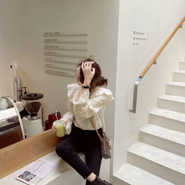 标题:今っぽシアーシャツ 2025 ファッション ブラウス 洋風フレアスリーブ レース レトロ 上品シャツ レディース OL 通勤 長袖レーストップスファッション