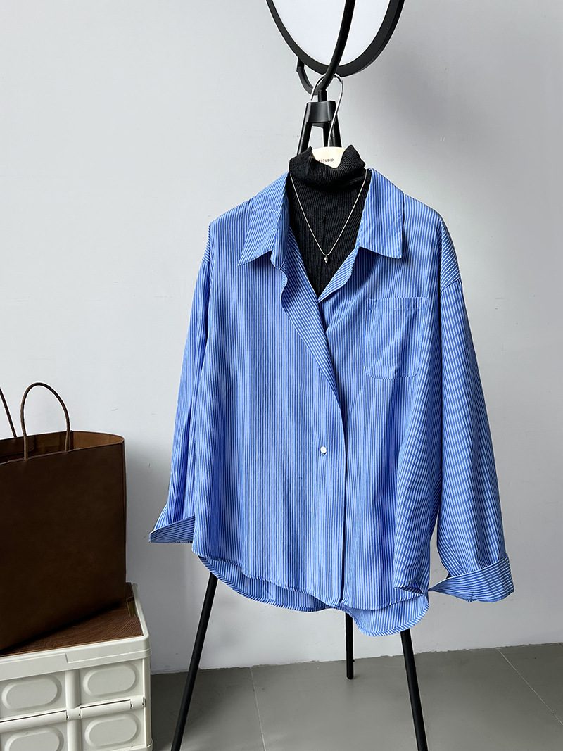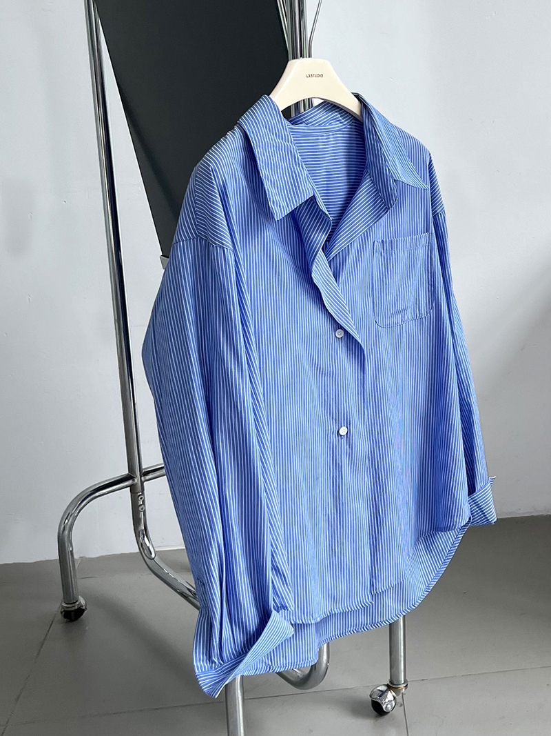标题:今っぽシアーシャツ 2025 ファッション ブラウス ストライプのシャツは春がだるい シャツ OL 通勤アウター シャツ レディーストップス