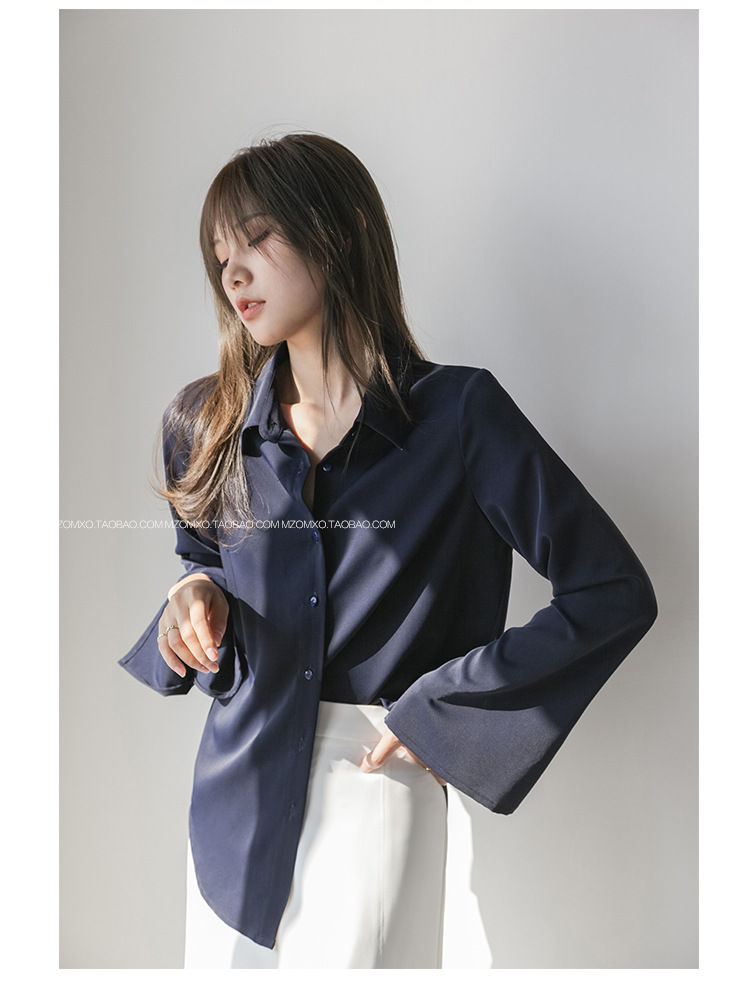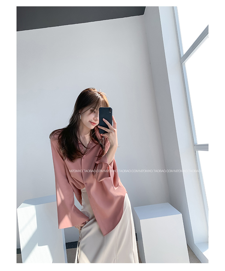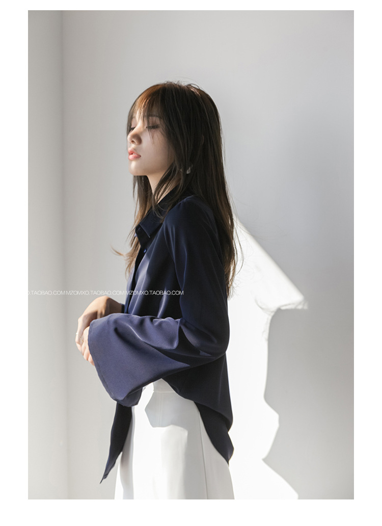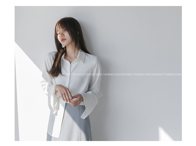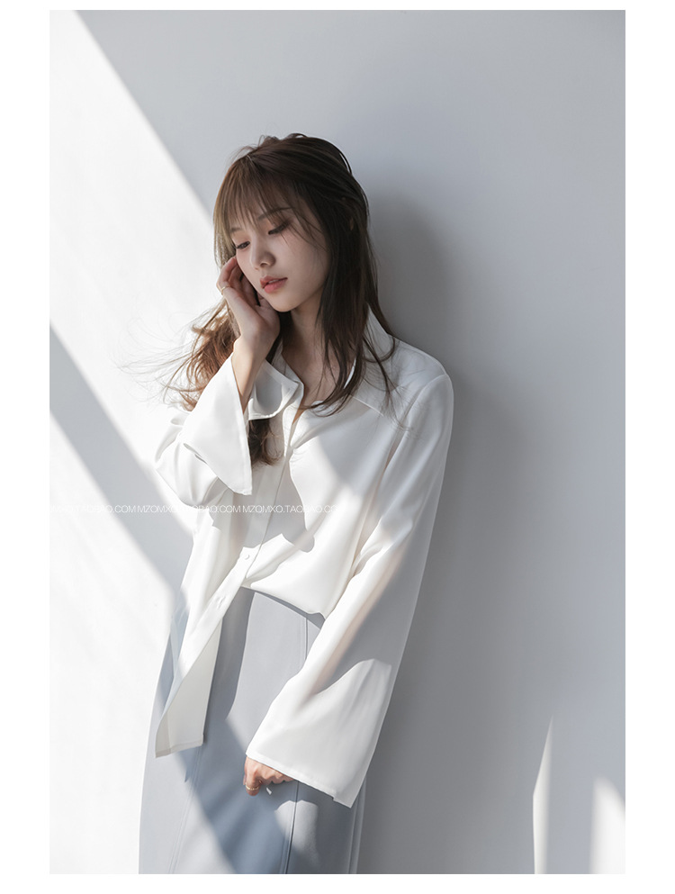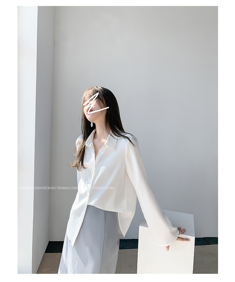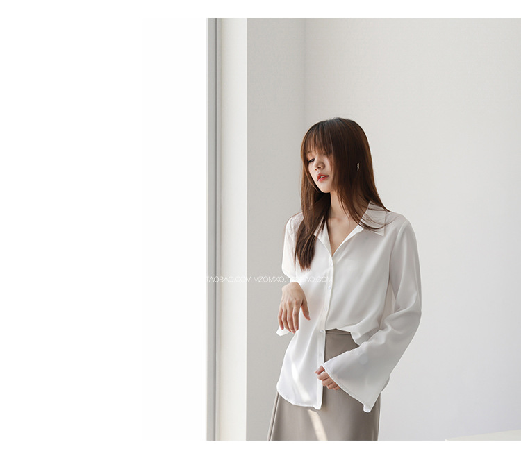 标题:今っぽシアーシャツ韓国ファッション 着痩せ トップス シャツ 春秋 長袖 だるいシフォントップスフレアスリーブ 無地 着やせ白シャツ