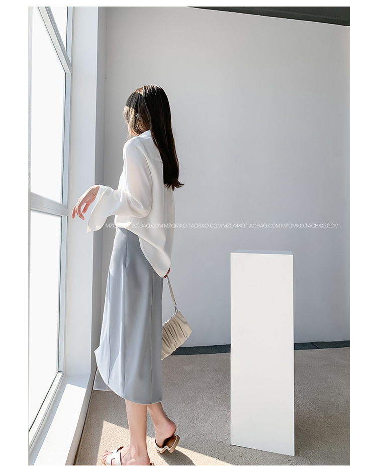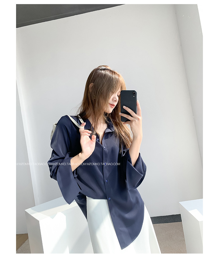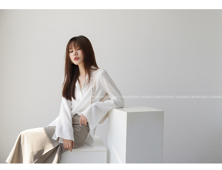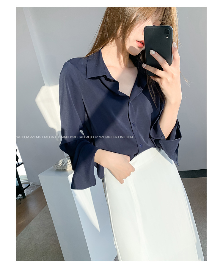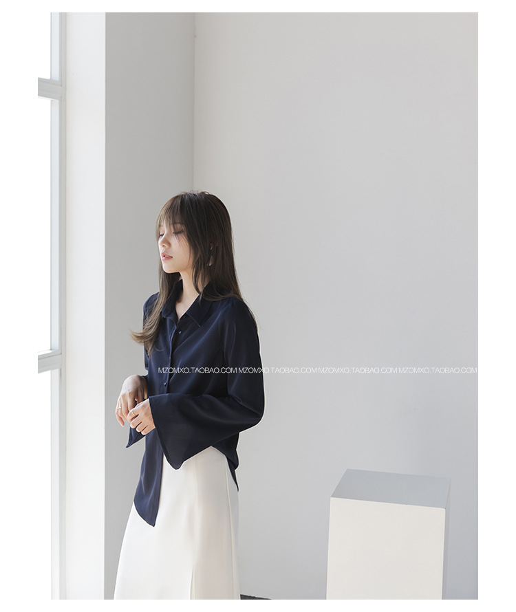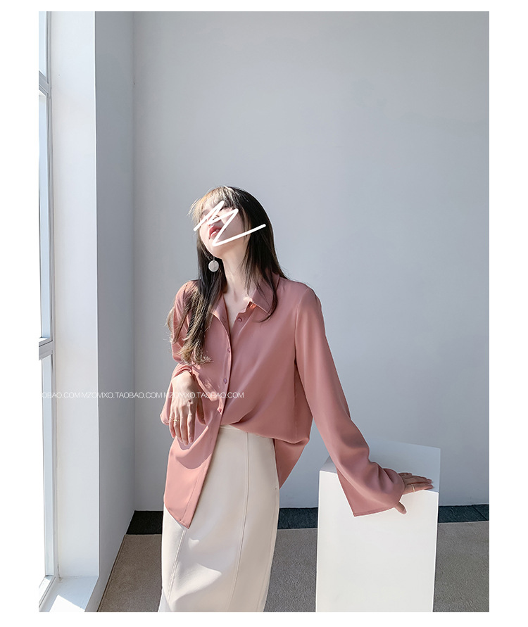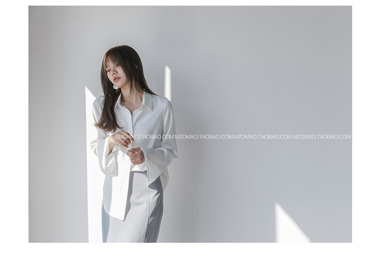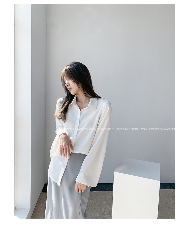 标题:今っぽシアーシャツ韓国ファッション 着痩せ トップス シャツ 春秋 長袖 だるいシフォントップスフレアスリーブ 無地 着やせ白シャツ