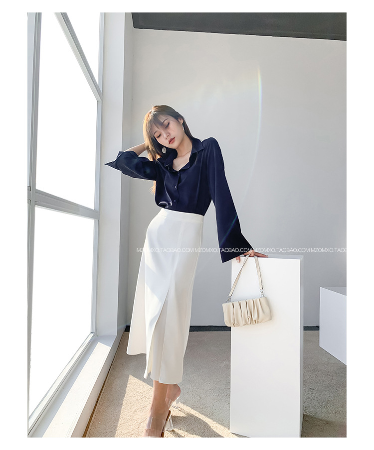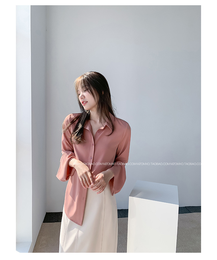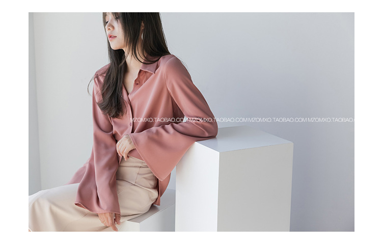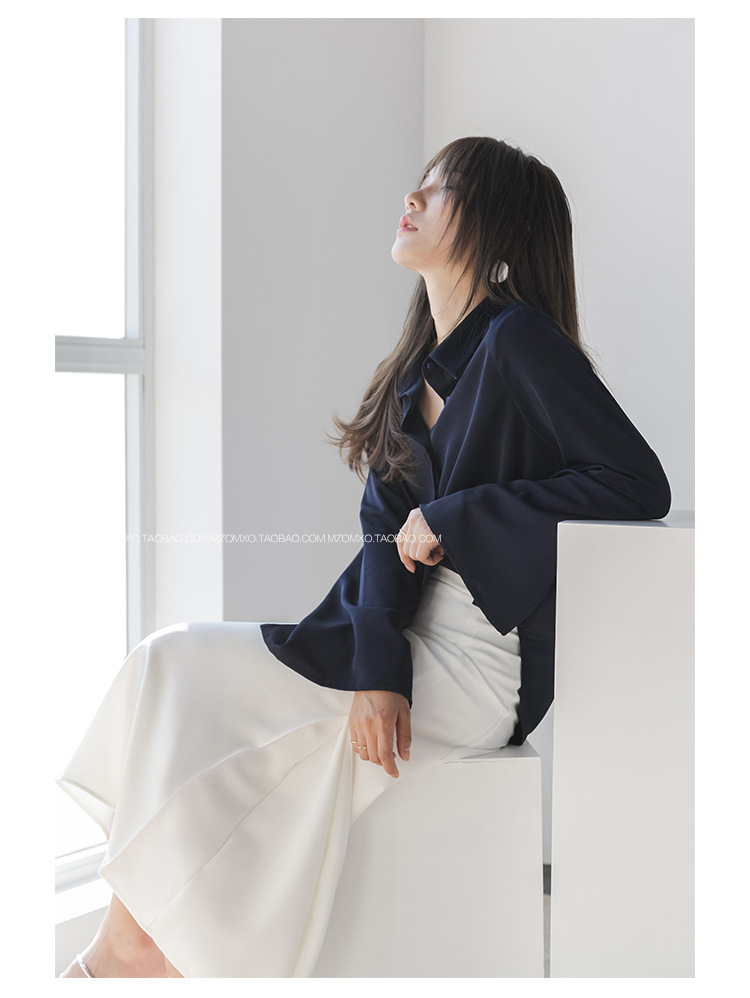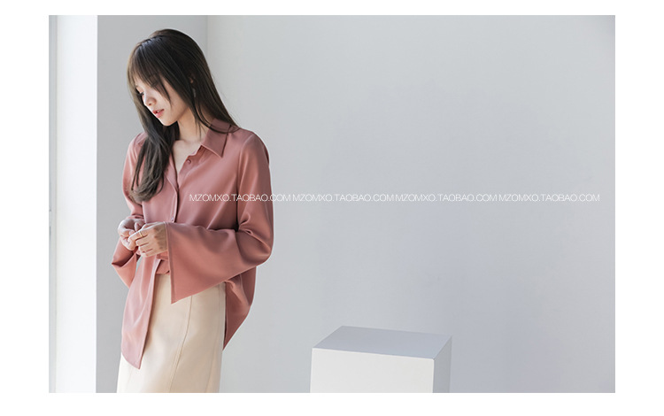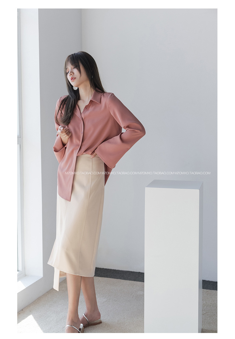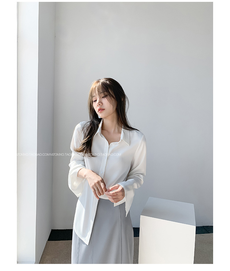 标题:今っぽシアーシャツ韓国ファッション 着痩せ トップス シャツ 春秋 長袖 だるいシフォントップスフレアスリーブ 無地 着やせ白シャツ