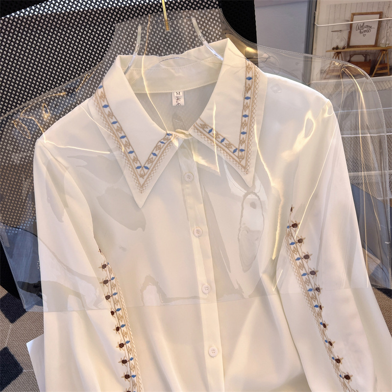 标题:今っぽシアーシャツ韓国ファッション 着痩せ トップス シャツ 春秋 长袖 シャツ女 ホワイトファッションレトロ
