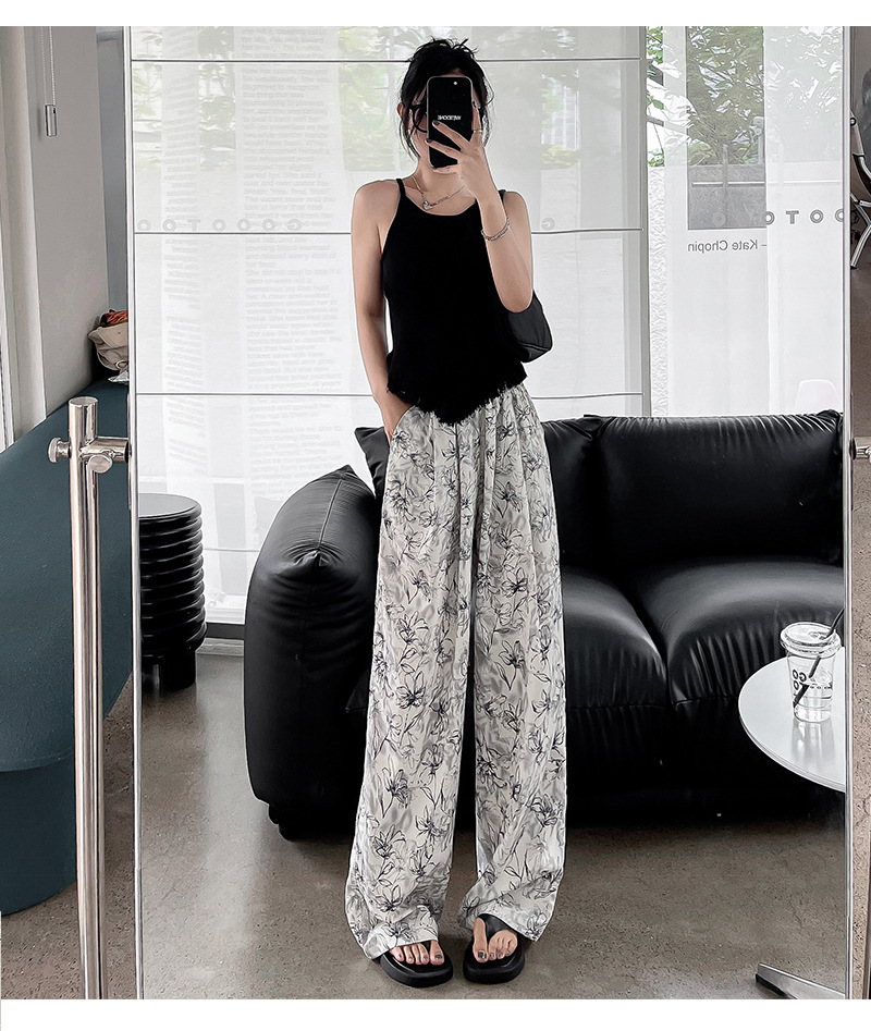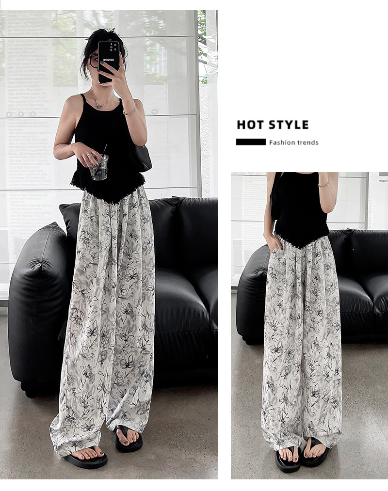 标题:夏 新作 おしゃれ ハイウエスト 薄手 花柄 ワイドパンツ 垂れ感 快適 カジュアルパンツ モップパンツ 百掛け スキニーパンツ