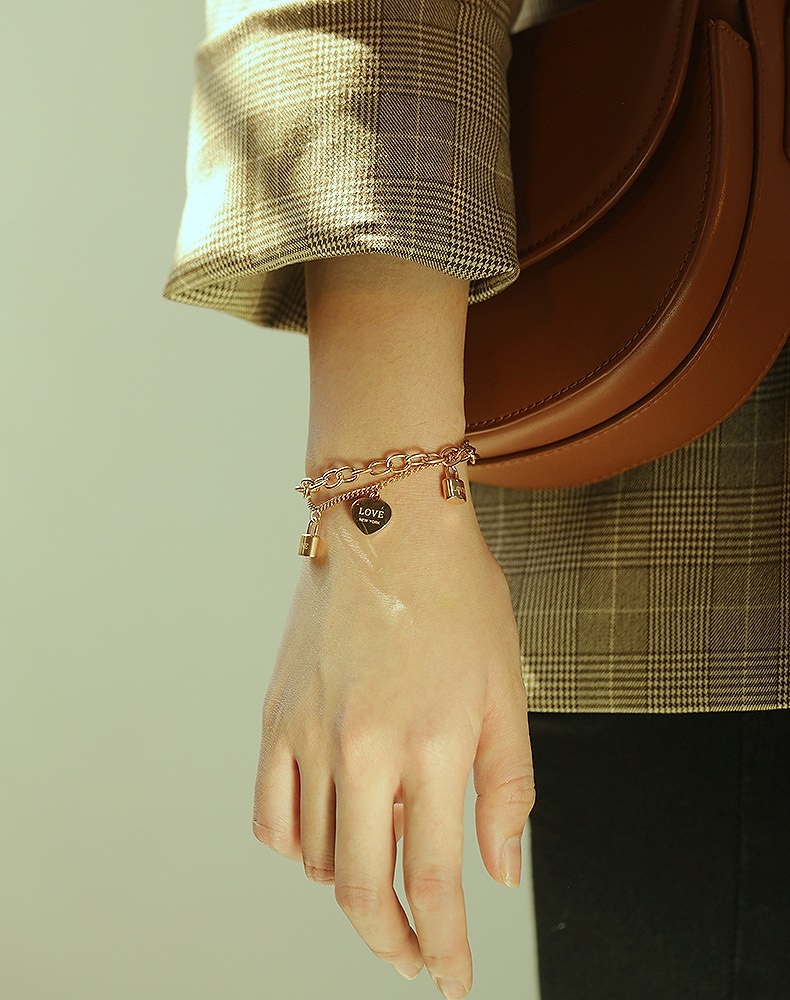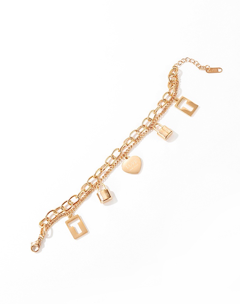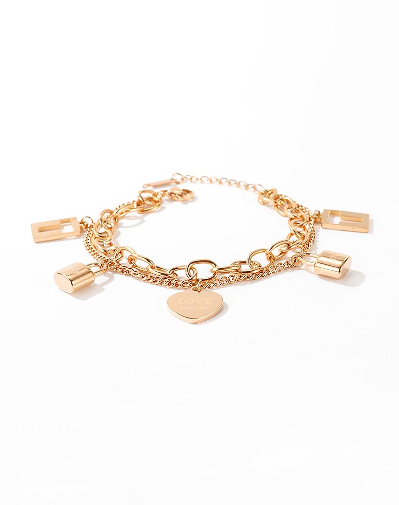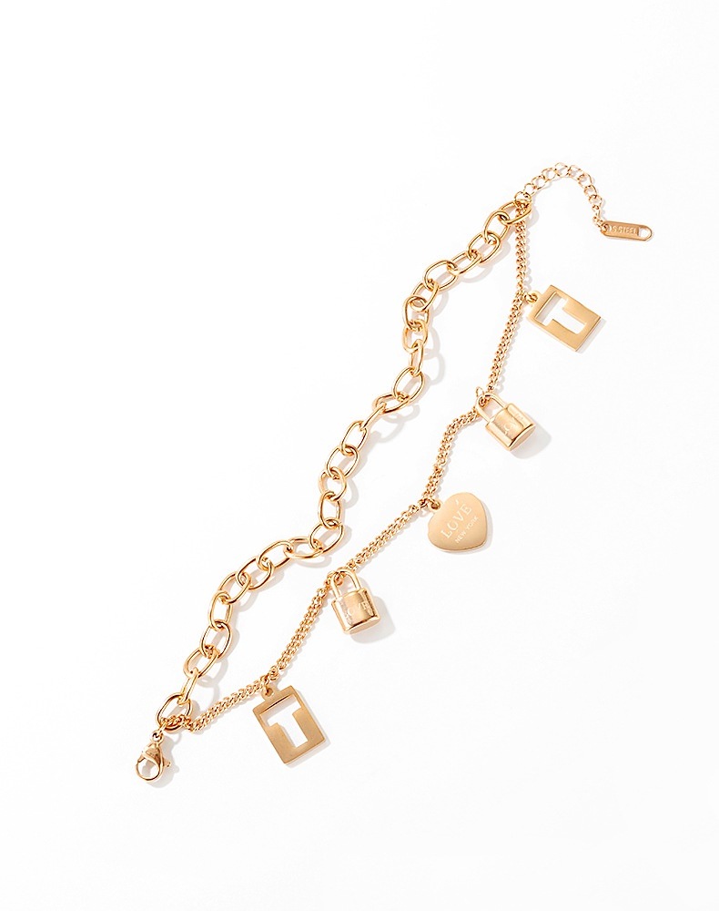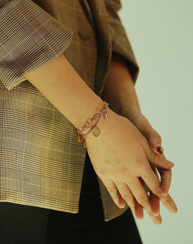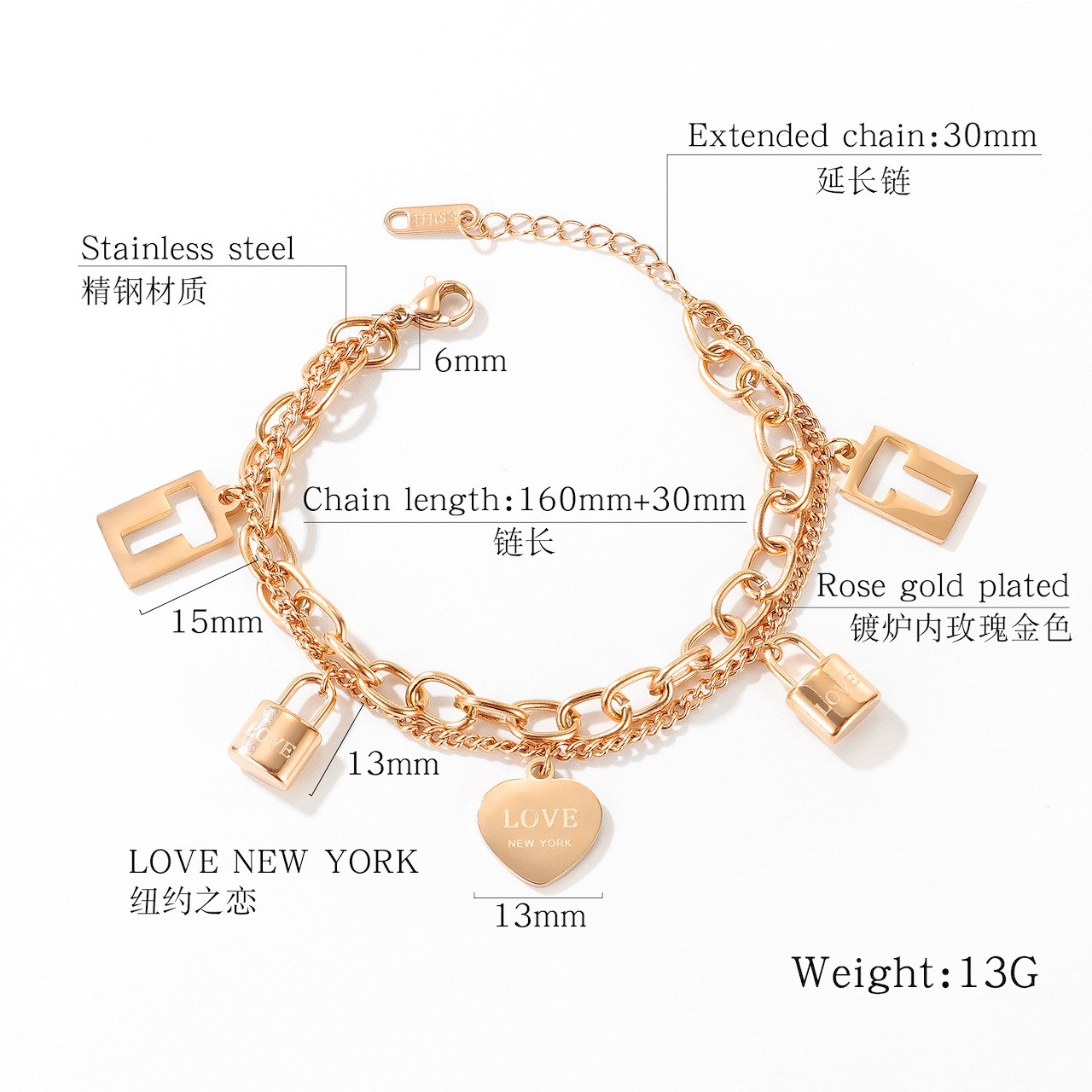 标题:バングル おしゃれ 流行り アクセサリー プレゼント 欧米ファッションハートステンレス製ブレスレット字母ピンクゴールドT形手飾り 雑貨