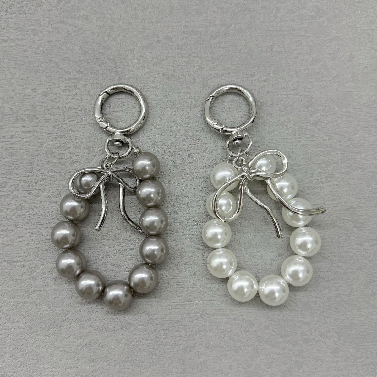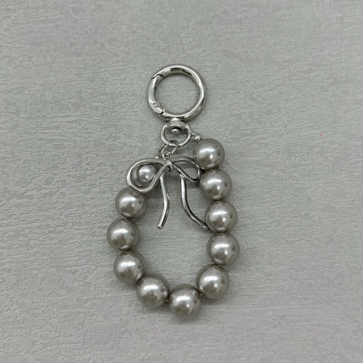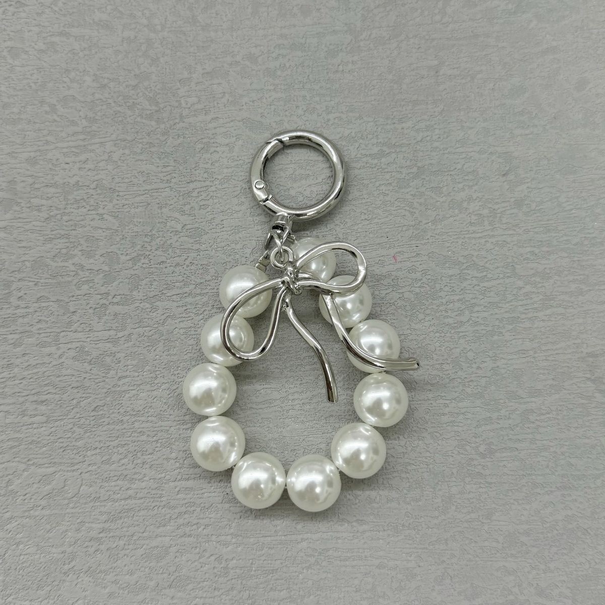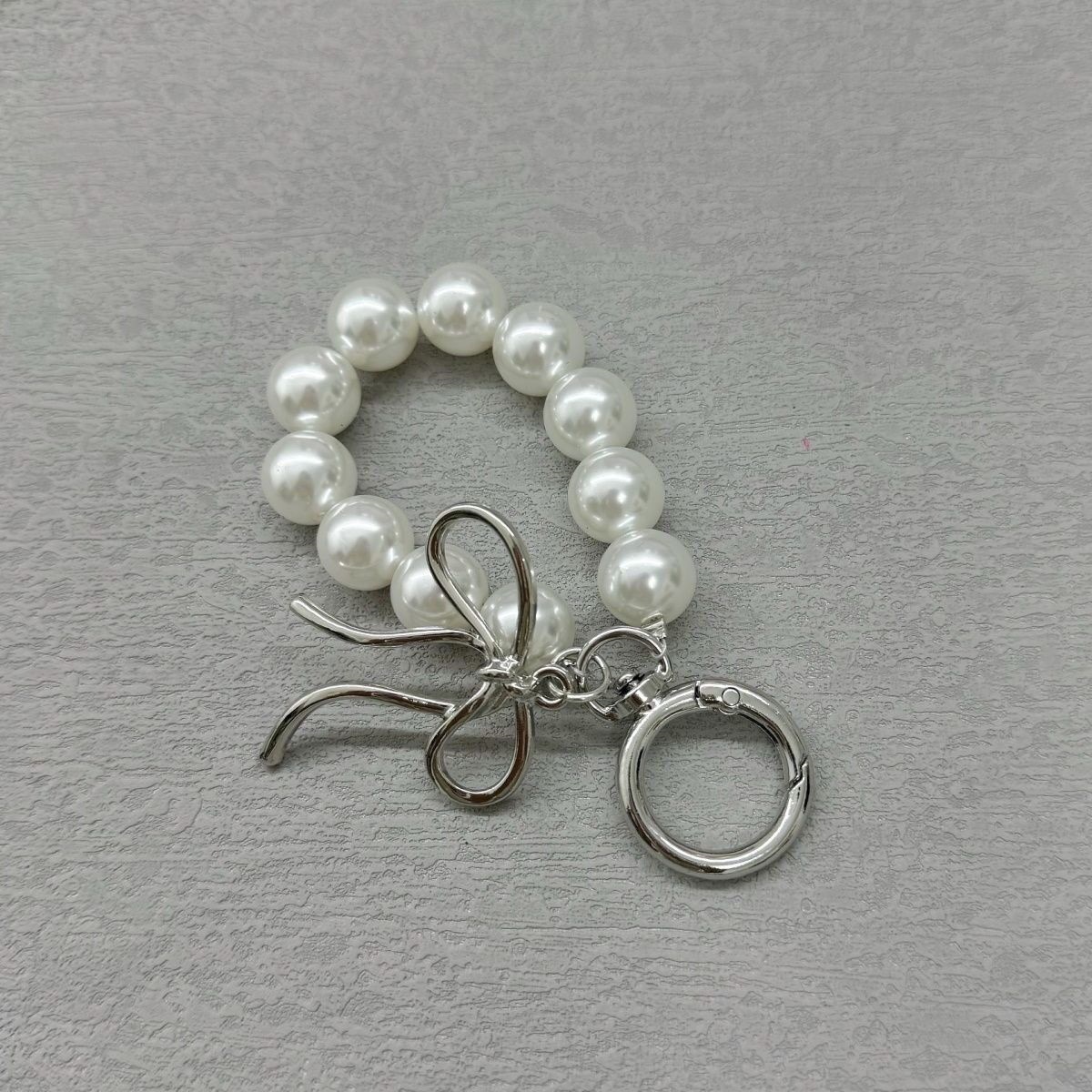 标题:韓国のファッション野生のキーチェーンのペンダントの金属製の形の弓の真珠のビーズの携帯電話の荷物の魅力の韓国語バージョン