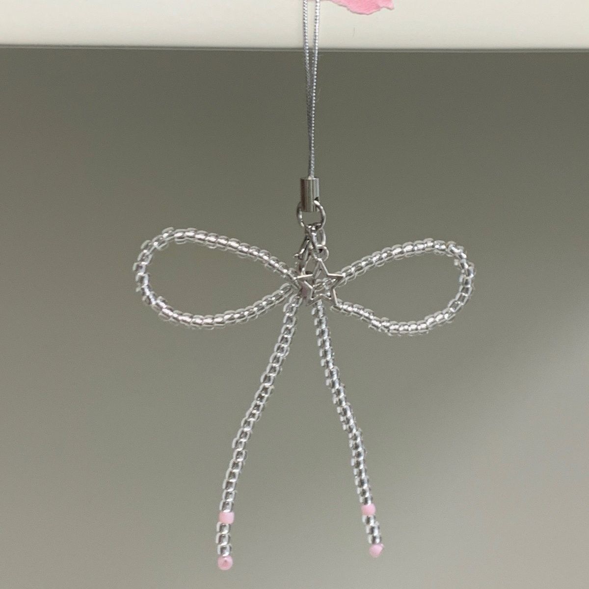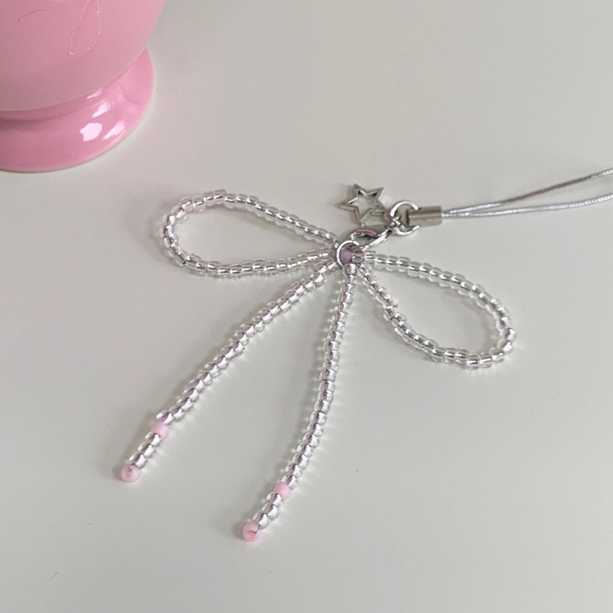 标题:仙女銀粉少女リボン携帯ストラップポラロイドストラップビーズccdカメラ紐キーホルダー