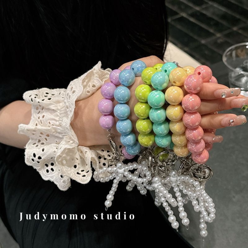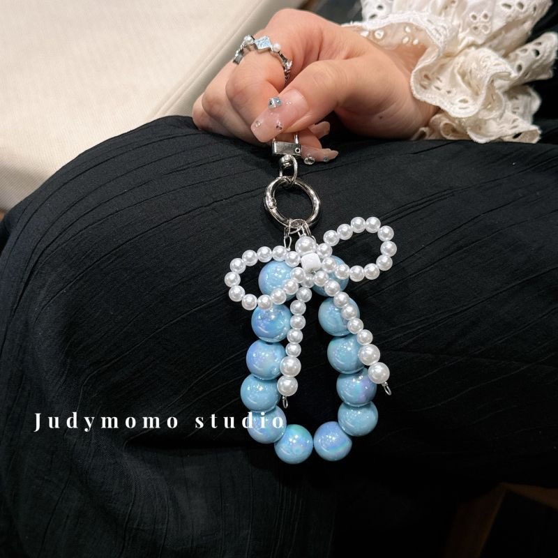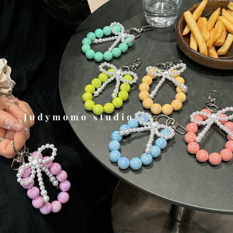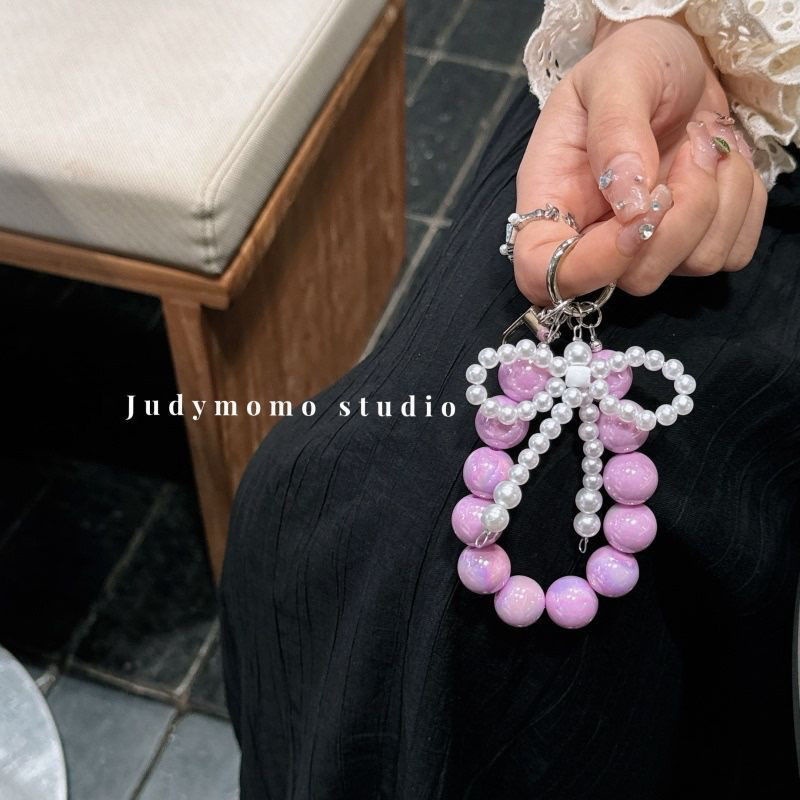 标题:携帯電話のストラップの女の子真珠弓ビーズ ピンクのキーホルダー ストラップ バッグ チャーム チェーンを挿入します