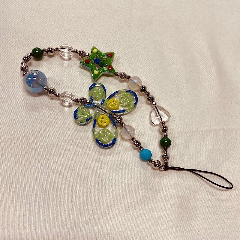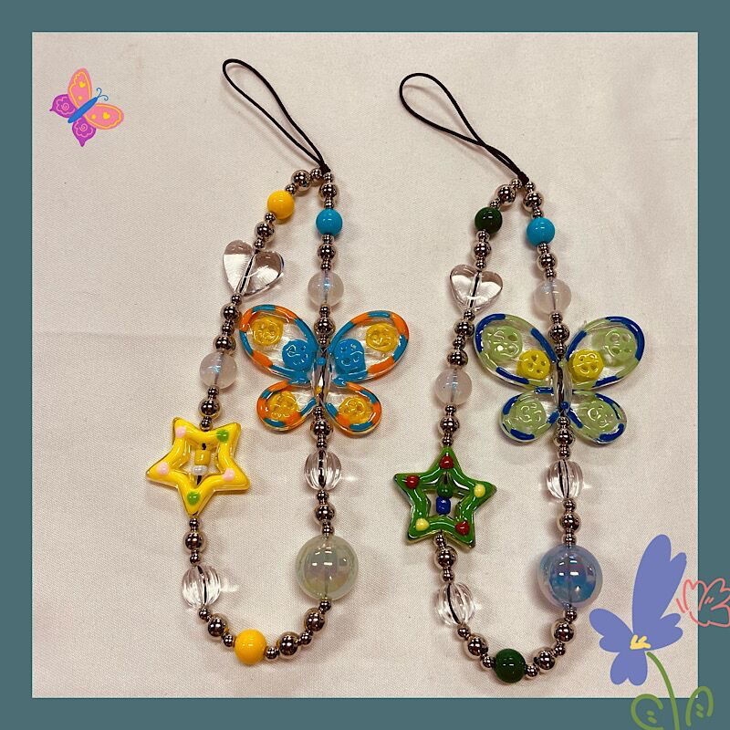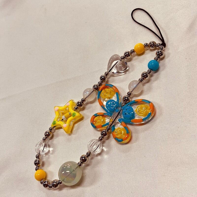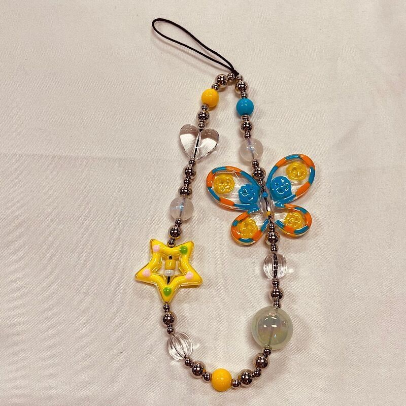 标题:ins手描きチェーン蝶ビーズ携帯ストラップニッチccdカメラストラップです