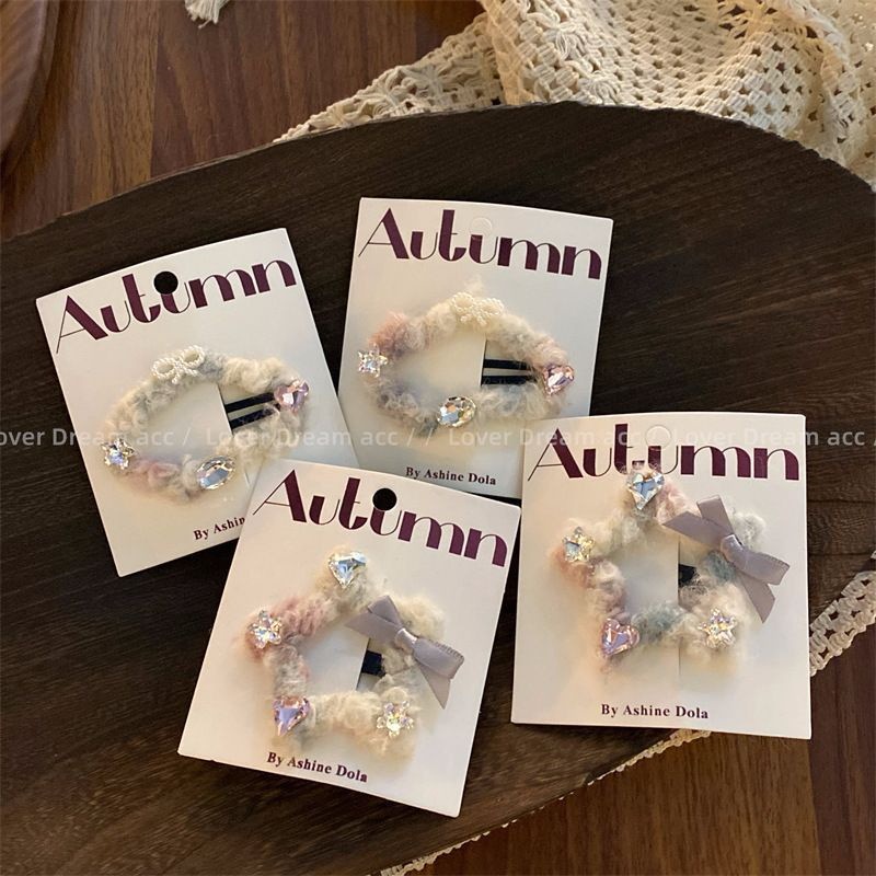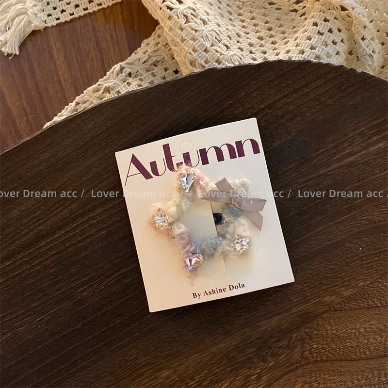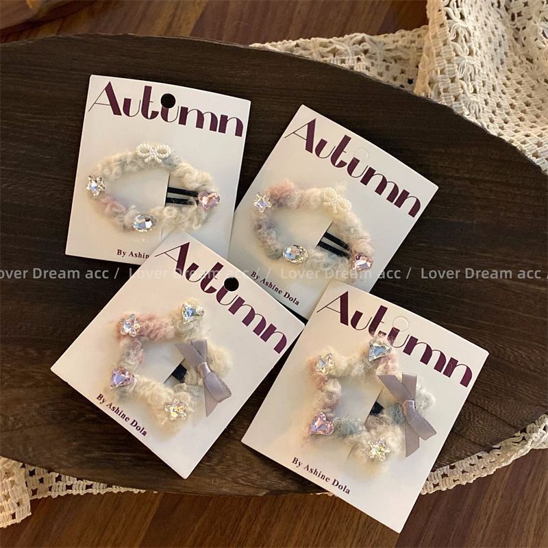 标题:手の込んだ愛心のラインストーンのリボンの秋冬の新型の毛糸雲の星の髪をはさみます甘くてかわいい前髪をはさみます