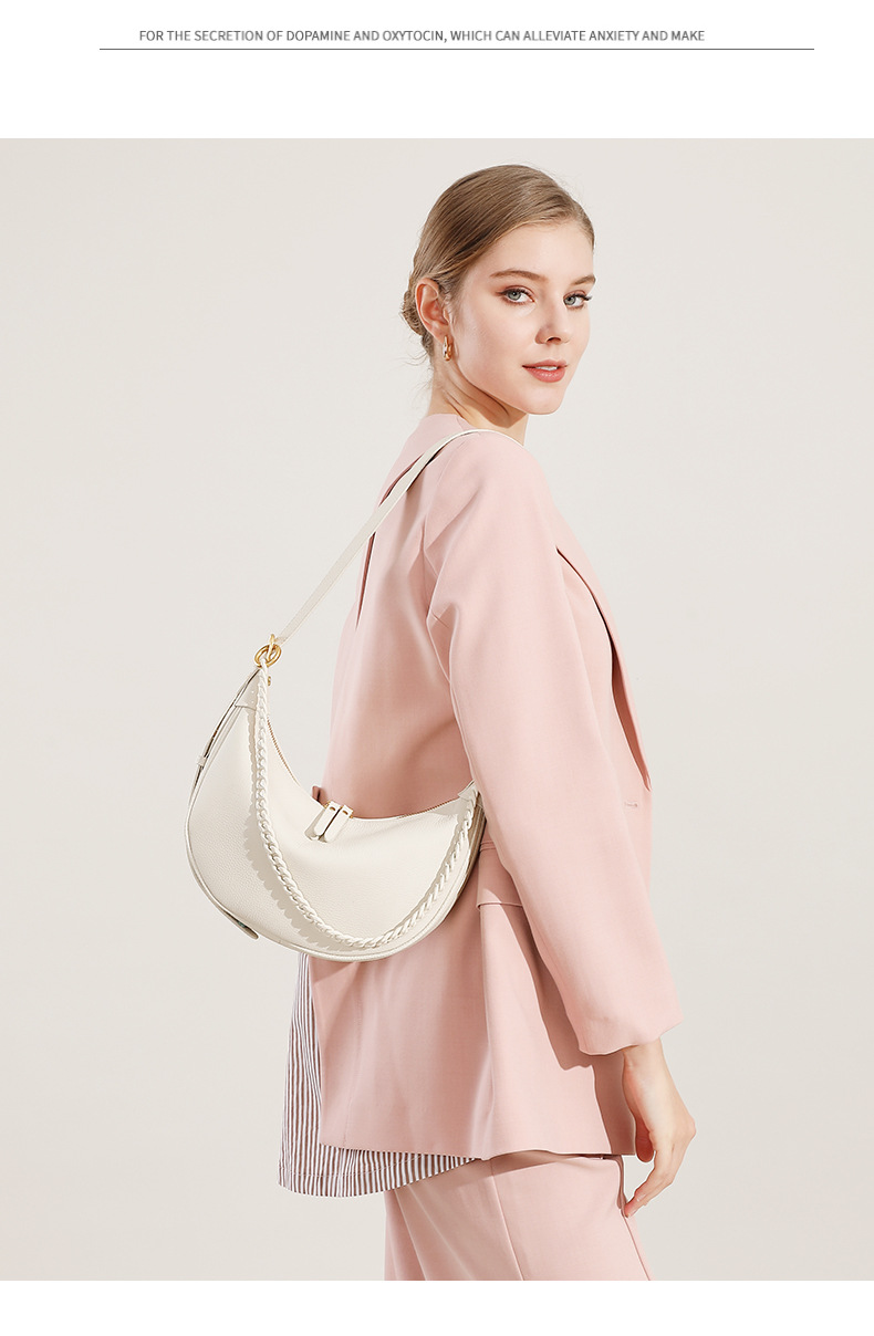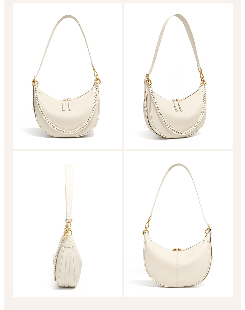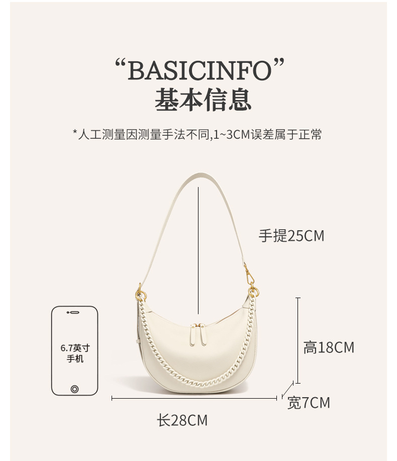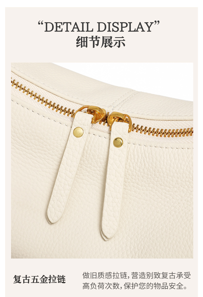描述:色:ベージュ、ブラック、カーキ、スタイル:都市シンプル、品番:2988、材質:本革、皮質特徴:頭層牛皮、箱包潮流スタイル:脇包、箱包サイズ:中、流行要素:車縫糸、発売年季節:2025年春、裏生地:スクラバ、箱包形状:水餃子型、蓋開け方式:ファスナー、バッグ内部構造:ファスナー暗袋、携帯電話袋、中間ファスナー袋、硬度:中、外袋種類:掘る袋、ブランド:無、中間層の有無:有、肩紐本数:二本、適用シーン: