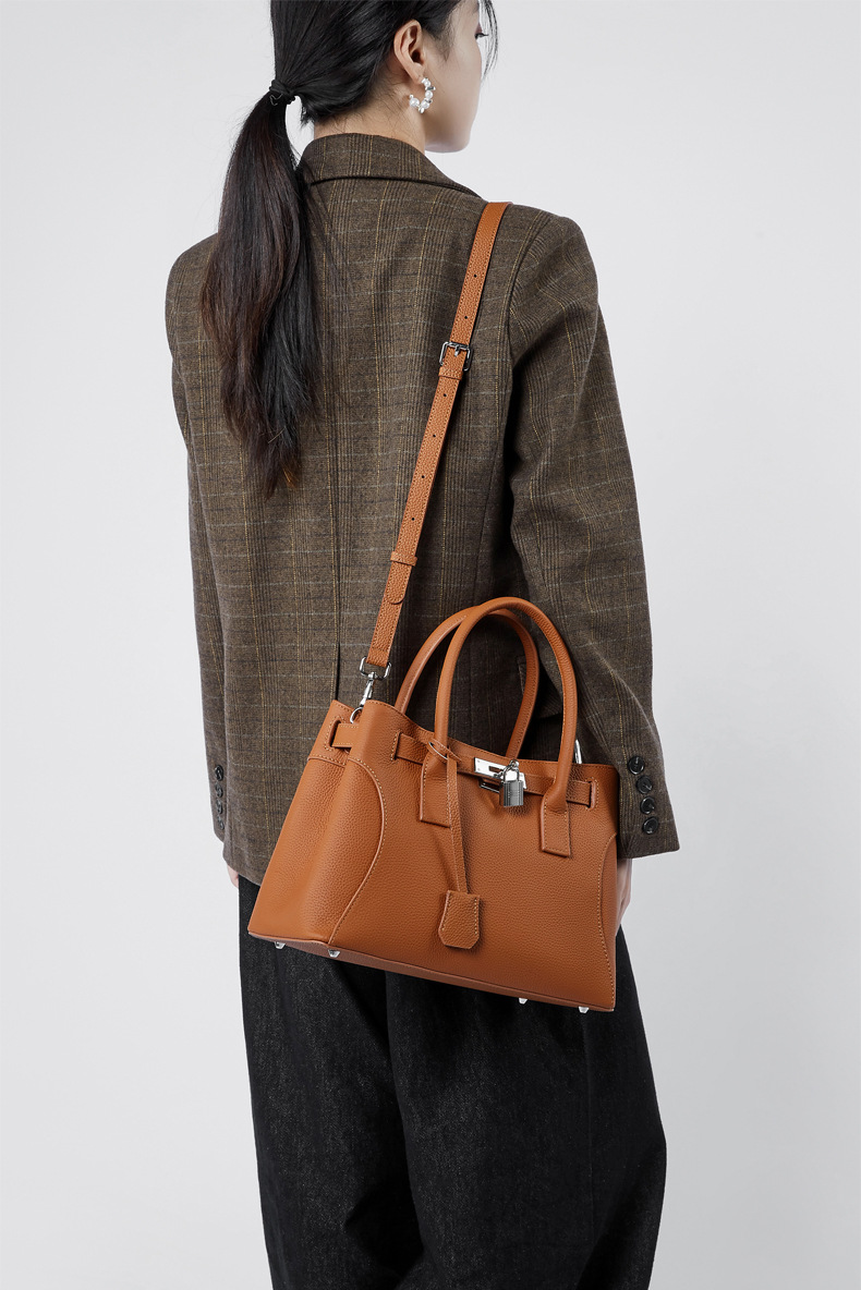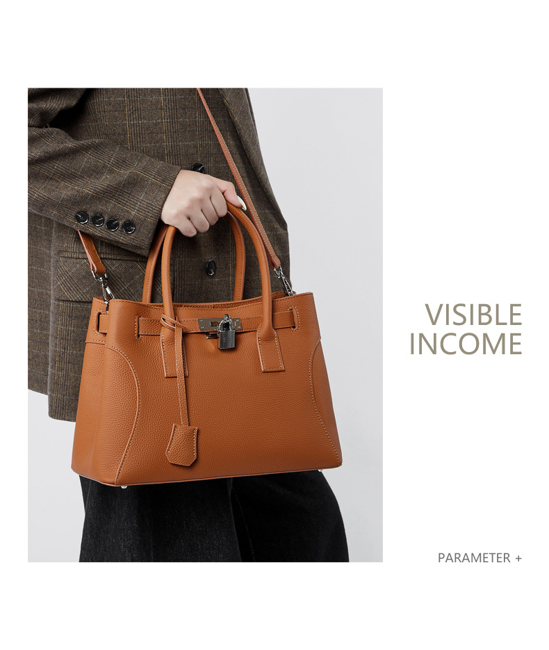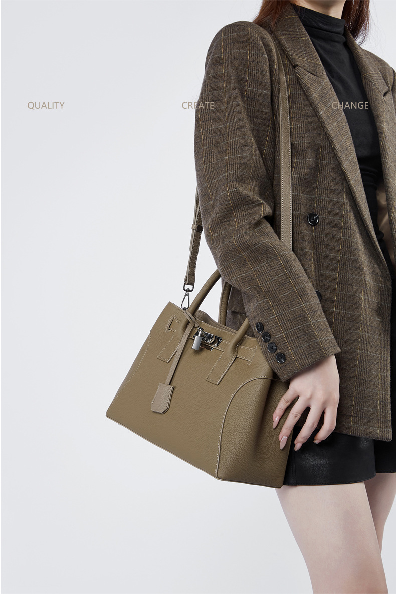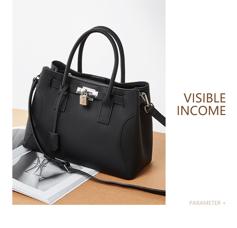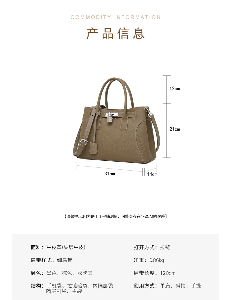 描述:色:ブラック、ブラウン、グレー、スタイル:都市シンプル、品番:2859、材質:本革、皮質特徴:頭層牛革、箱包潮流スタイル:トートバッグ、箱包サイズ:大、流行要素:ロック、裏材生地:スクラバー、箱包形状:横型四角、蓋方式:ファスナー、バッグ内部構造:携帯電話袋、証明書袋、硬度:中硬、外袋種類:立体袋、ブランド:なし、授権可能な自社ブランド:はい、中間層の有無:あり、肩紐本数:一本、適用シーン:日常コ