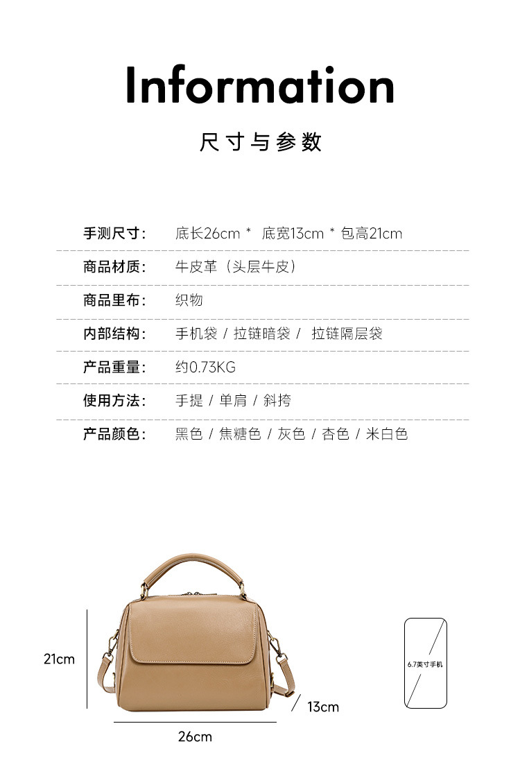 描述:色:カラメル色、高級グレー、アンズ色、黒、ベージュ、スタイル:都市シンプル、品番:2880、材質:本革、皮質特徴:頭層牛革、箱包潮流デザイン:ボストンバッグ、箱包サイズ:大、流行要素:車縫糸、裏生地生地:ポリエステル、箱包形状:横金方形、蓋開け方式:バッグ蓋式、バッグ内部構造:ファスナー暗袋、携帯電話袋、中間層ファスナー袋、硬度:ソフト、外袋種類:掘る袋、ブランド:なし、中間層の有無:あり、肩帯本