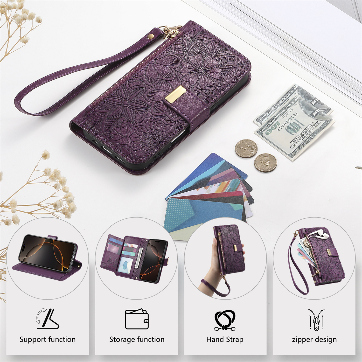 标题:iPhone XR花と葉のカバー付き携帯カバー斜め掛け長ストラップiPhone 8 PlusおサイフケータイホルダーiPhone XS MaxPU皮手首携帯ケースiPhone 11 Pro Max携帯ケース