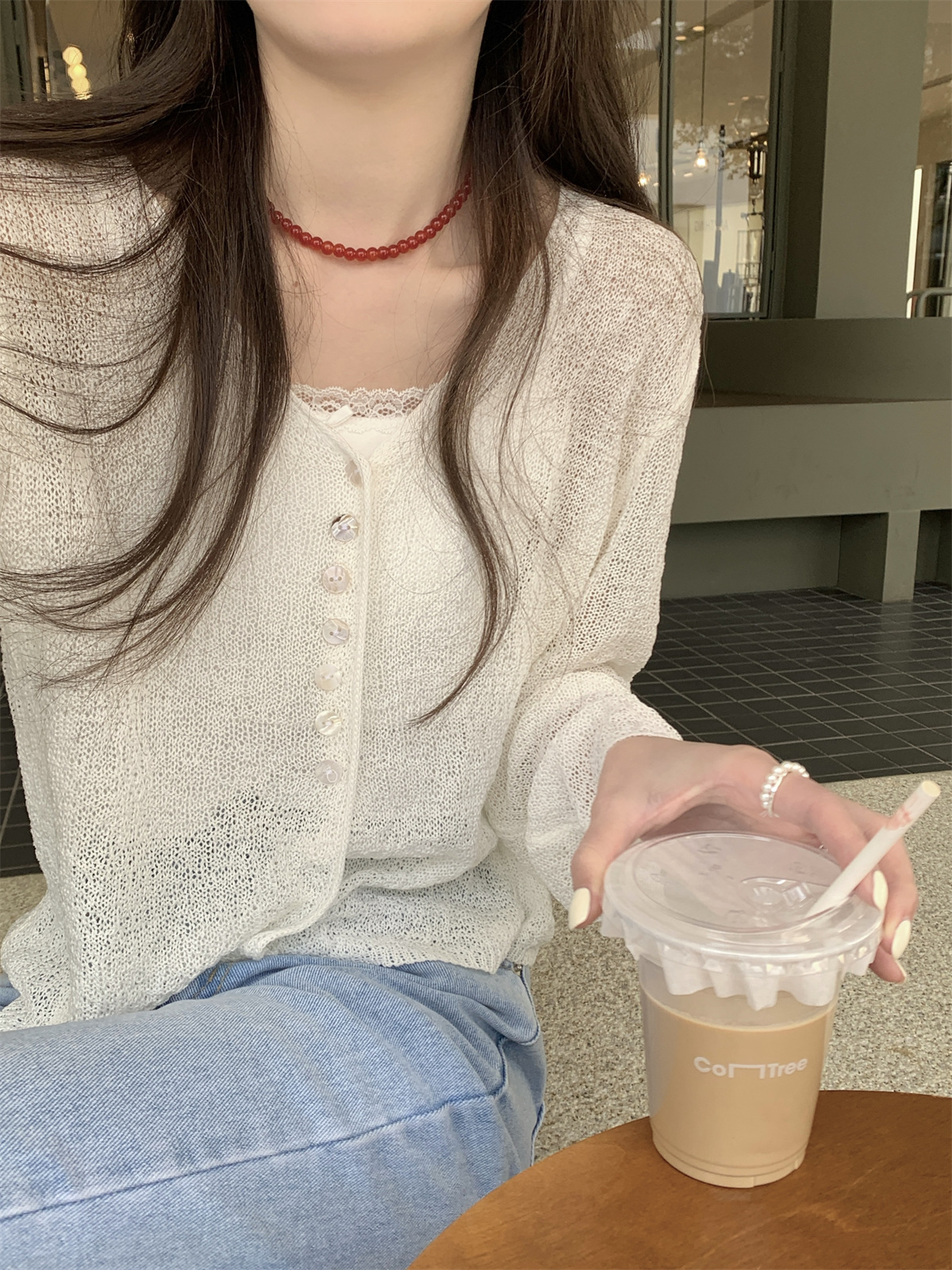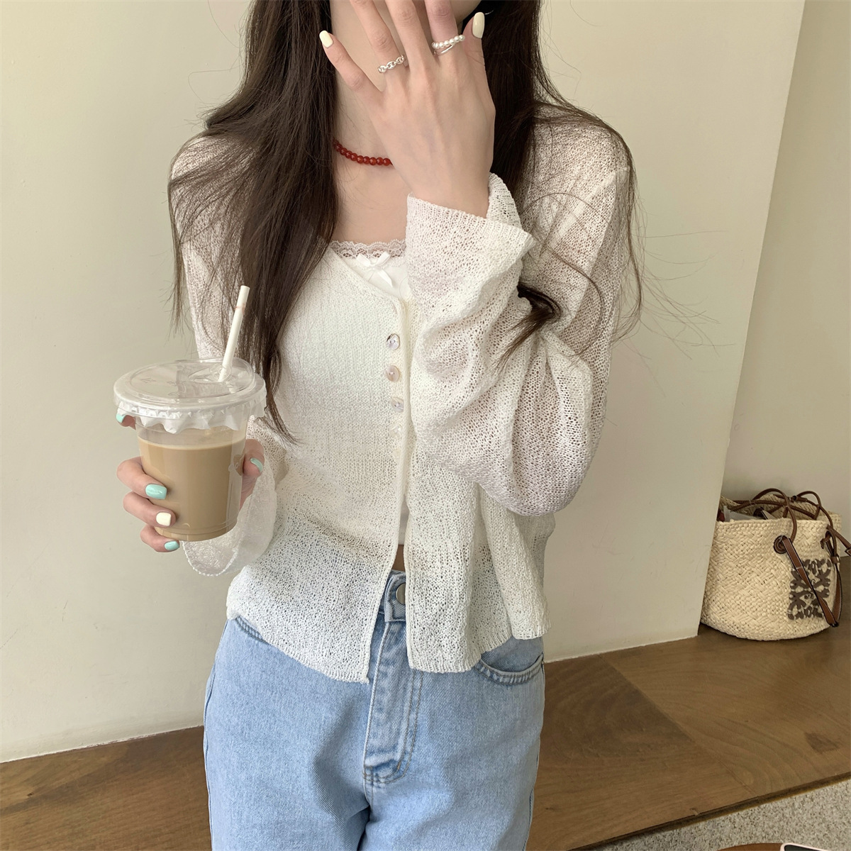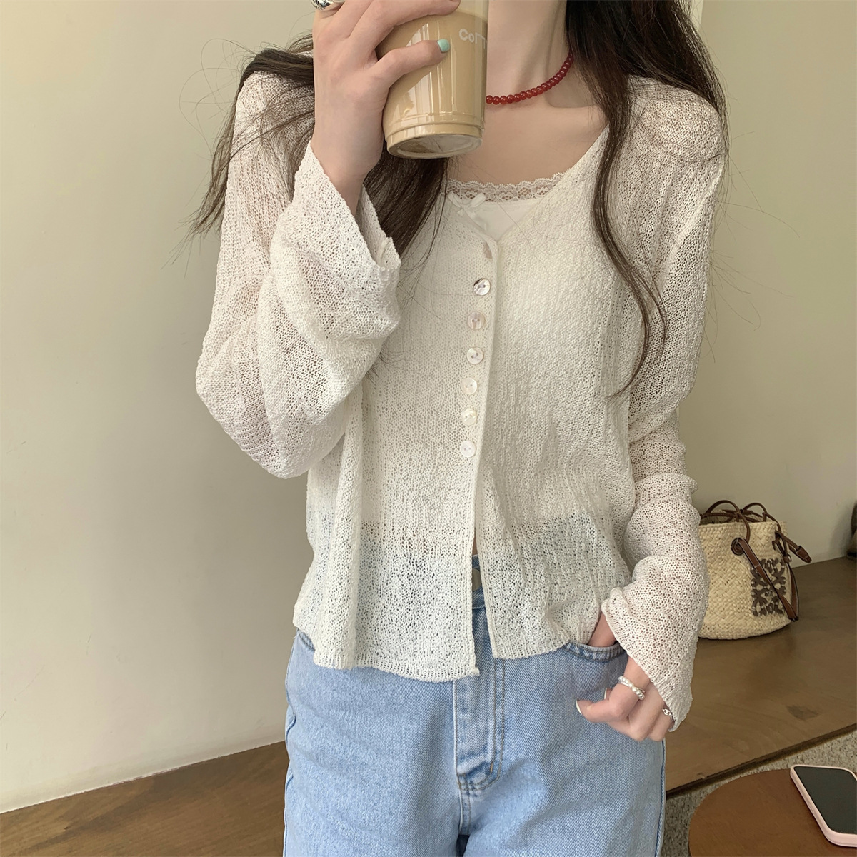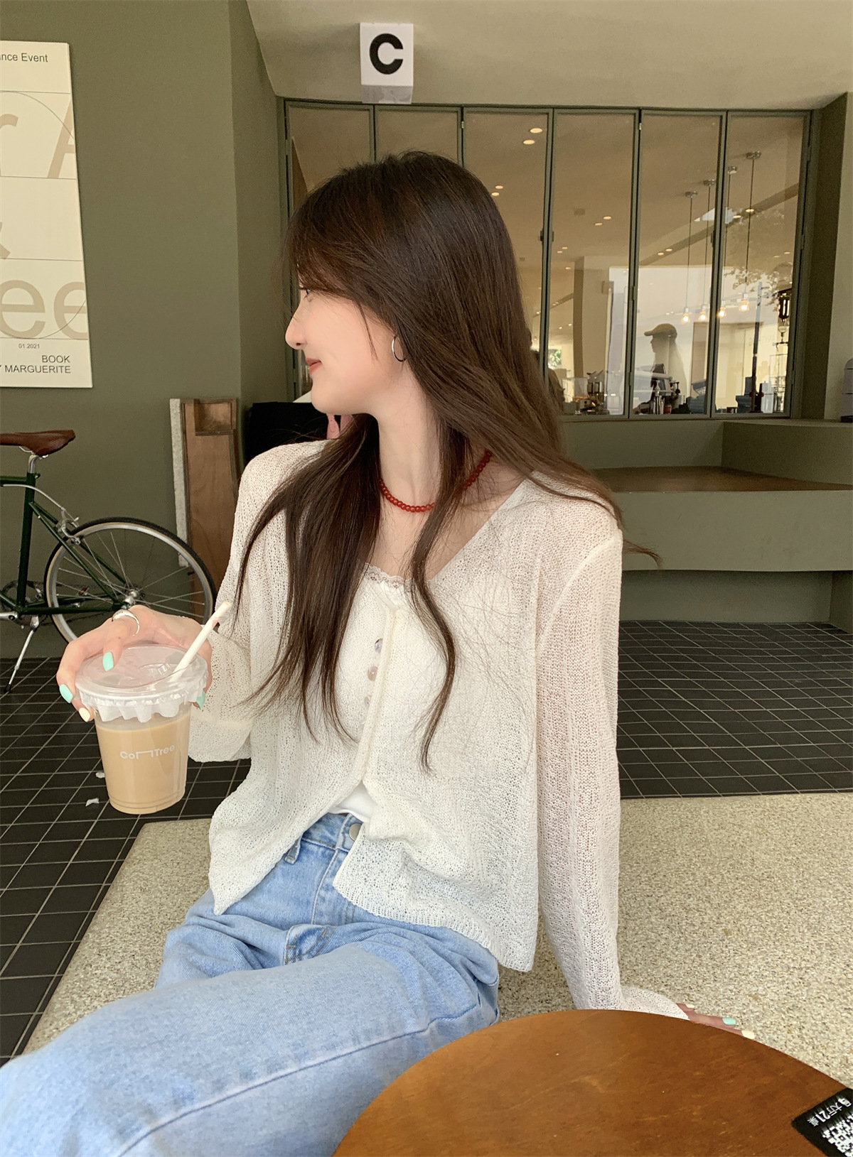 标题:新作 夏 韓国風VネックUVニット リネン風 ゆったりUVカット日焼け防止ウェア