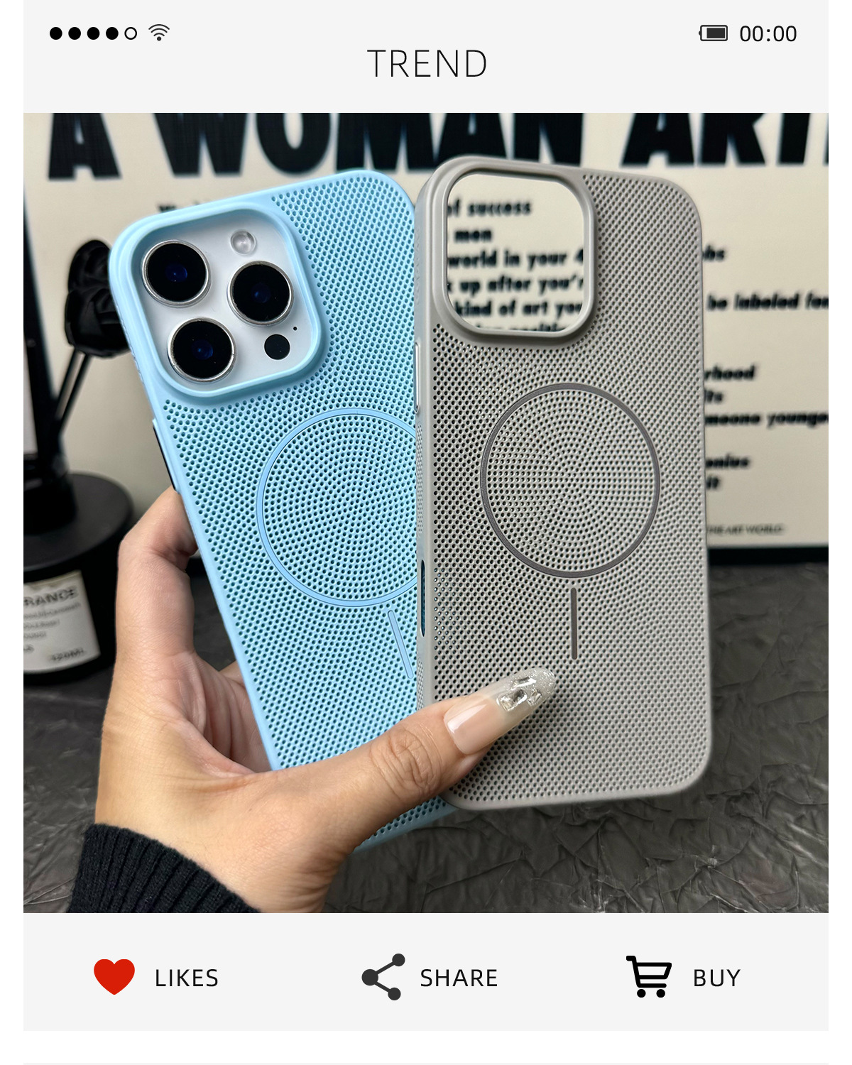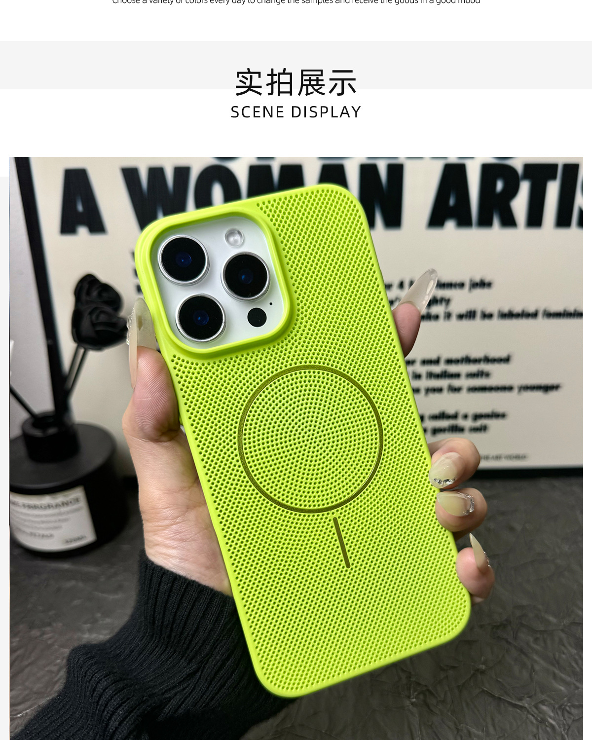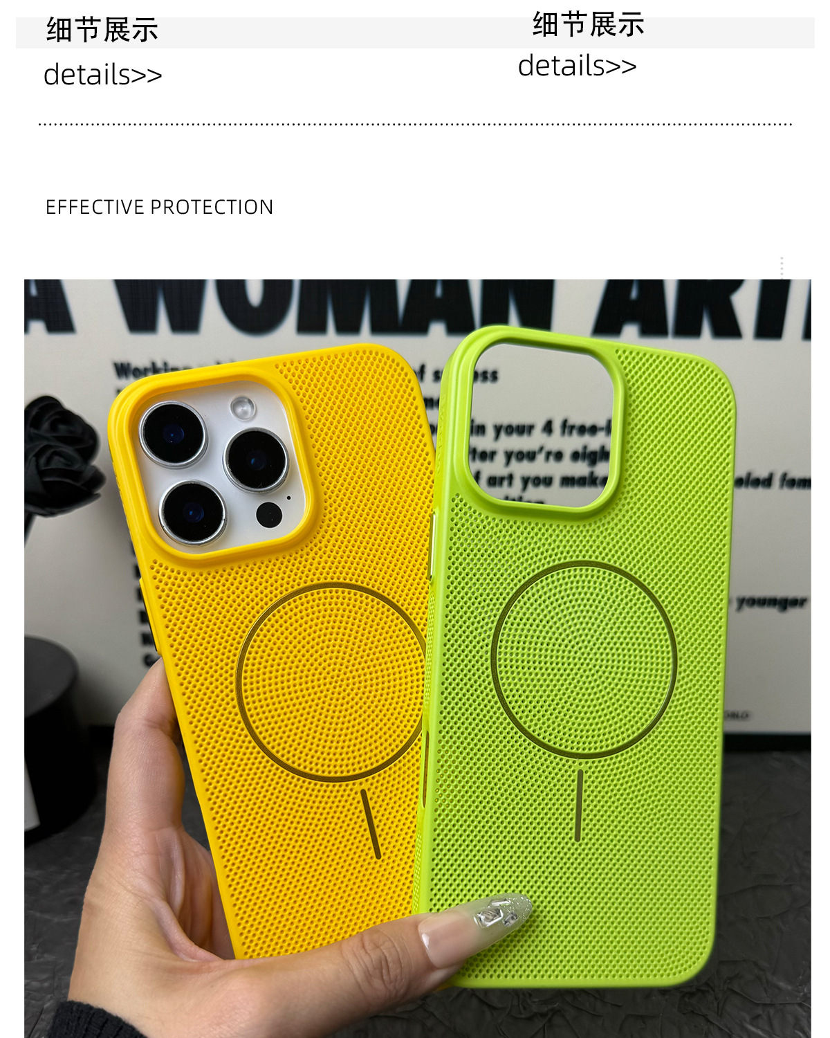 标题:iPhone 17放熱通気性細リング磁気吸引携帯ケースアップル16研磨超薄型PC転倒防止保護カバー適用