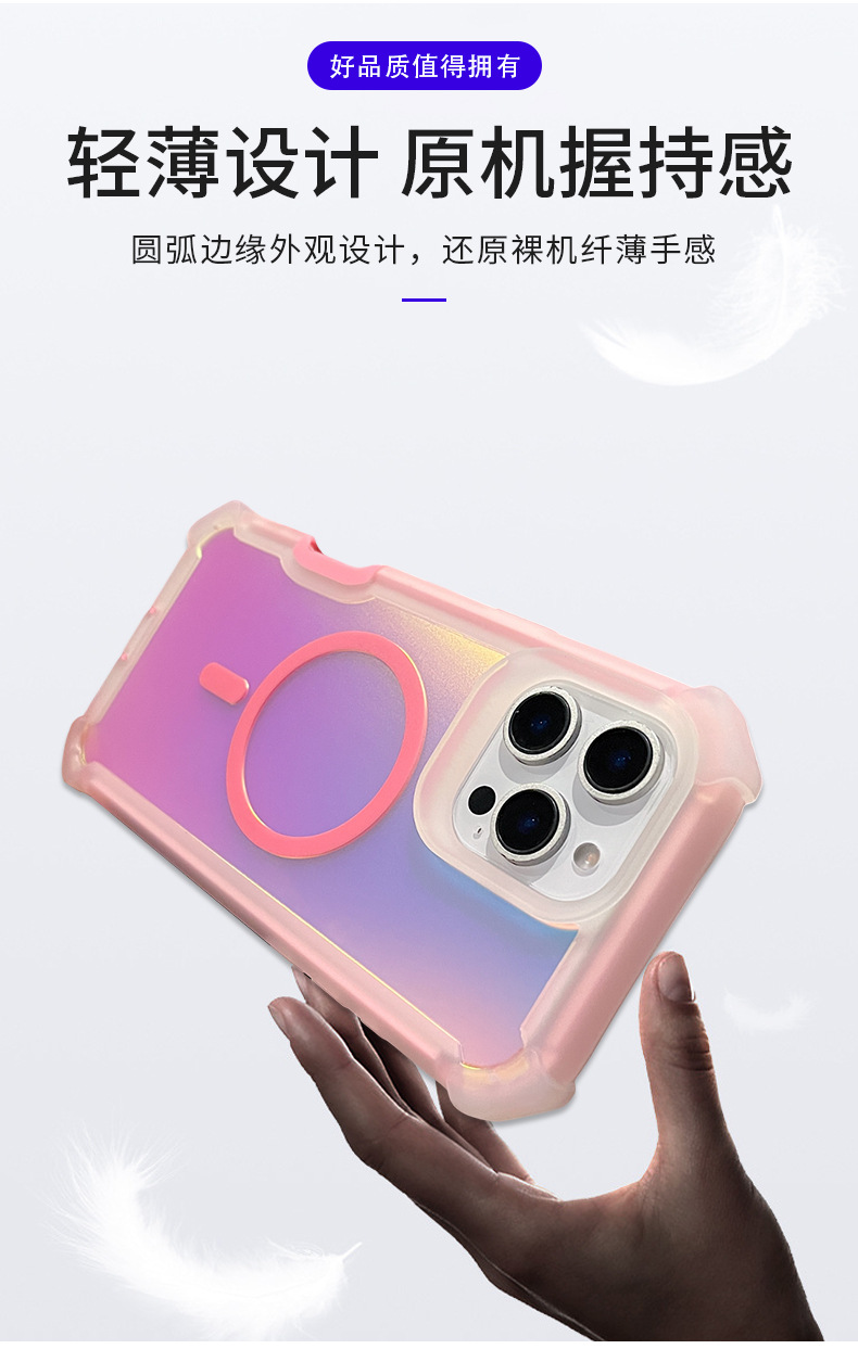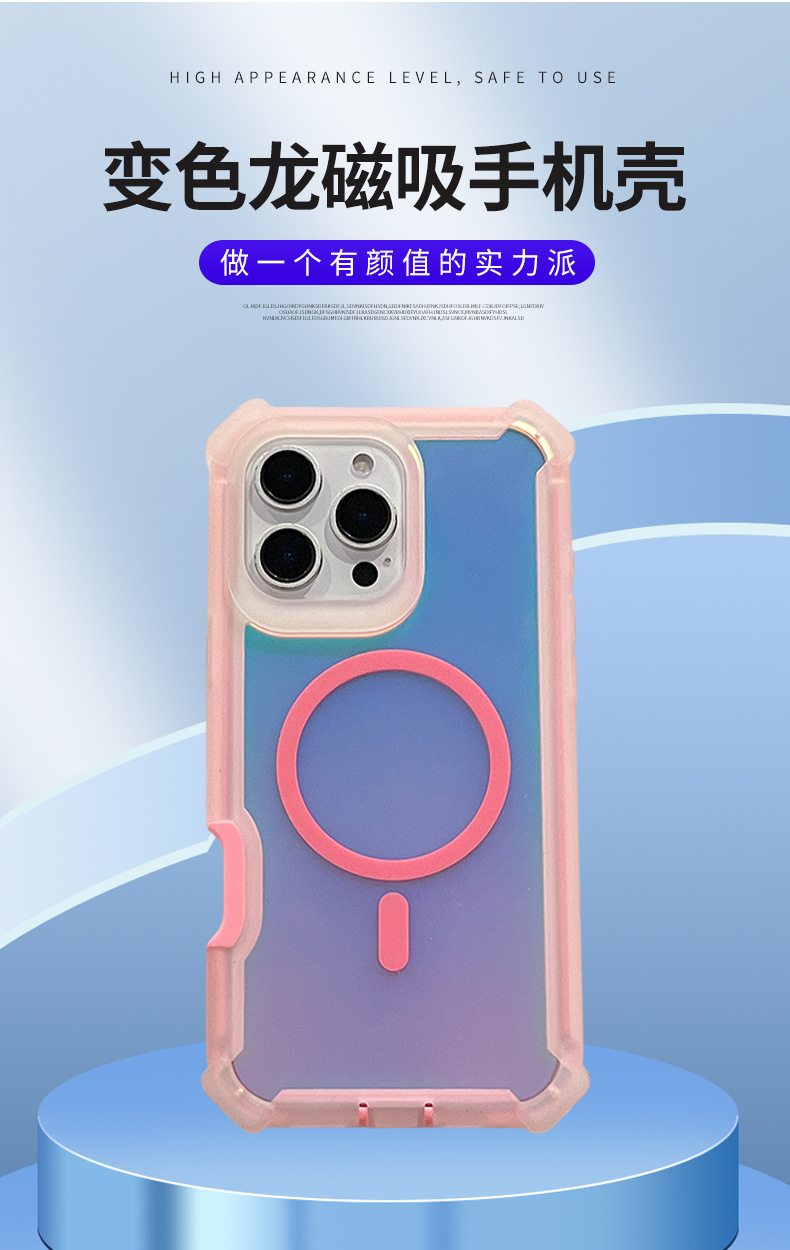 标题:适用iPhone16PROMAX保护套14变色龙电镀磁吸手机壳四角防摔苹果15