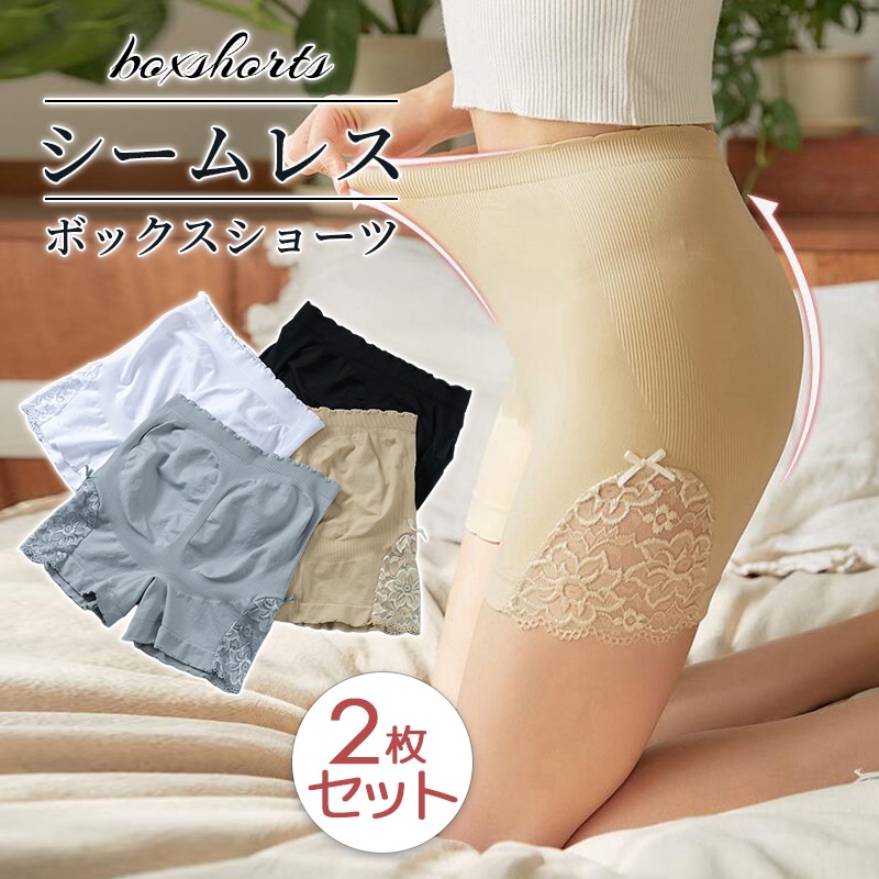 标题:ボックスショーツ レディース 2枚セット ボクサーパンツ ボーイレングス ハイウエスト サイドレース パンツ パンティー 薄手 立体裁断 3D裁断 インナー 女性ショーツ