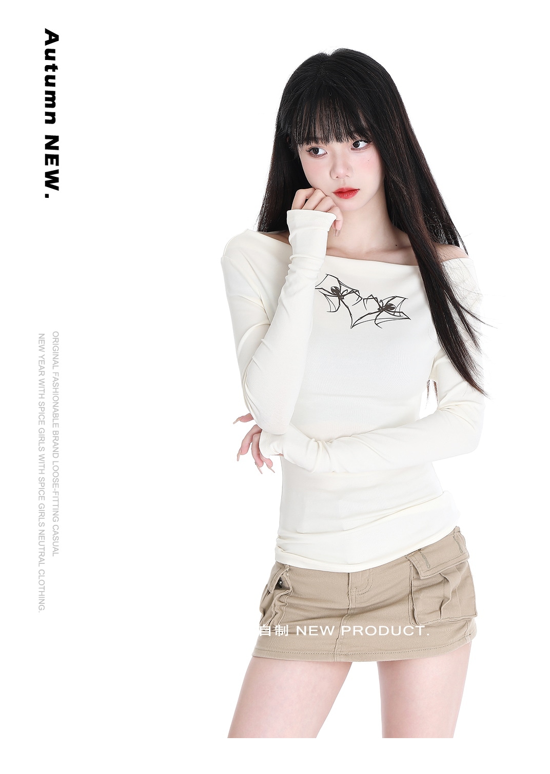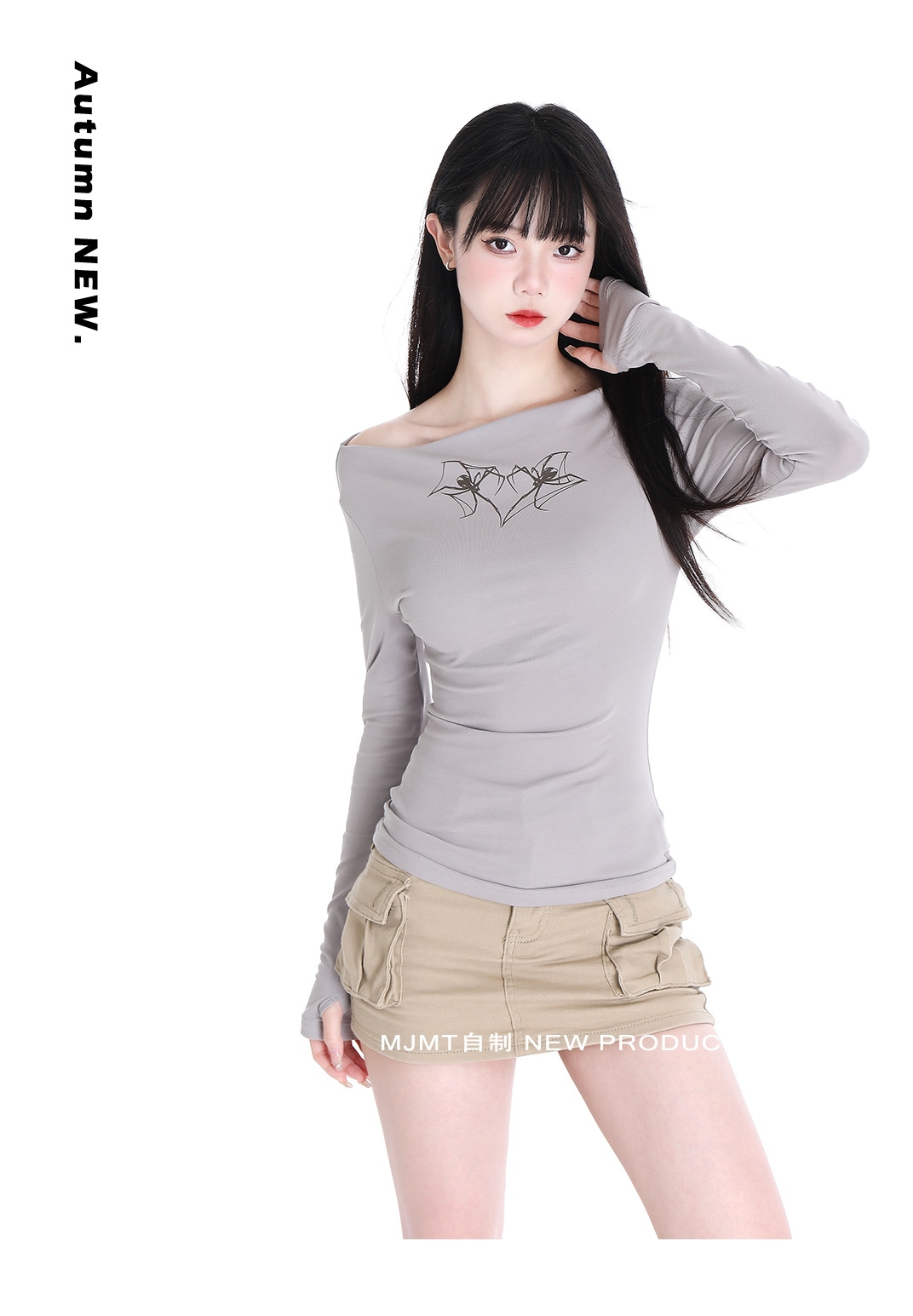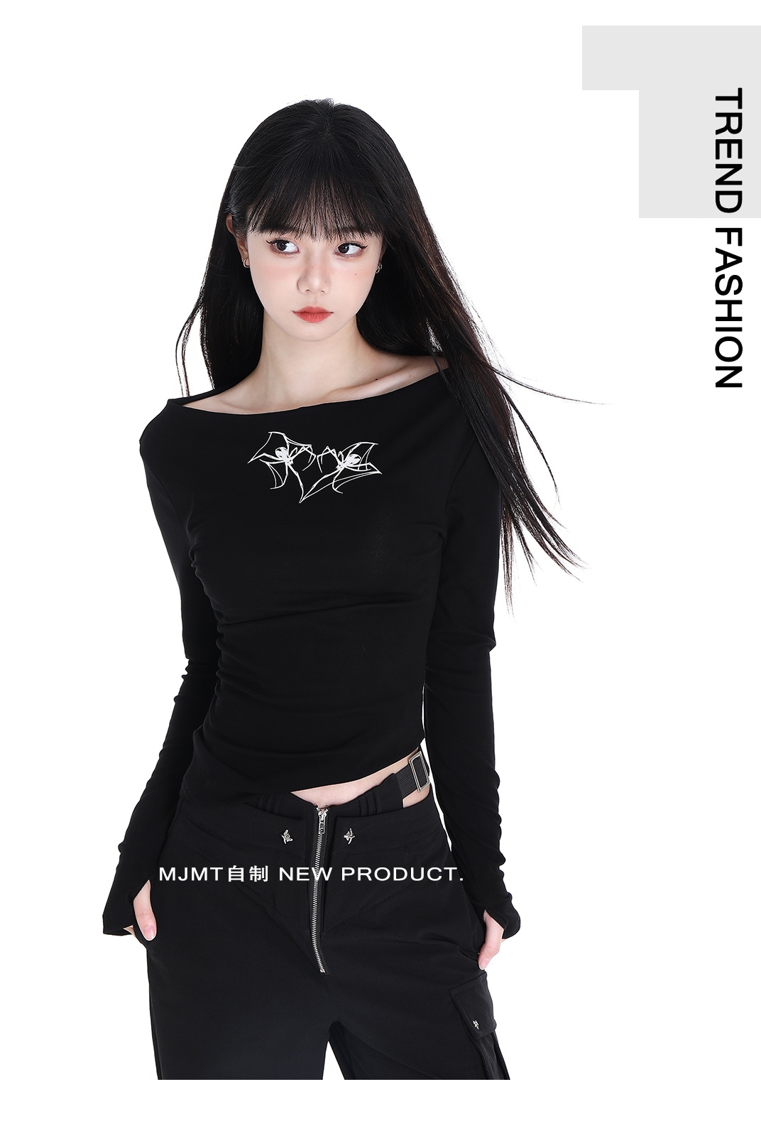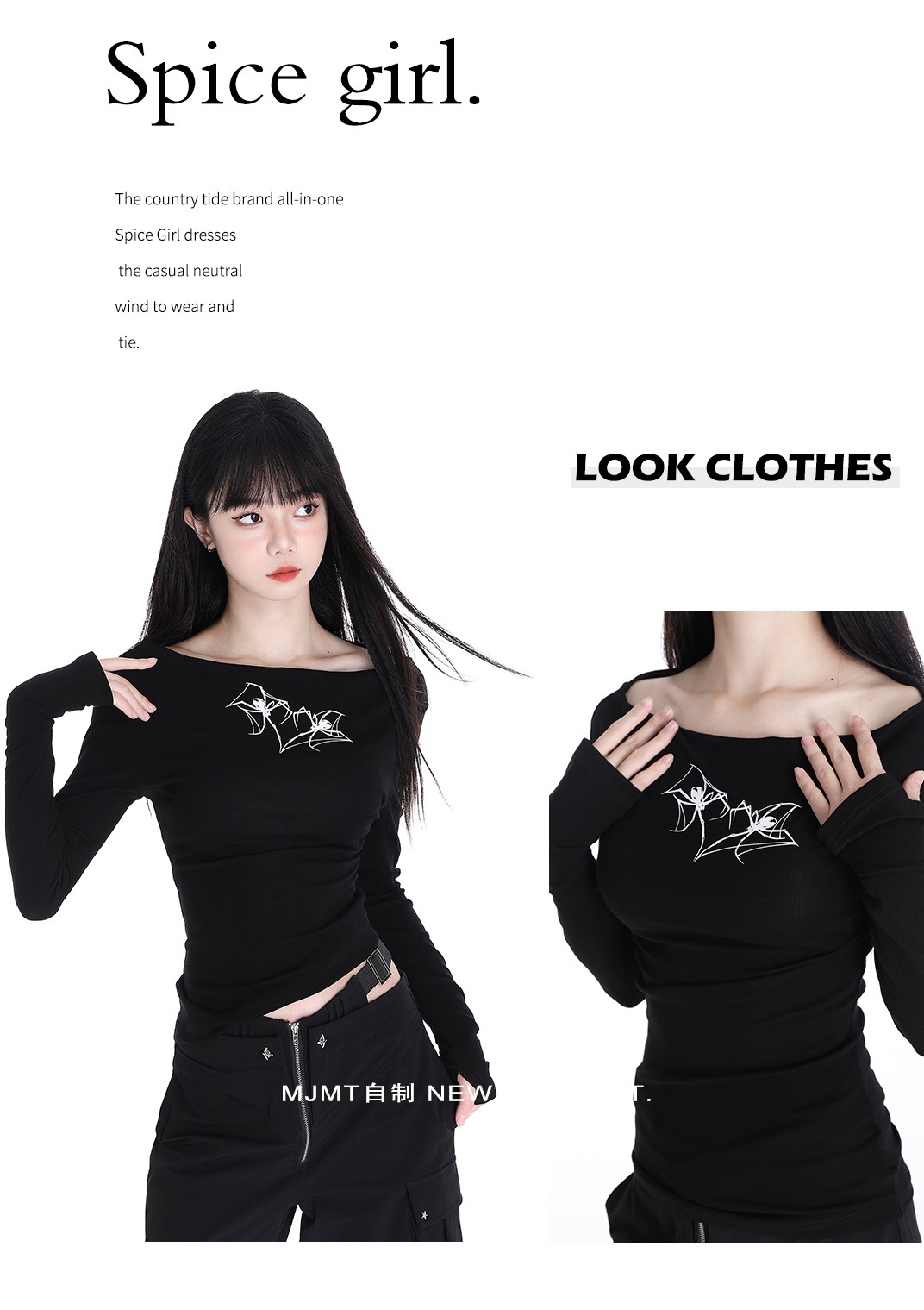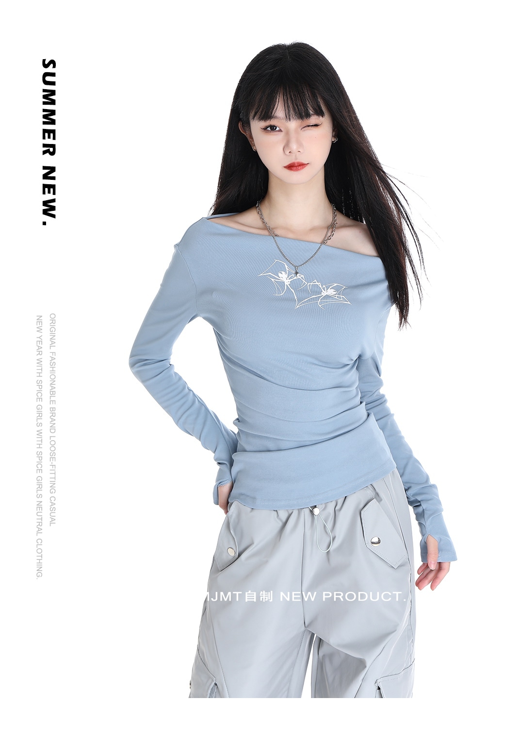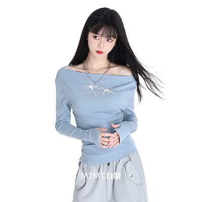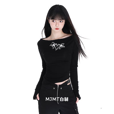 标题:2025春夏 長袖 Tシャツ ショート丈プリントカットソーラウンドネックK-POPトップスカジュアル配色韓国系ストリートへそ出しタイトスリーブ 肌見せ T ファッションレディースかわいいサイド衣装風
