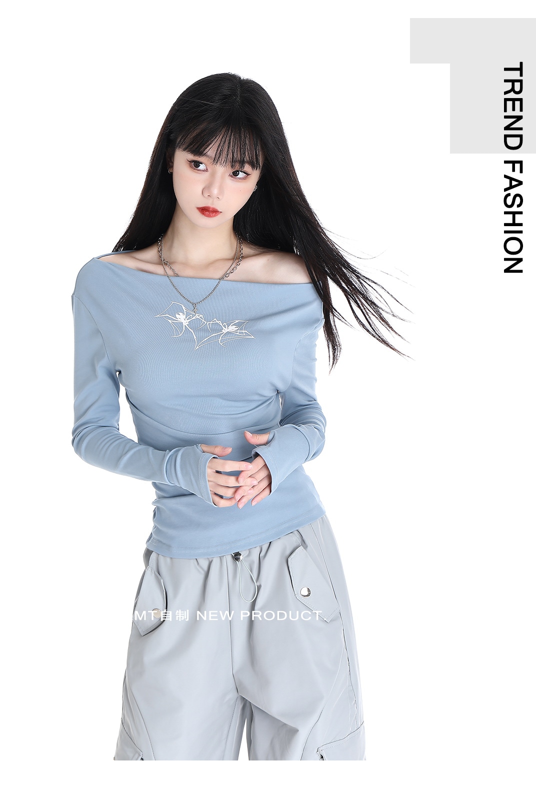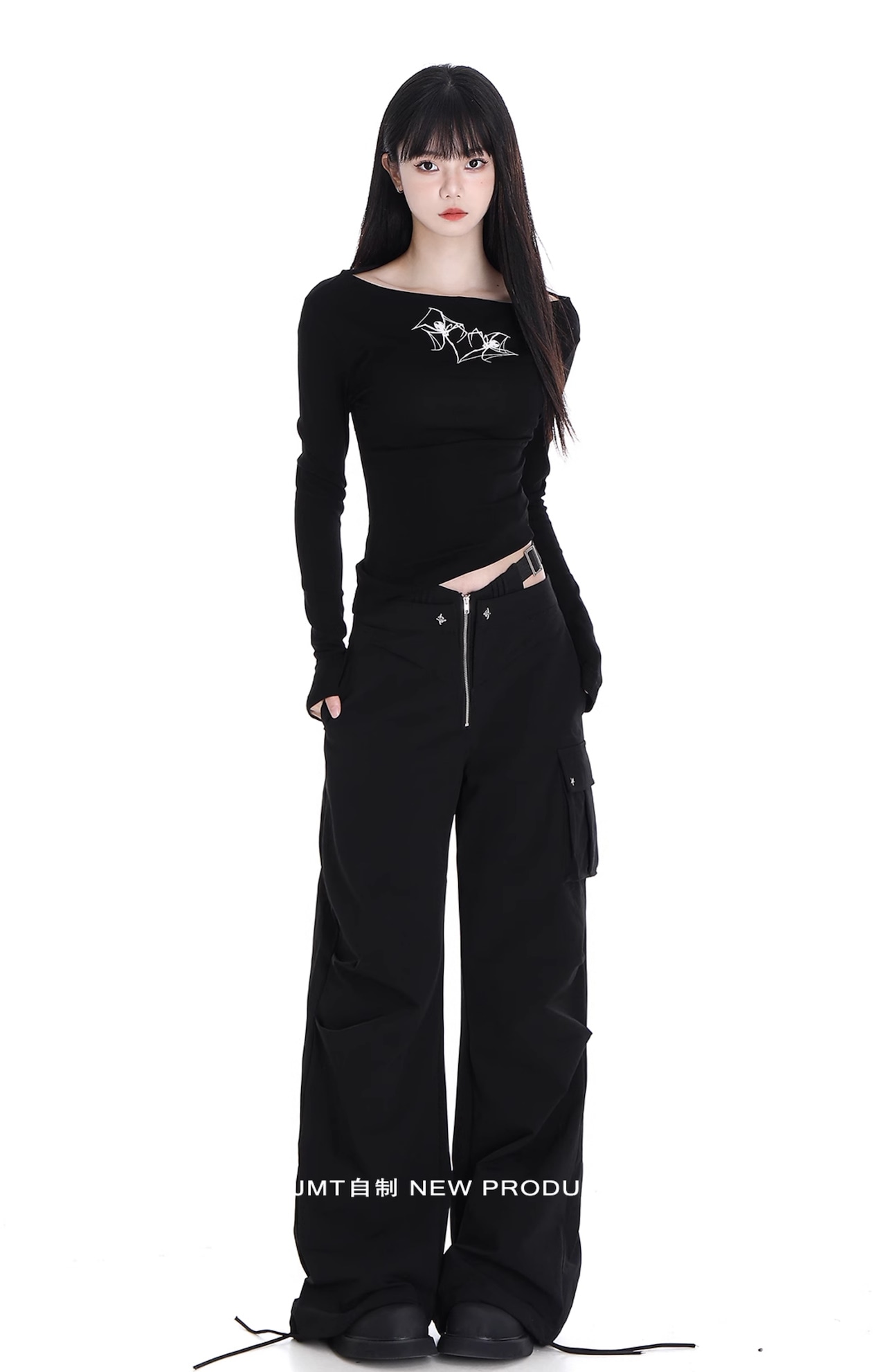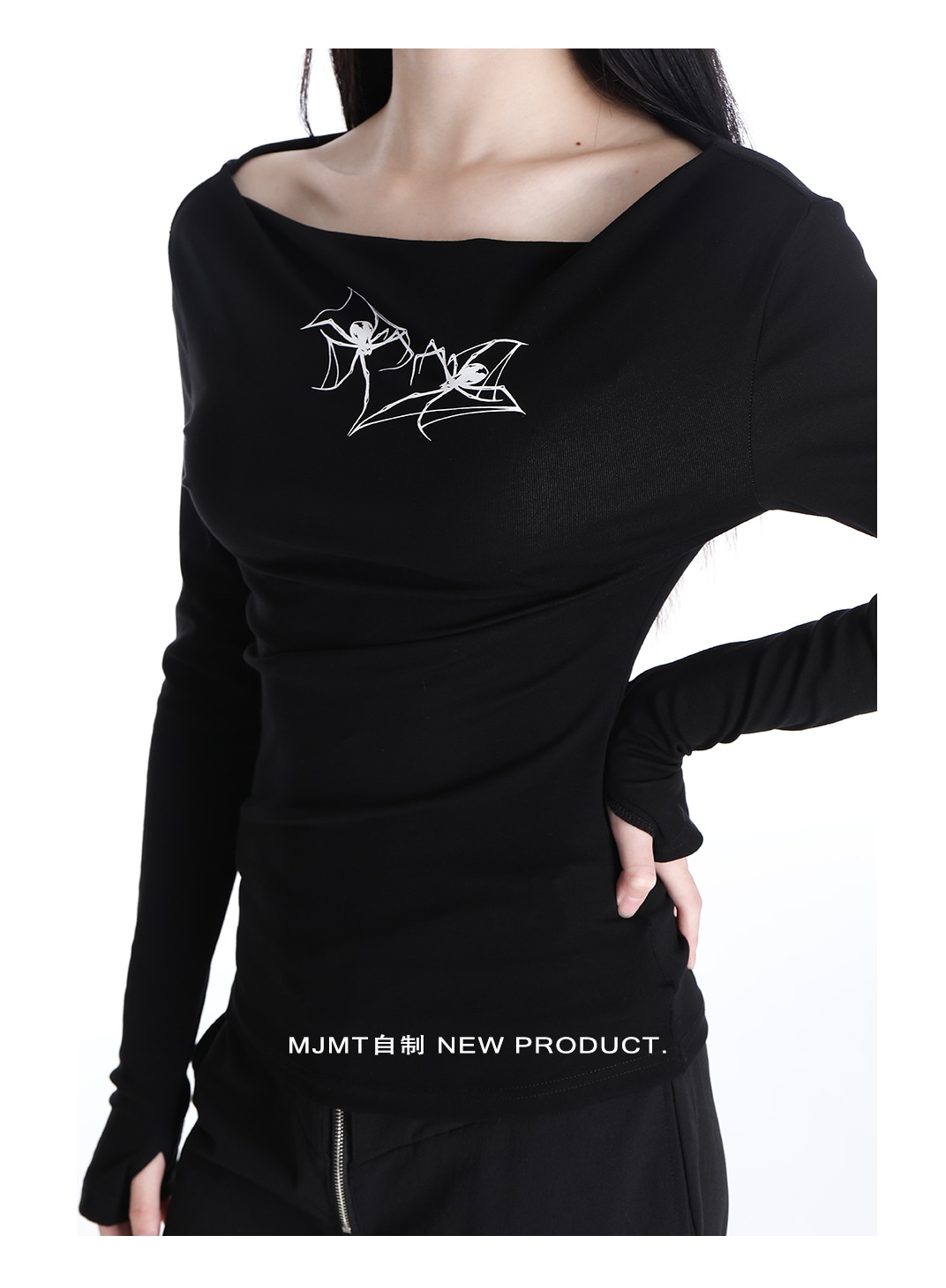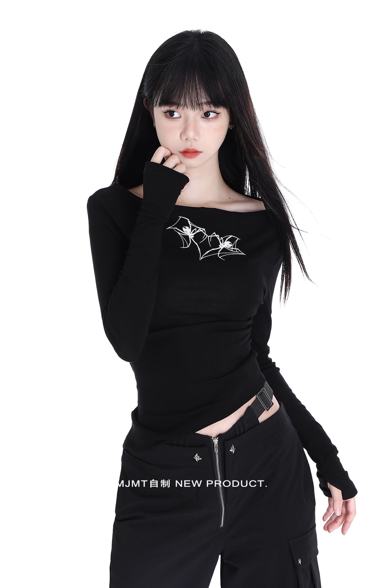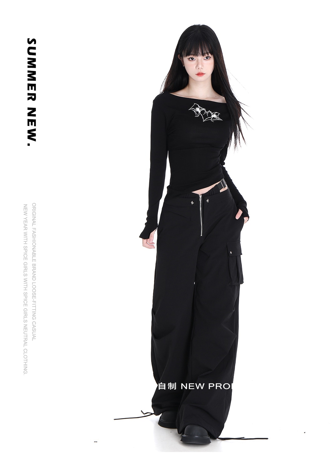 标题:2025春夏 長袖 Tシャツ ショート丈プリントカットソーラウンドネックK-POPトップスカジュアル配色韓国系ストリートへそ出しタイトスリーブ 肌見せ T ファッションレディースかわいいサイド衣装風