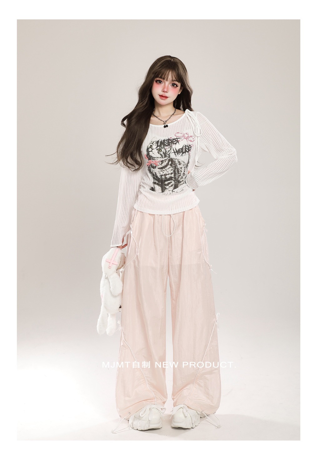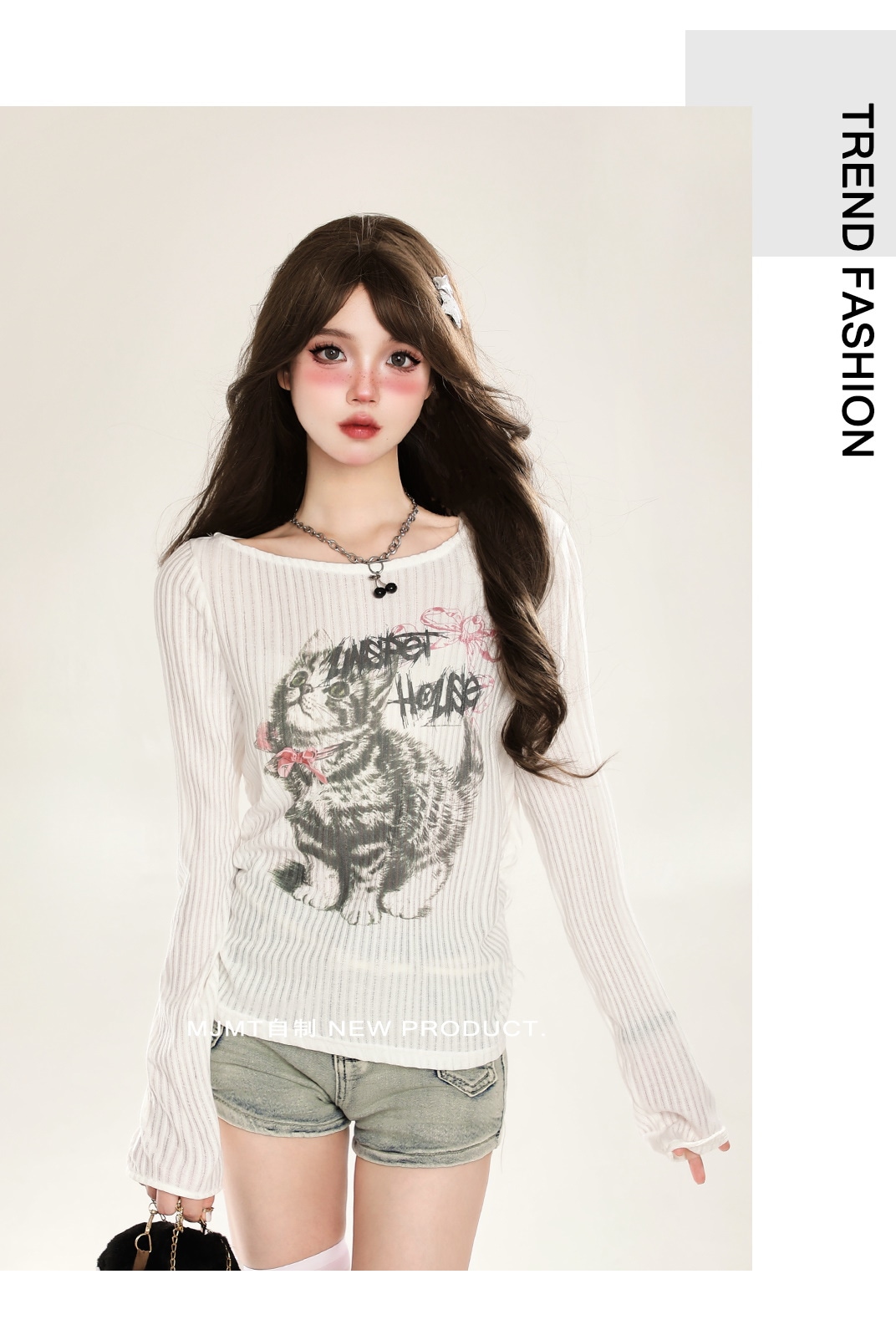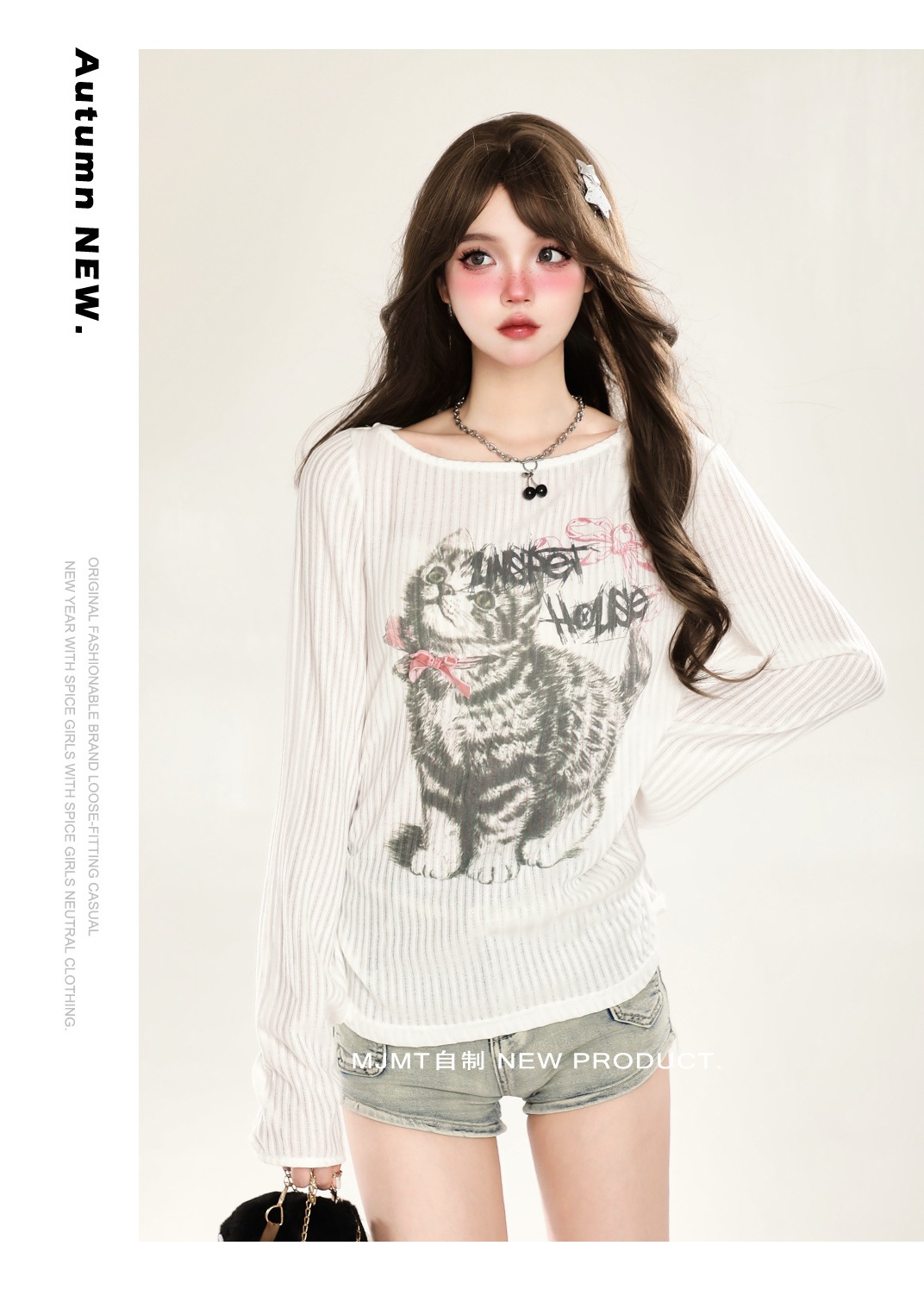 标题:2025春夏 長袖 Tシャツ ショート丈 カットソーレイヤード風重ね着トレンドプリントラウンドネックK-POPトップスカジュアル韓国系ストリートへそ出しタイト肌見せTファッションレディースかわいいミニ