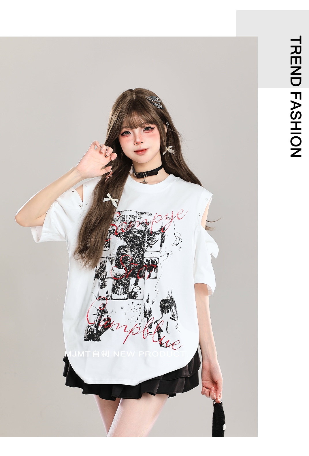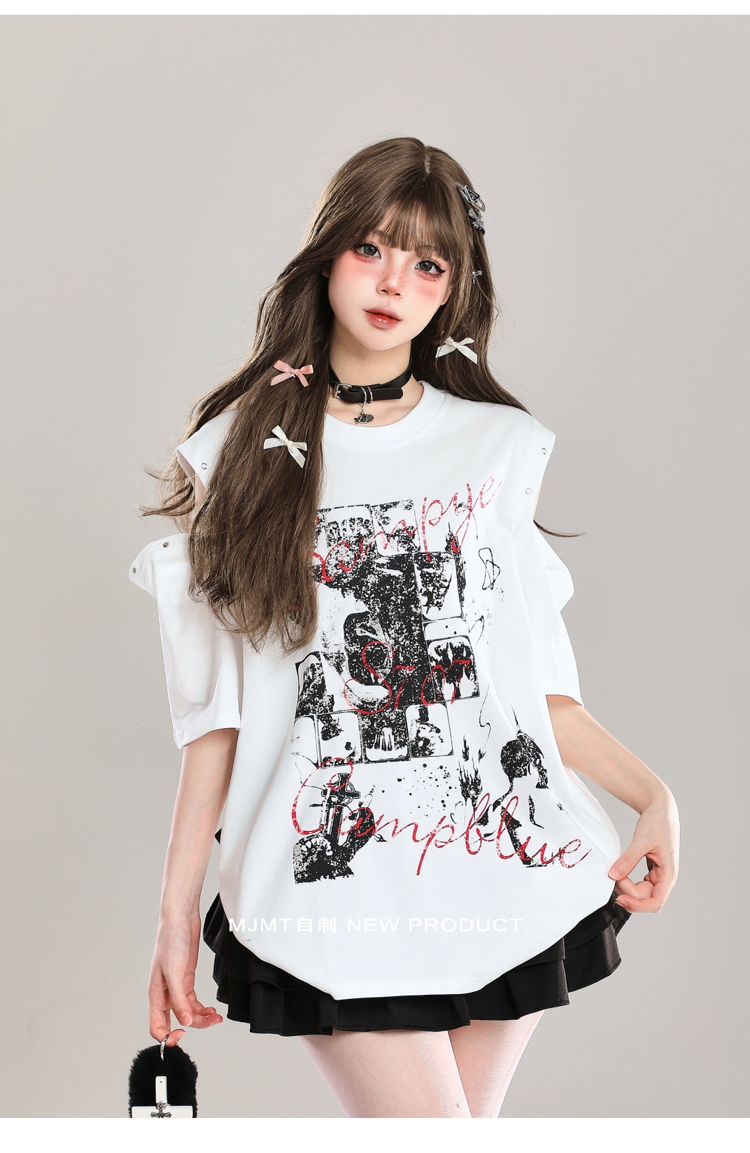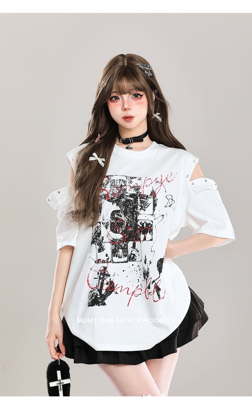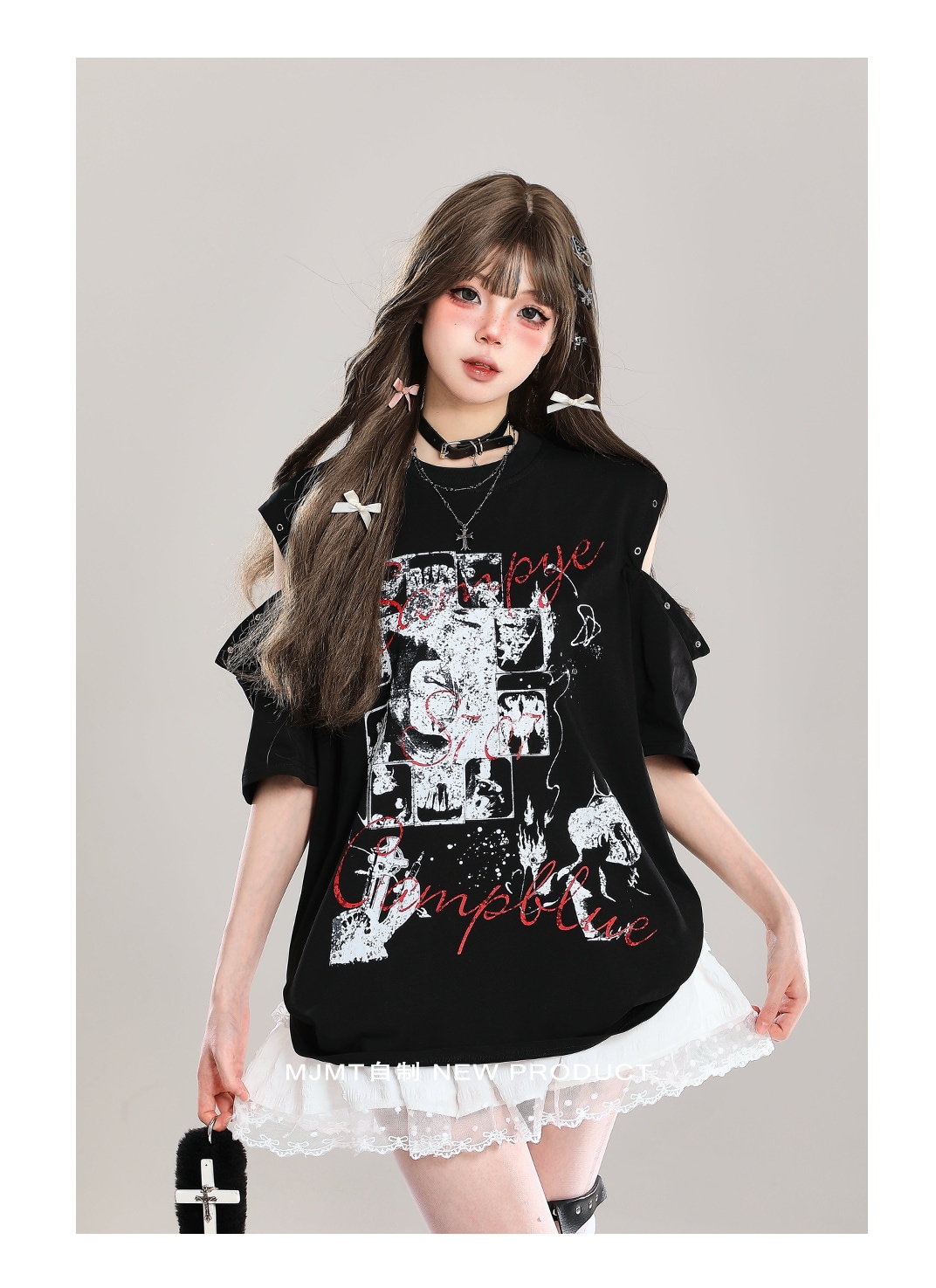 标题:2025夏秋 Tシャツ ショート丈カットソーラウンドネックK-POPトップスシルエット配色韓国系サイズトレンドストリートタイトVネックスリーブ肌見せ T ファッションレディースかわいいサイド衣装風