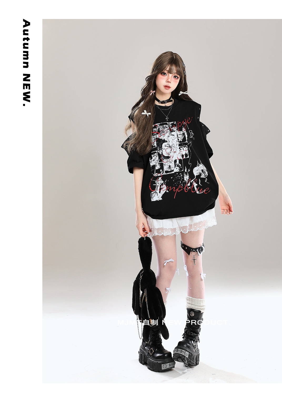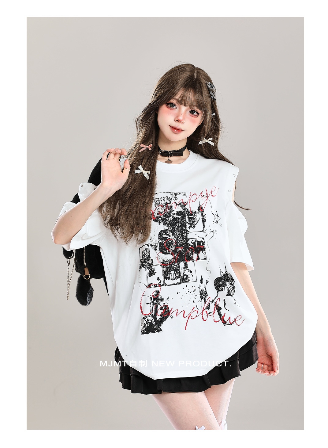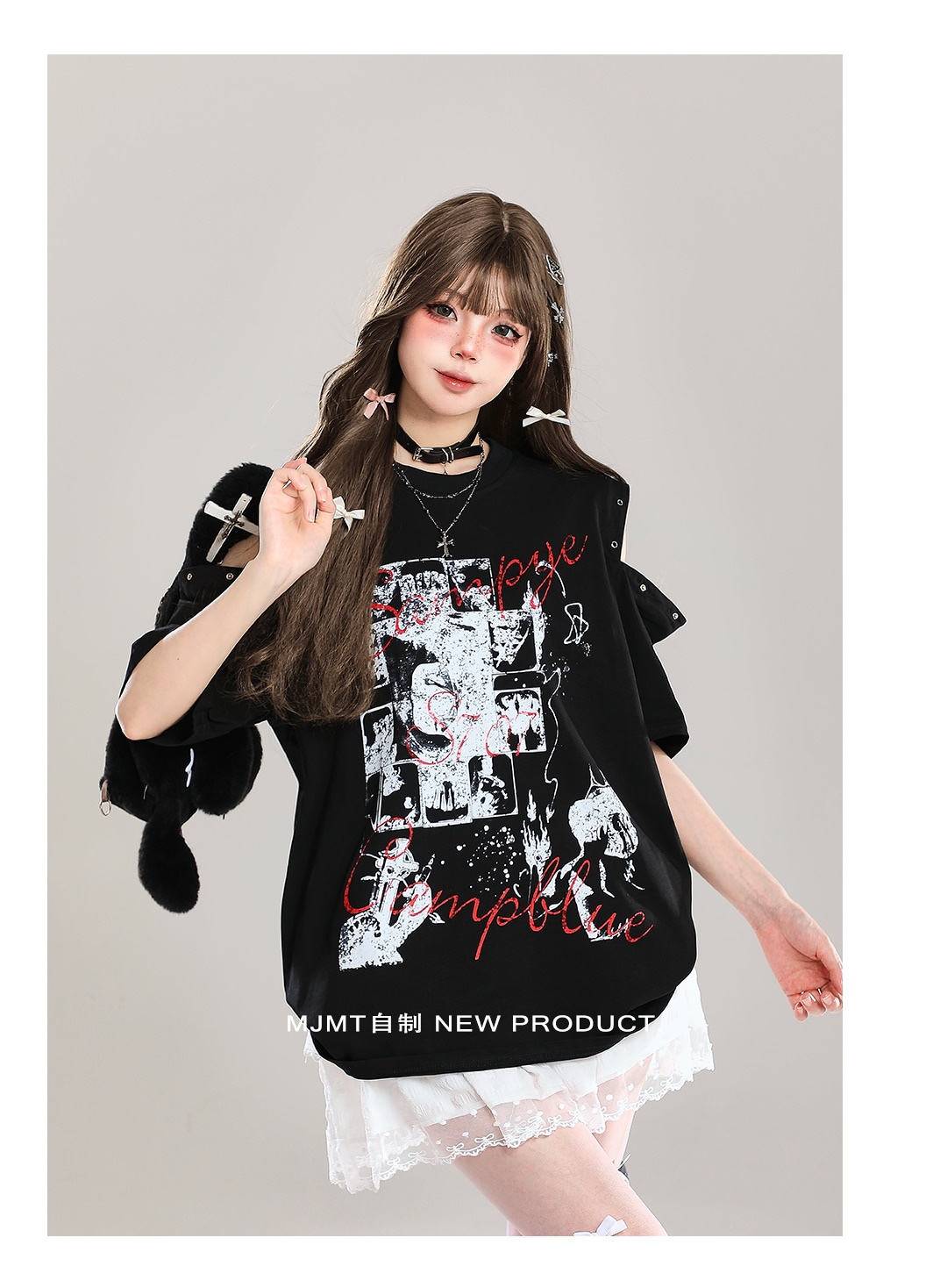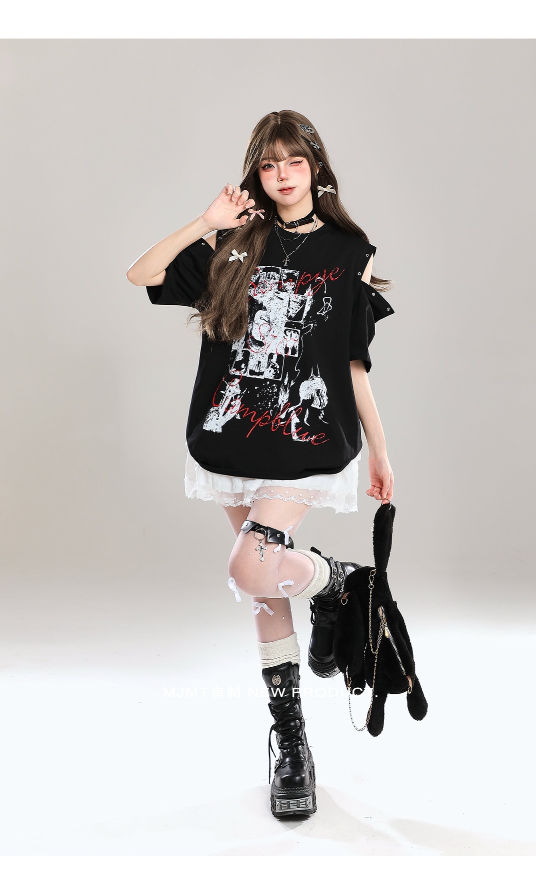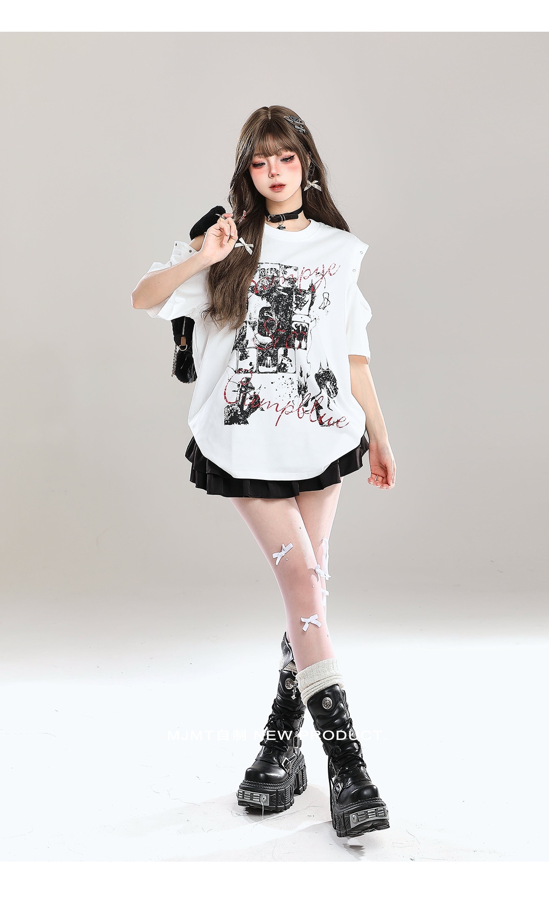 标题:2025夏秋 Tシャツ ショート丈カットソーラウンドネックK-POPトップスシルエット配色韓国系サイズトレンドストリートタイトVネックスリーブ肌見せ T ファッションレディースかわいいサイド衣装風
