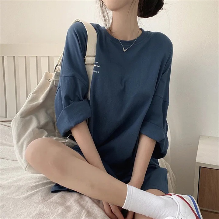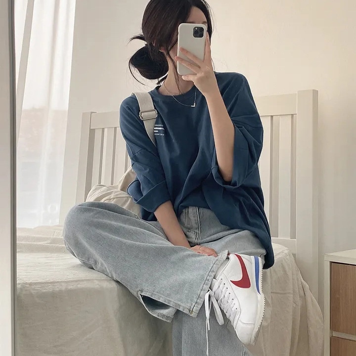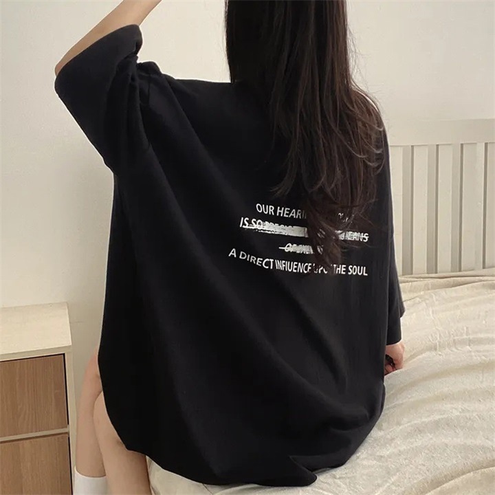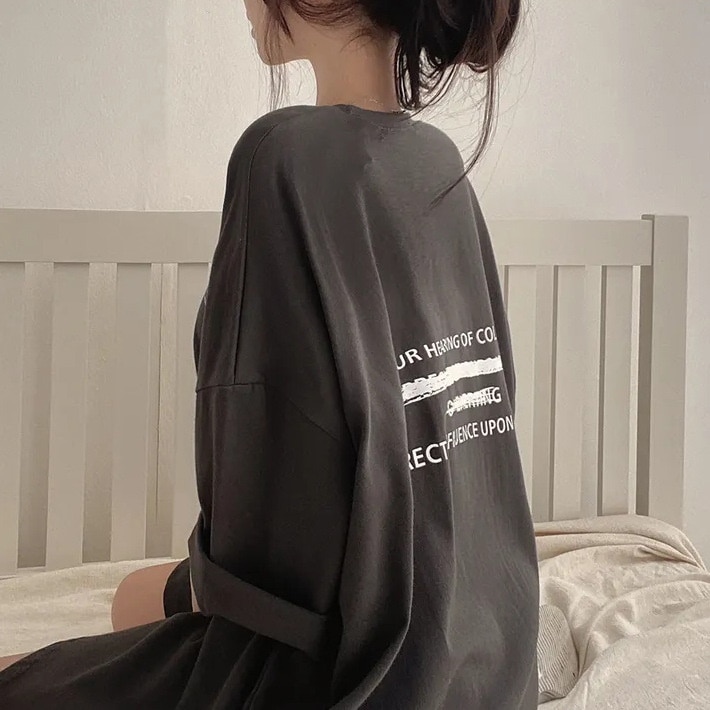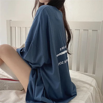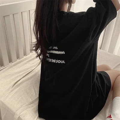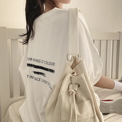 标题:2025 春夏Tシャツ ワンポイント レタープリント 半袖 ドロップショルダー クルーネック シンプル ルーズ レトロ